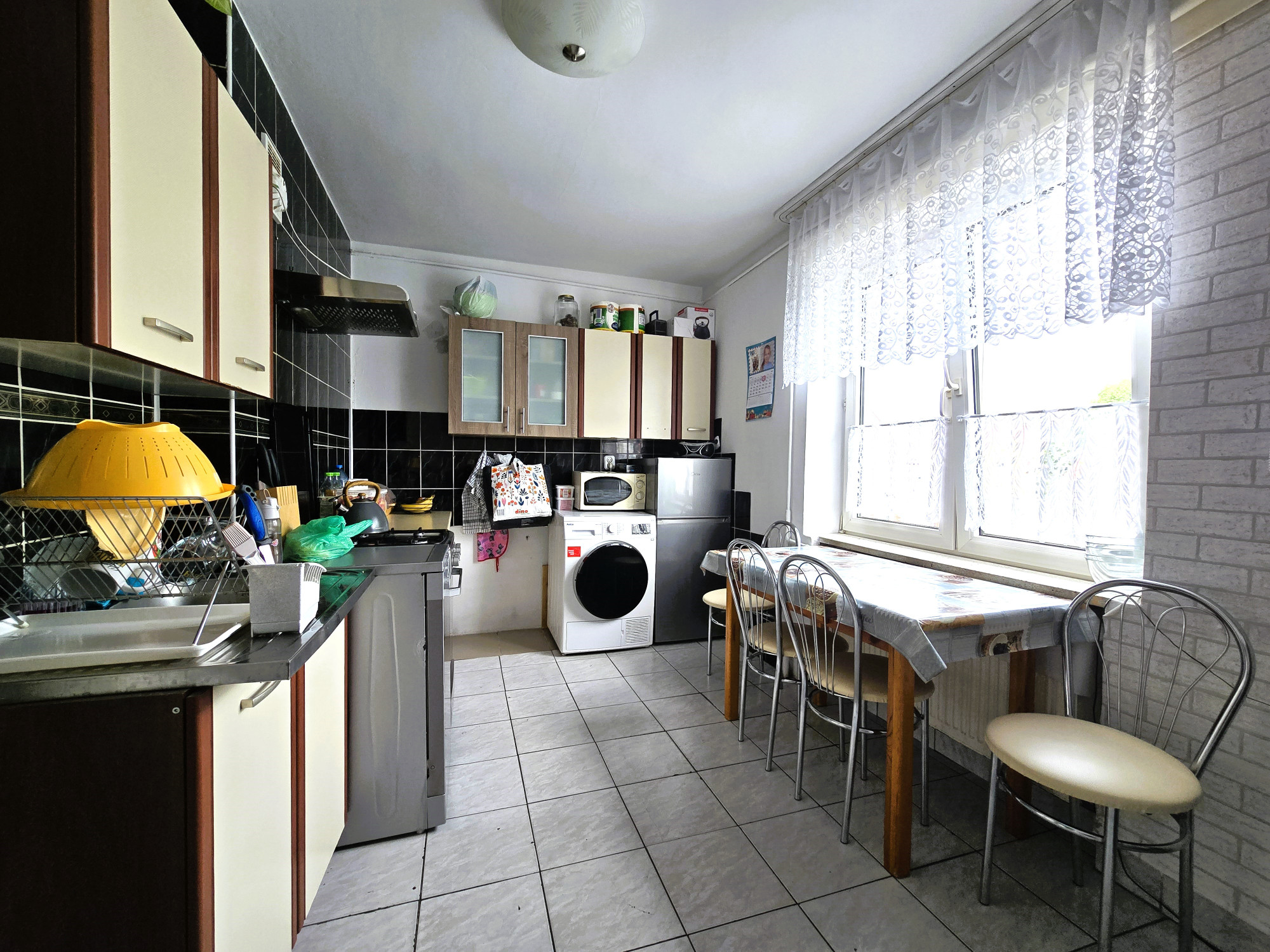Mieszkanie na piętrze jest jasne, ustawne i posiada niezależne wejście, co daje możliwość całkowitego oddzielenia części prywatnej od komercyjnej. Takie rozwiązanie sprawdzi się zarówno dla rodziny prowadzącej firmę, jak i dla inwestora planującego wynajem lokalu i mieszkania osobno.