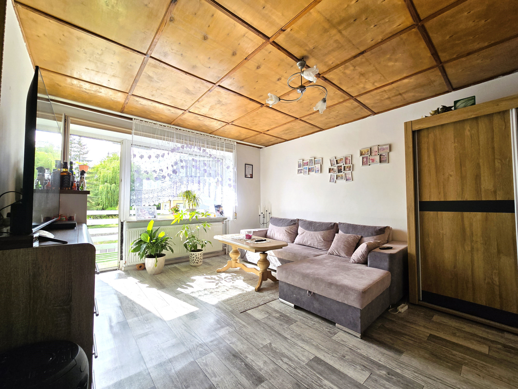 – salon z wyjściem na balkon,