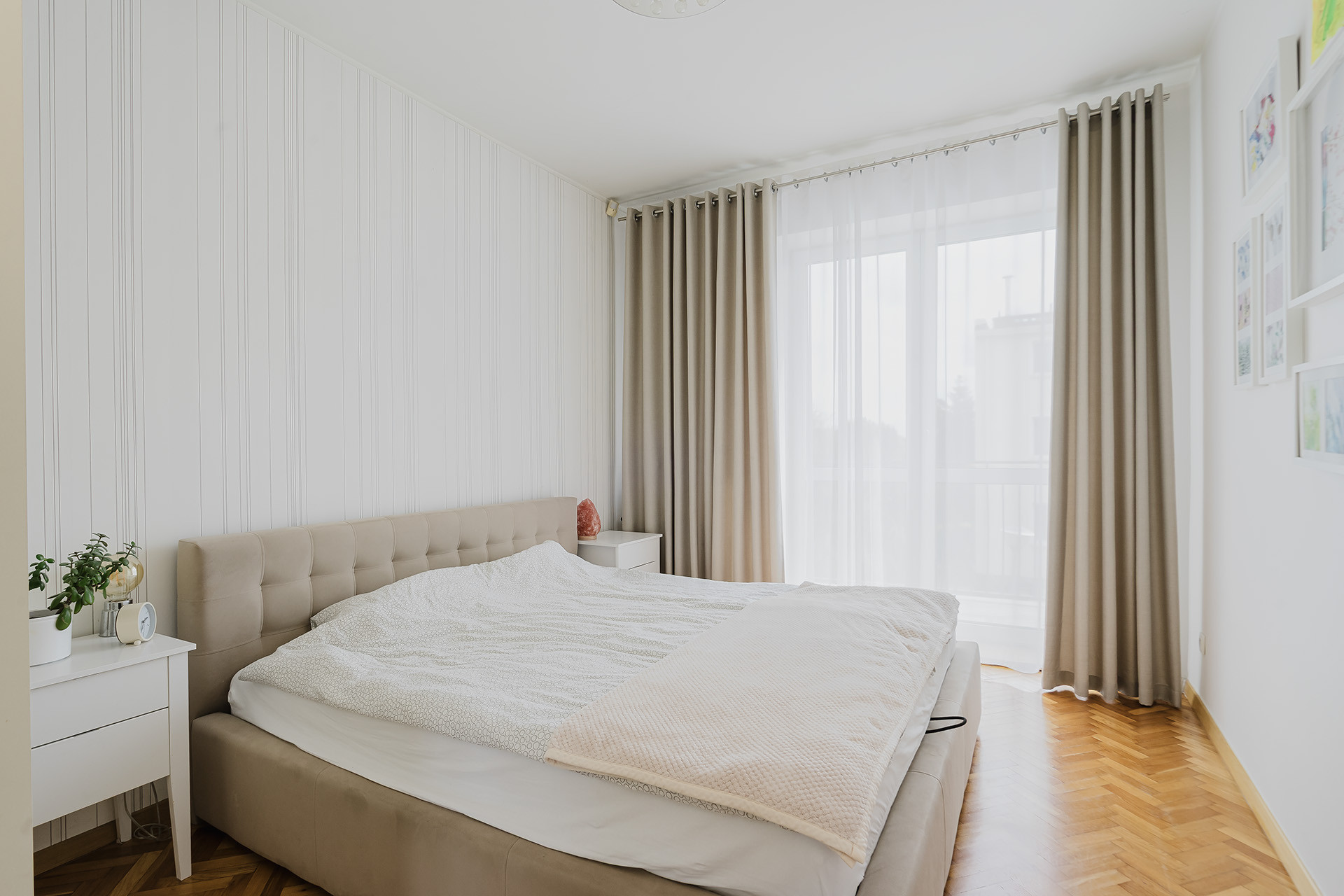 3 komfortowe sypialnie (13,5 m², 12 m², 11 m²), jedna z wyjściem na balkon