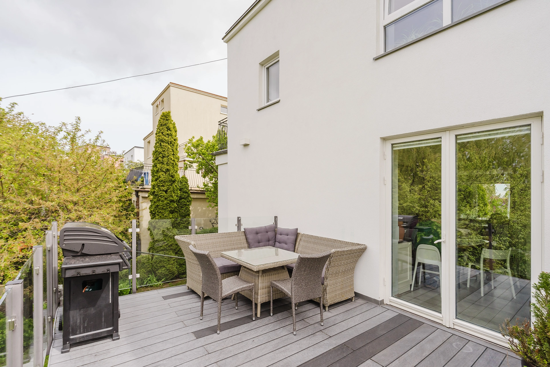 Dom został w 2023 roku poddany kompleksowemu remontowi zewnętrznemu, obejmującemu m.in. ocieplenie budynku, wymianę dachu, okien i rynien, a także montaż nowoczesnych rolet screen na elewacji południowej – skutecznie chroniących wnętrze przed nadmiernym nagrzewaniem latem.