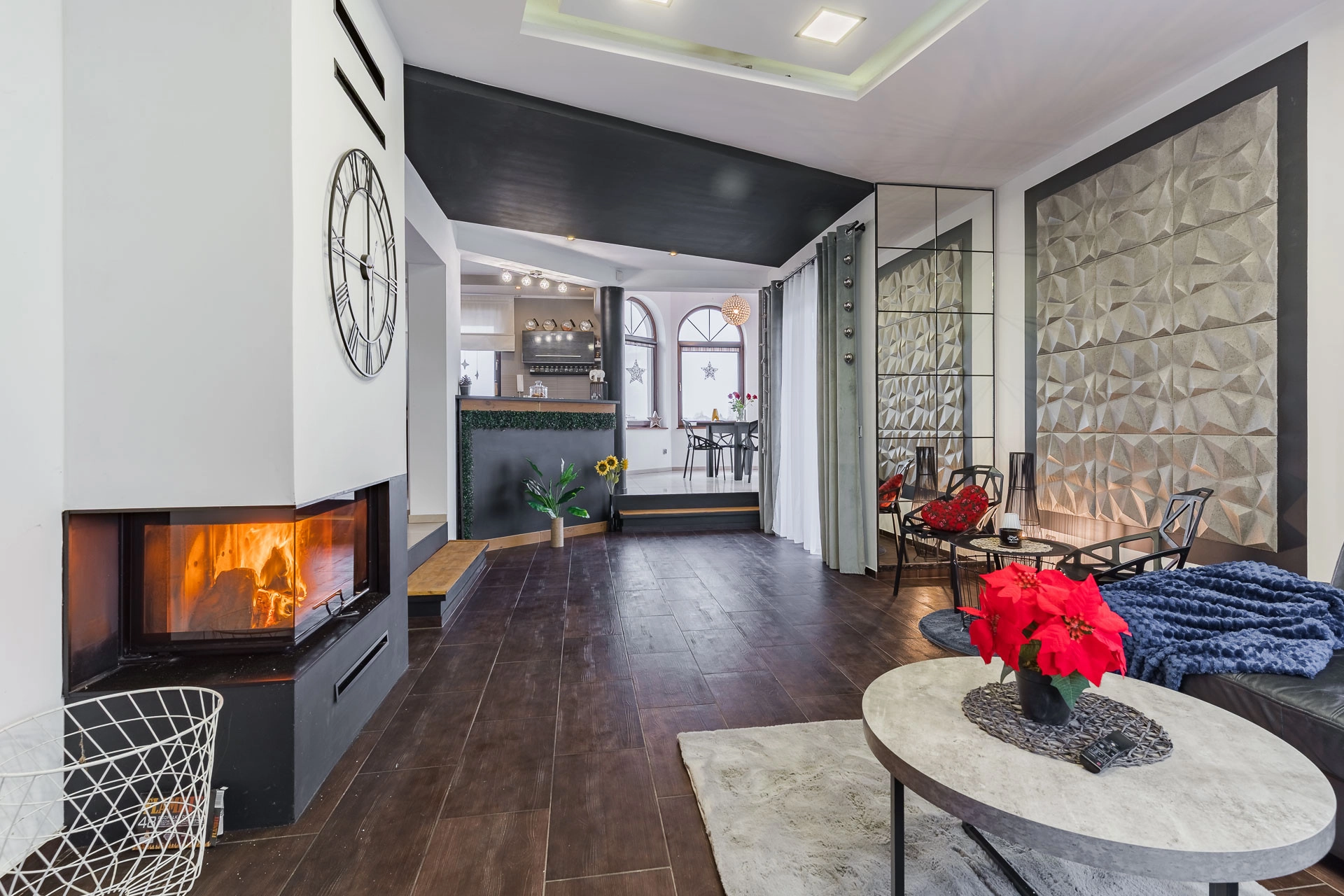-Ogrzewanie 4-letnim piecem na pellet TEKLA z podajnikiem i bojlerem elektrycznym do wody + kominek z płaszczem wodnym