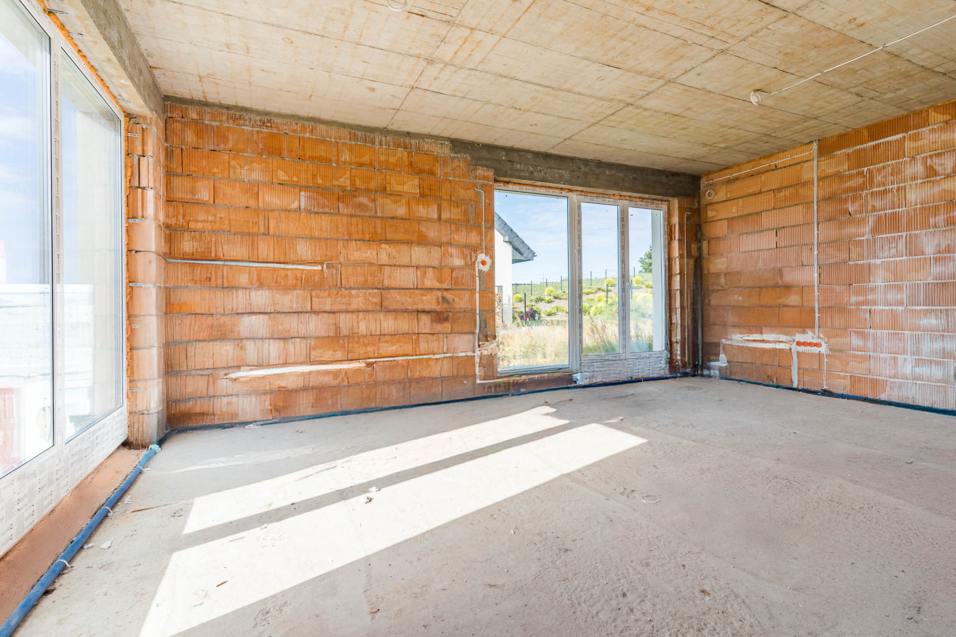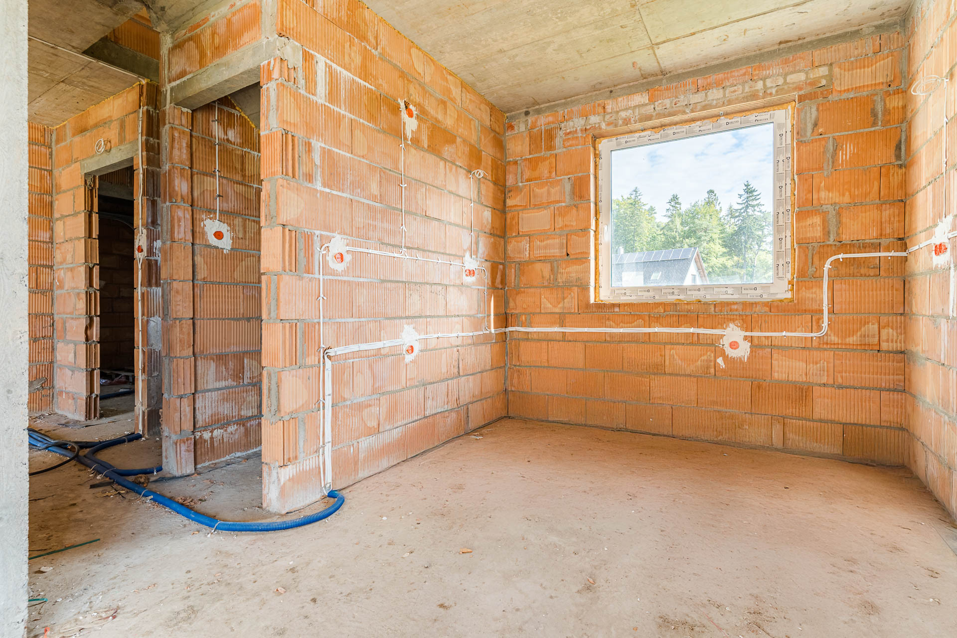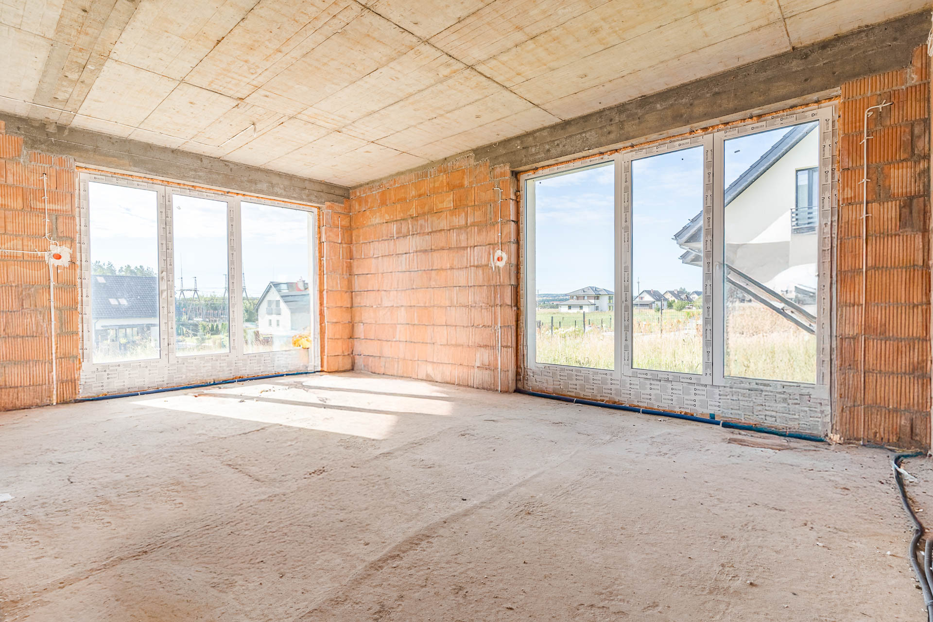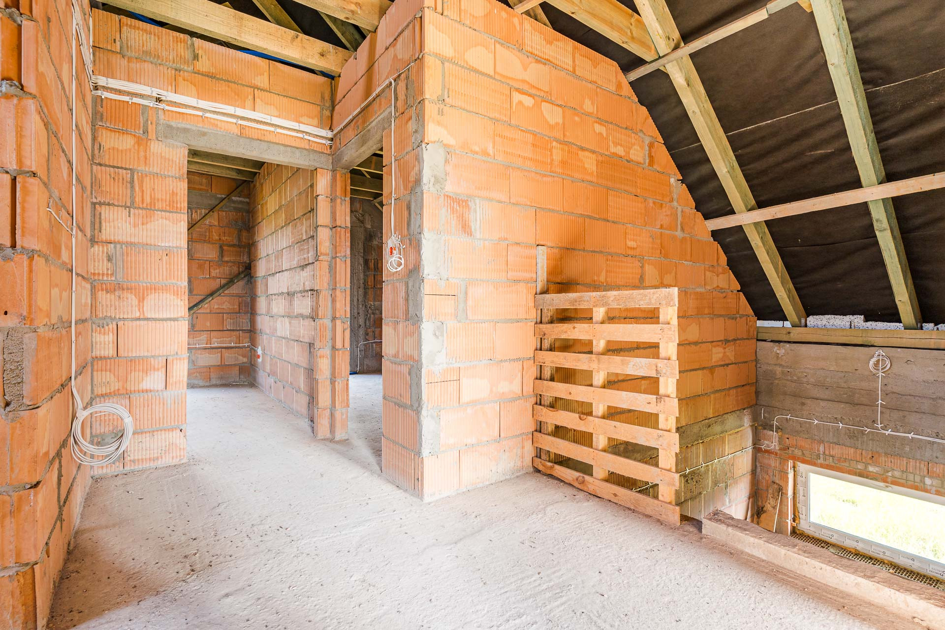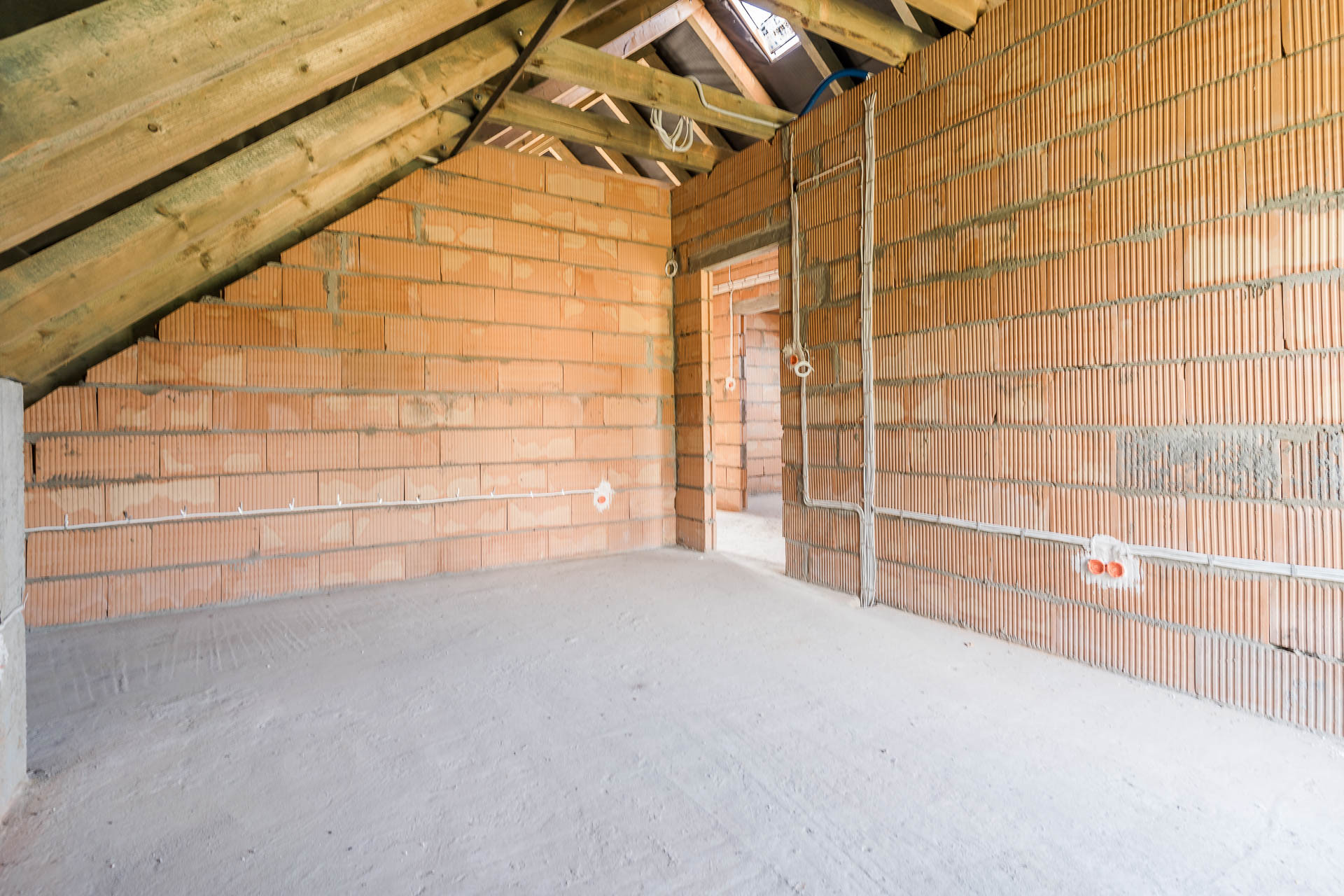* okna: pionowe PCV, połaciowe w łazience dedykowane do łazienek
