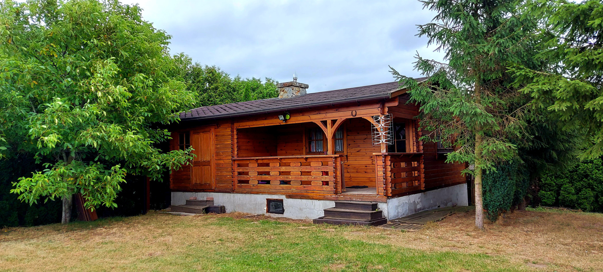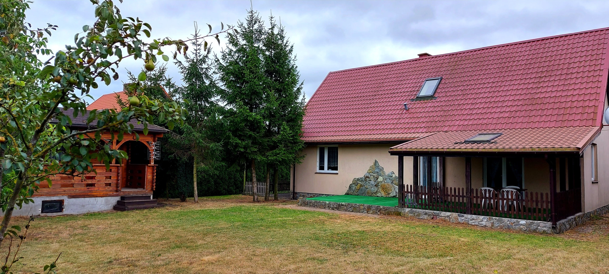 – dodatkowy drewniany domek w ogródku o pow 48m2