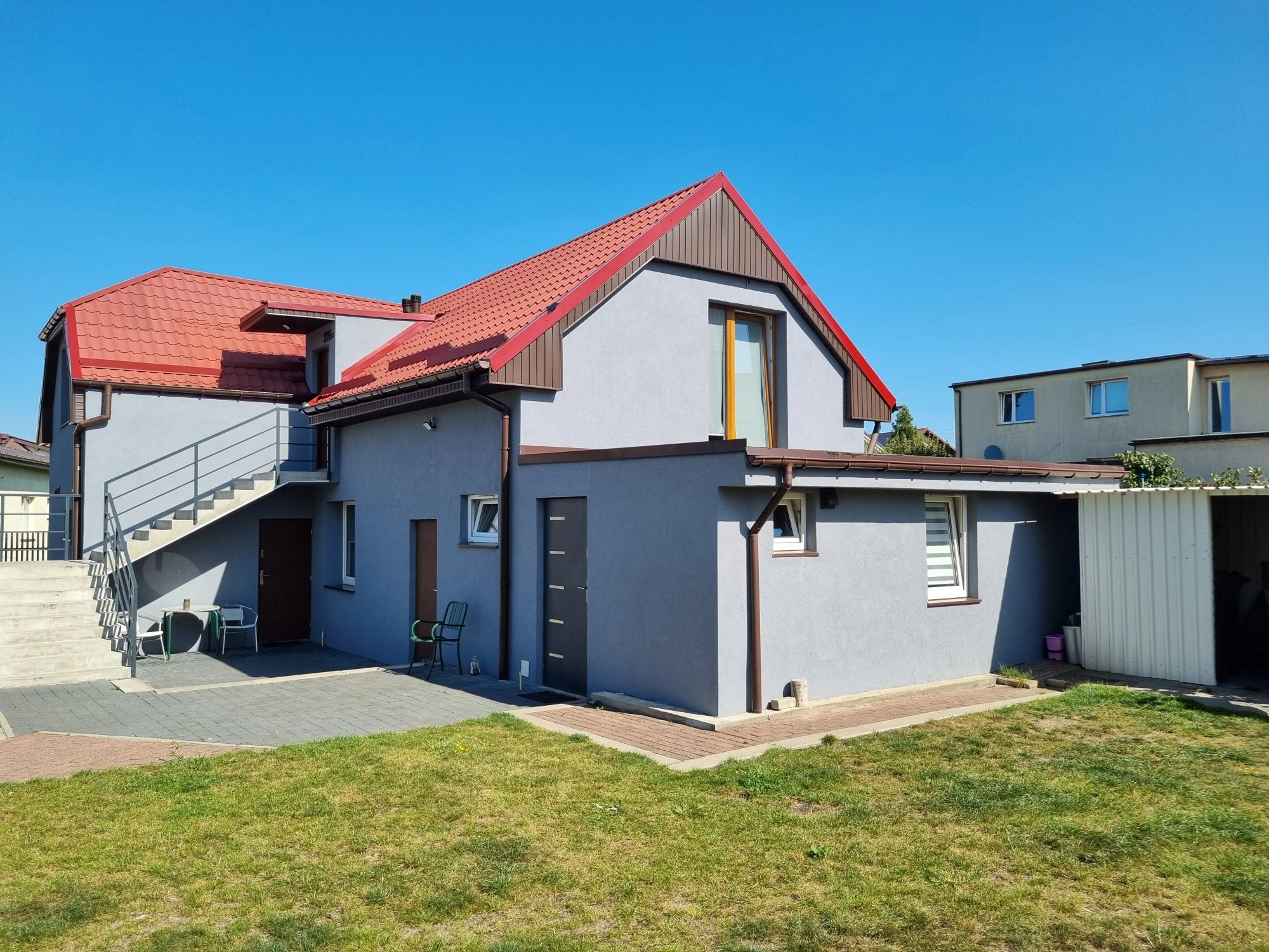 Jego powierzchnia całkowita to ok. 130 m2. Został wybudowany w 2000 roku z gazobetonu, a jego dach pokryto blachodachówką. Ogrzewany jest piecem na ekogroszek, ale bez problemu można zainstalować ogrzewanie gazowe. Składają się na niego 2 kondygnacje, w ramach których stworzono 3 mieszkania: