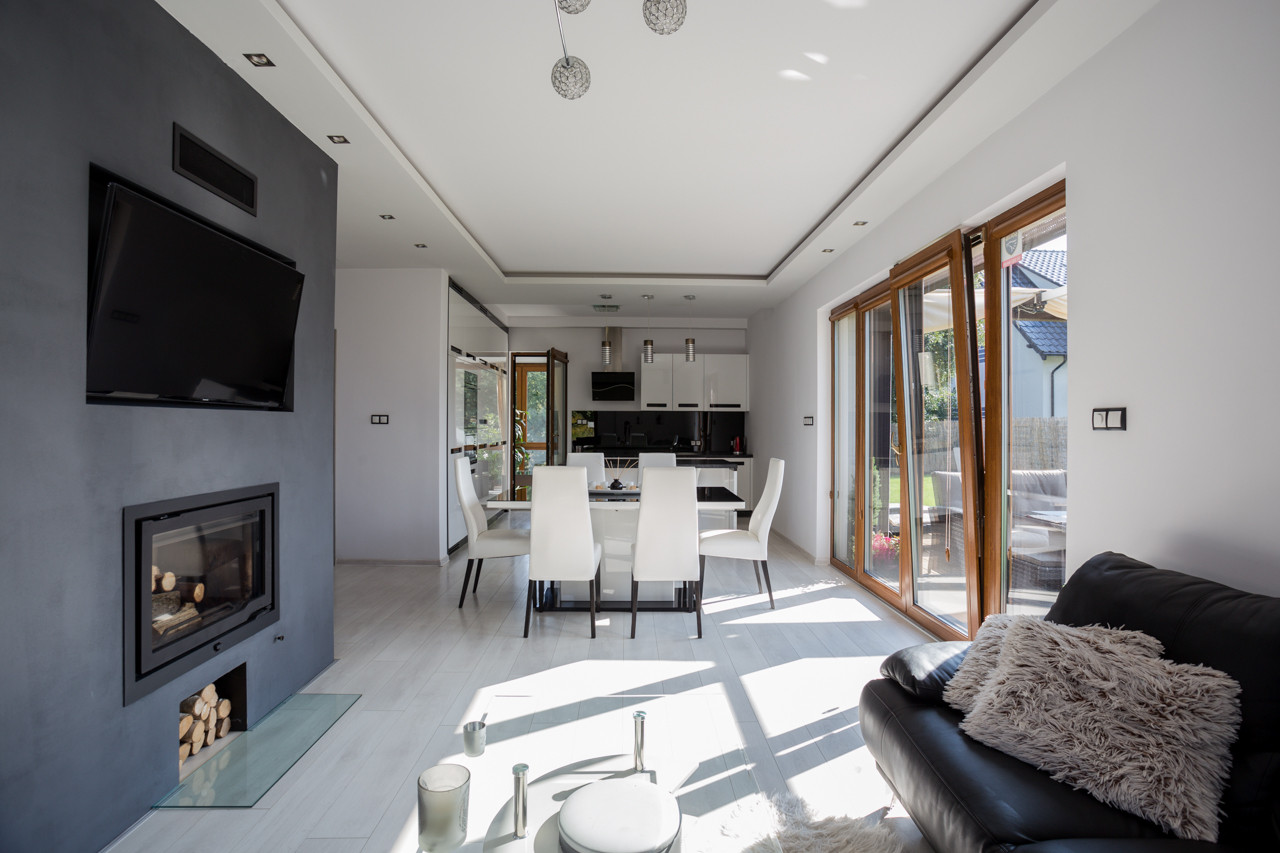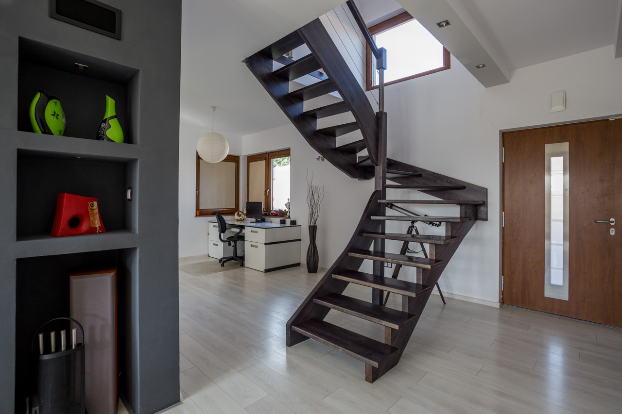 INSTALACJE: W całym budynku rozprowadzona została kablowa sieć komputerowa, antena satelitarna wraz z okablowaniem, sterownik w salonie do obsługi ogrzewania i CWU. Do budynku doprowadzony został światłowód. Dom posiada również system inteligentnego oświetlenia zewnętrznego (sterowane czasowo z 2 timerów) oraz pełne oświetlenie wewnętrzne typu LED z możliwością regulacji natężenia i koloru sterowane na pilota.