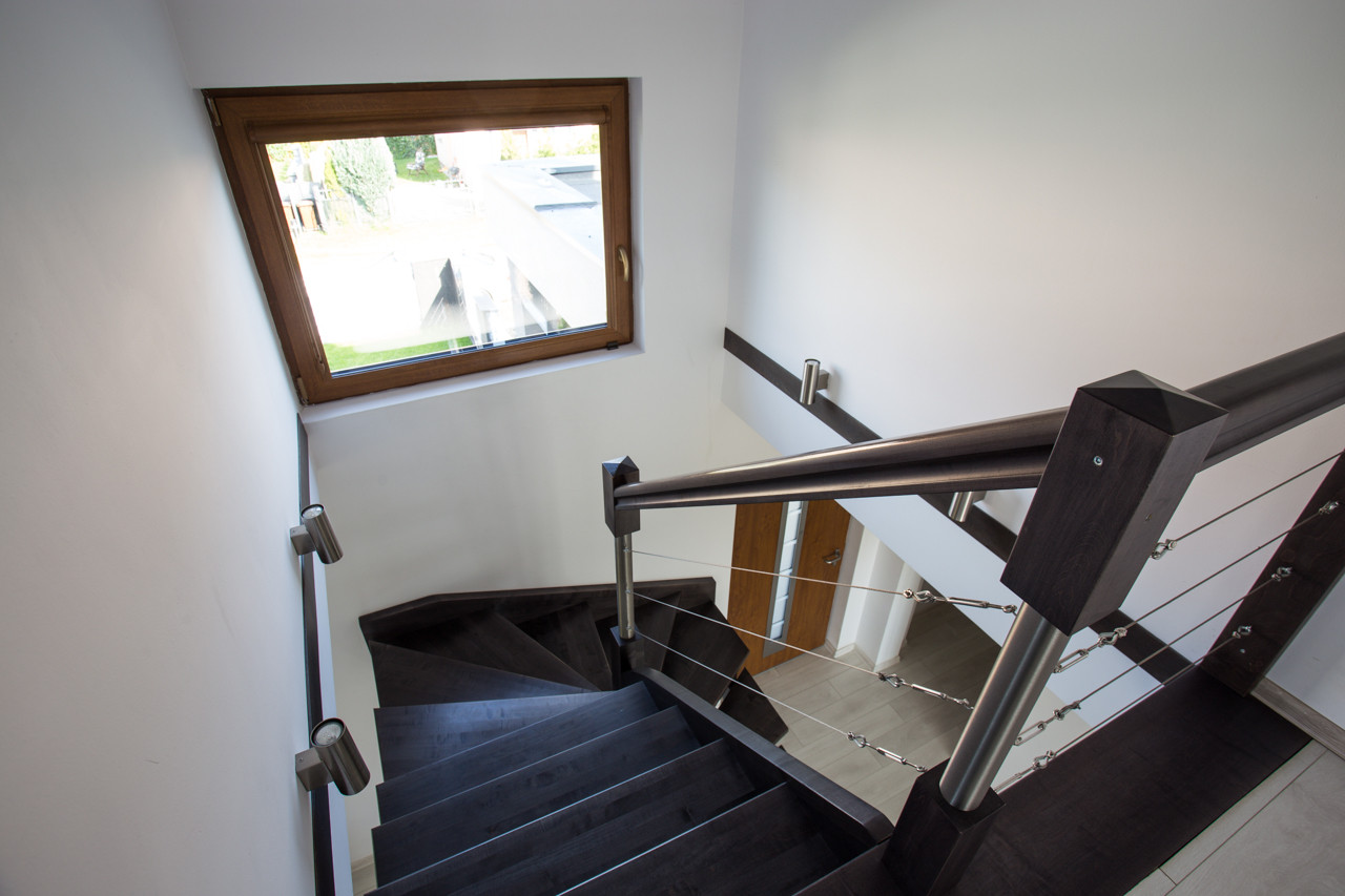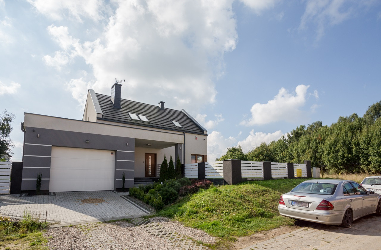 BEZPIECZEŃSTWO: Zastosowano system CCTV – system 7 kamer wokół budynku i dodatkowo w garażu. Dedykowany rejestrator z zapisem do 1 miesiąca, dający możliwość podglądu przez komputer lub telefon. Cały dom zabezpieczony jest systemem alarmowym (odrębne obwody dla parteru i piętra) pozwalającym na otwieranie bramy garażowej za pomocą telefonu.