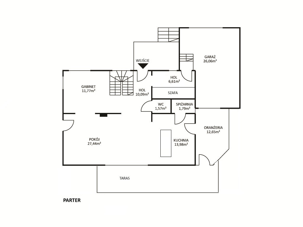 – oranżeria – ogród zimowy z wyjściem na taras (12,65 m2),