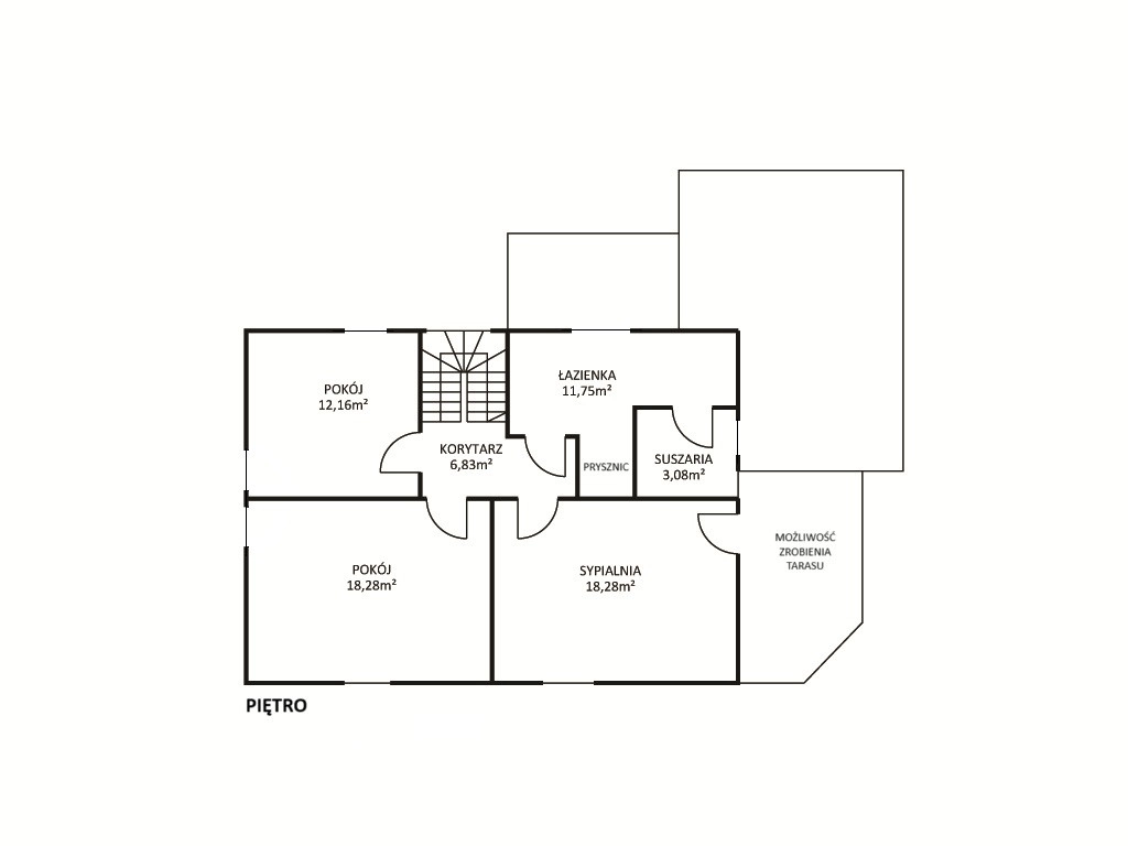 – suszarnia, która może spełniać funkcję łazienki po przyłączeniu jej do sypialni (3,08 m2),