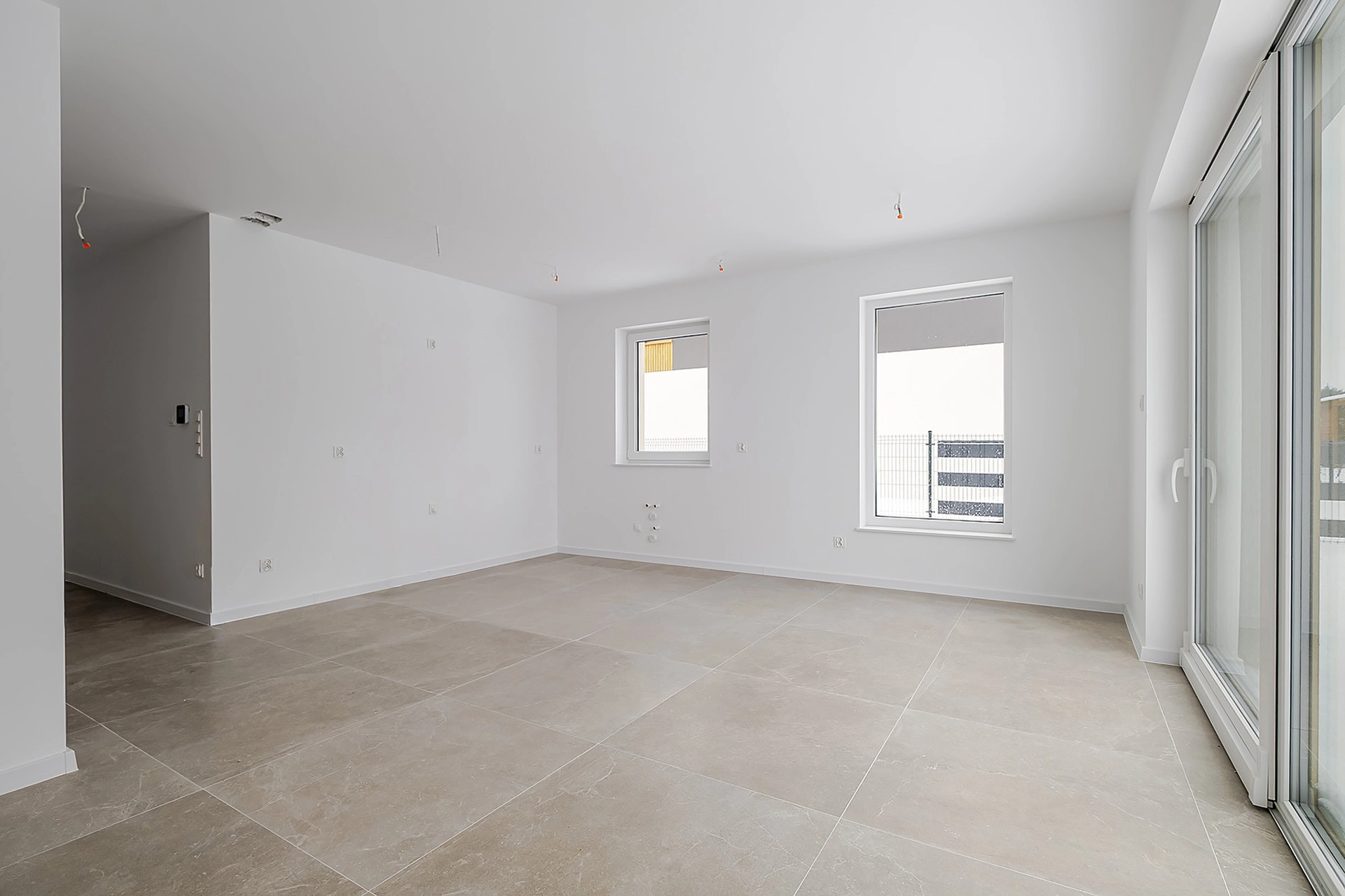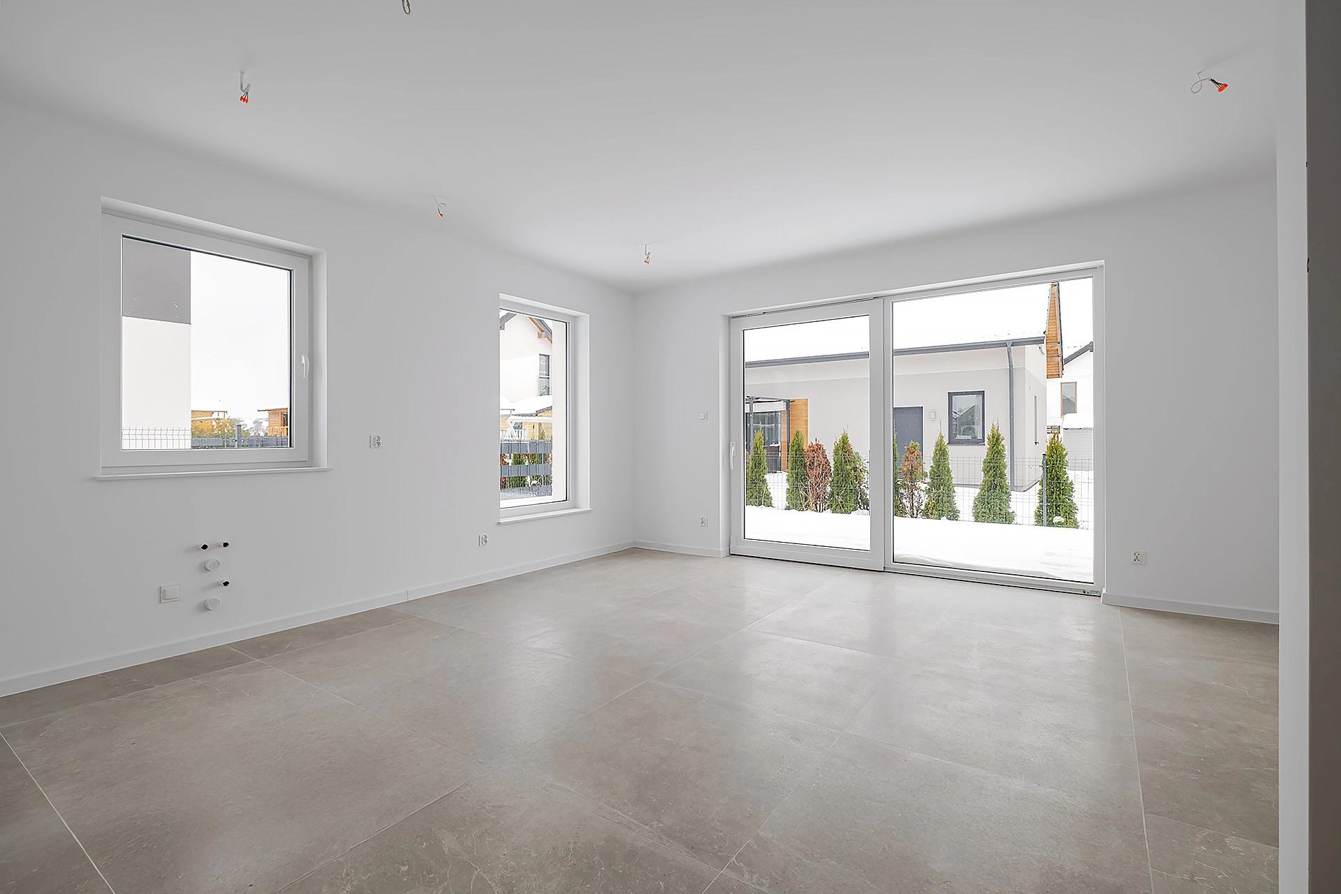 – salon z aneksem kuchennym i wyjściem do ogrodu 23,24 m2