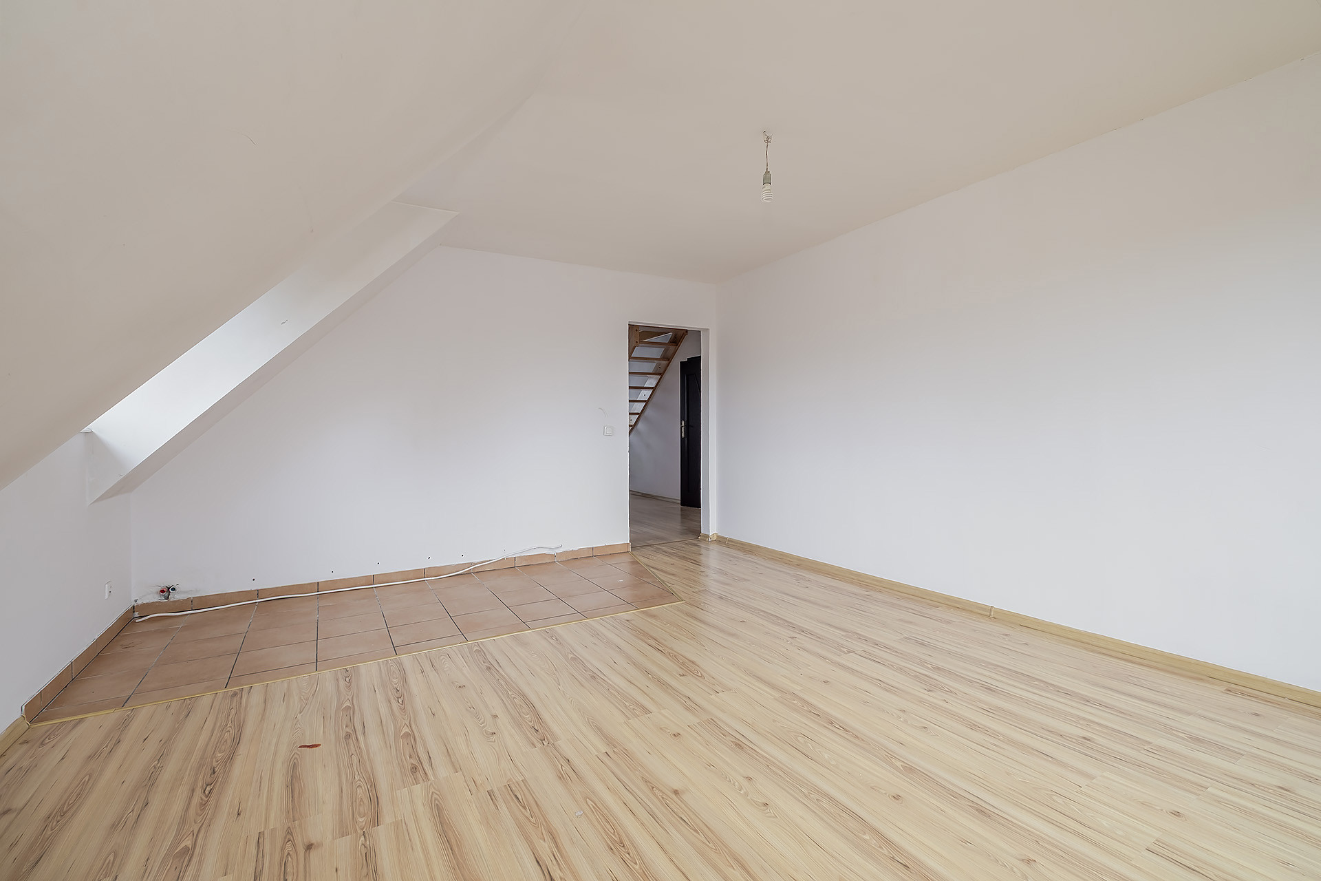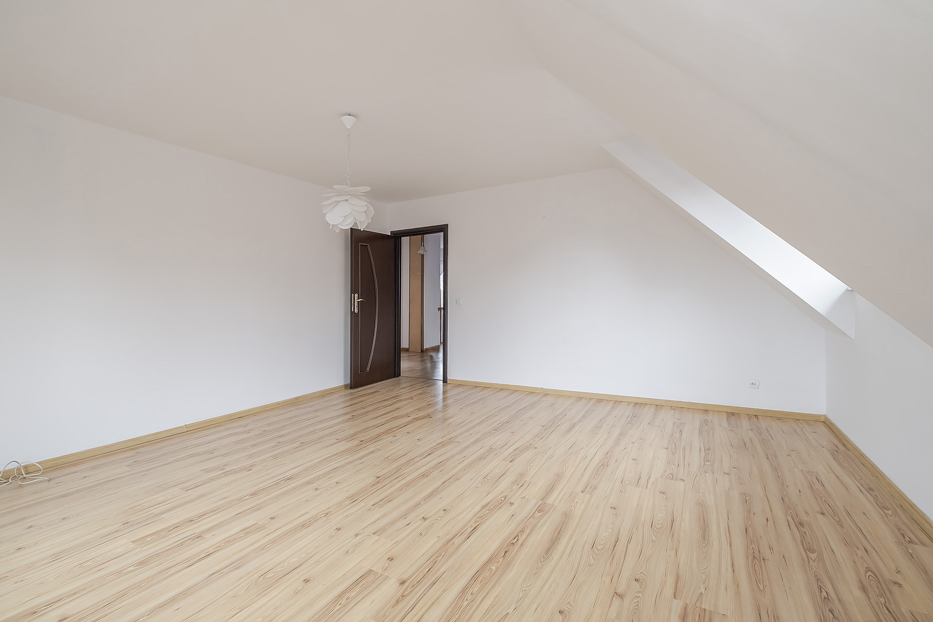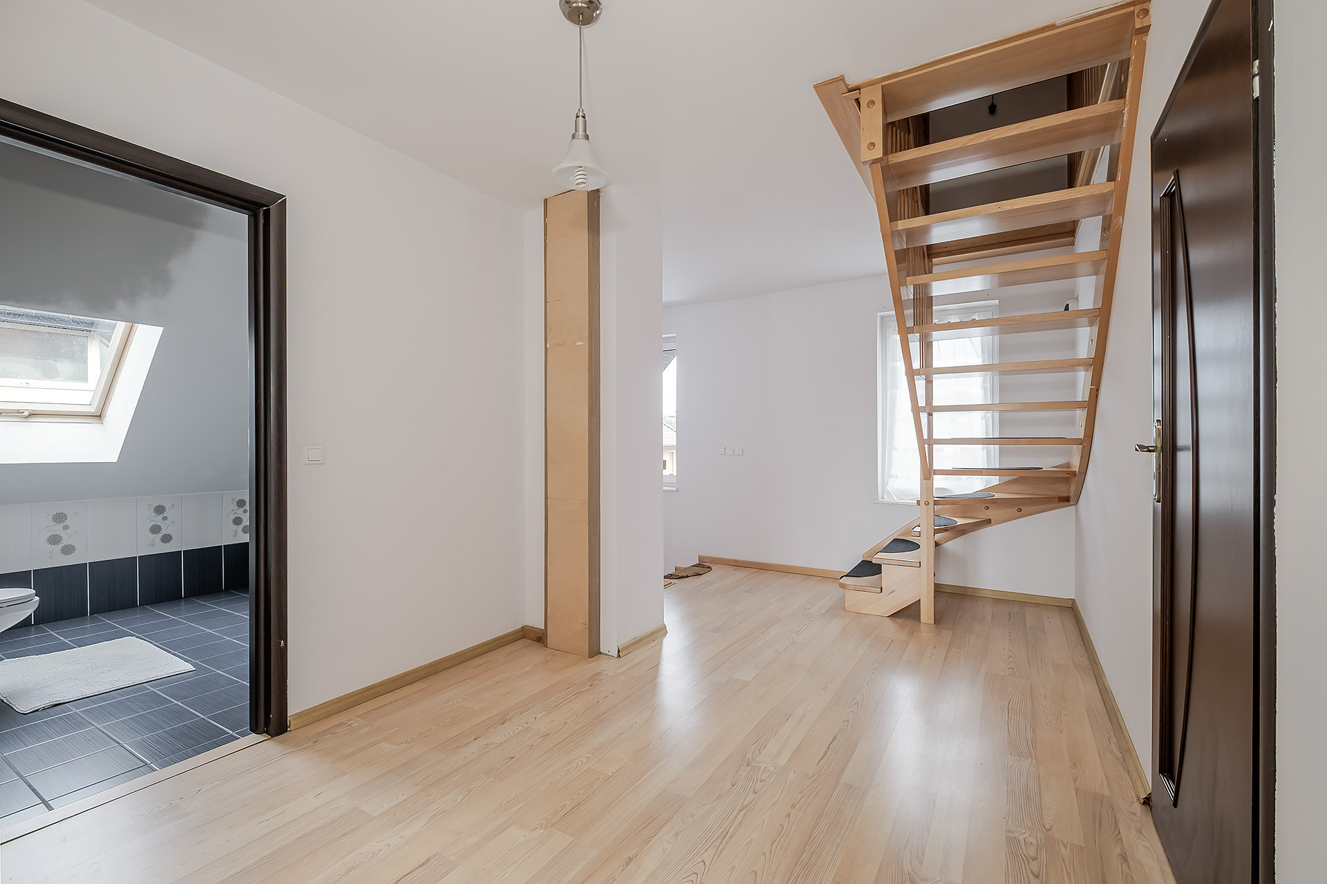 Na parterze znajduje się salon z wyjściem na taras, kuchnia z jadalnią, sypialni oraz łazienka i pralnia. Na piętro prowadzą murowane schody wykończone w drewnie i tam znajdują się 3 sypialnie ( w tym 2 z wyjściem na balkon) oraz łazienka. Niewątpliwym atutem jest również jasny przestronny hol oraz fakt, że w jednym z pokoi jest podłączeni mediów, dzięki czemu możemy zaaranżować tam aneks kuchenny. Dodatkowo na poddaszy zagospodarowany jest kolejny pokój.