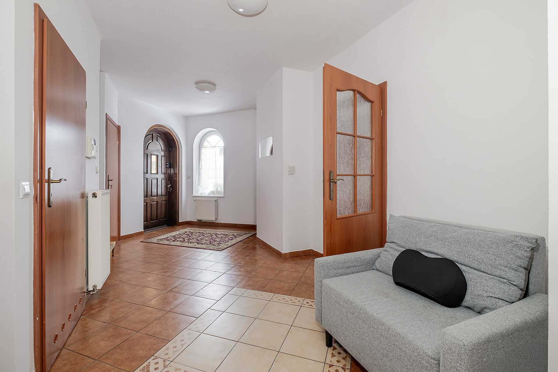 Dom posiada również piwnicę z oddzielnym wejściem, którą można zaaranżować na oddzielne mieszkanie lub biuro itp.