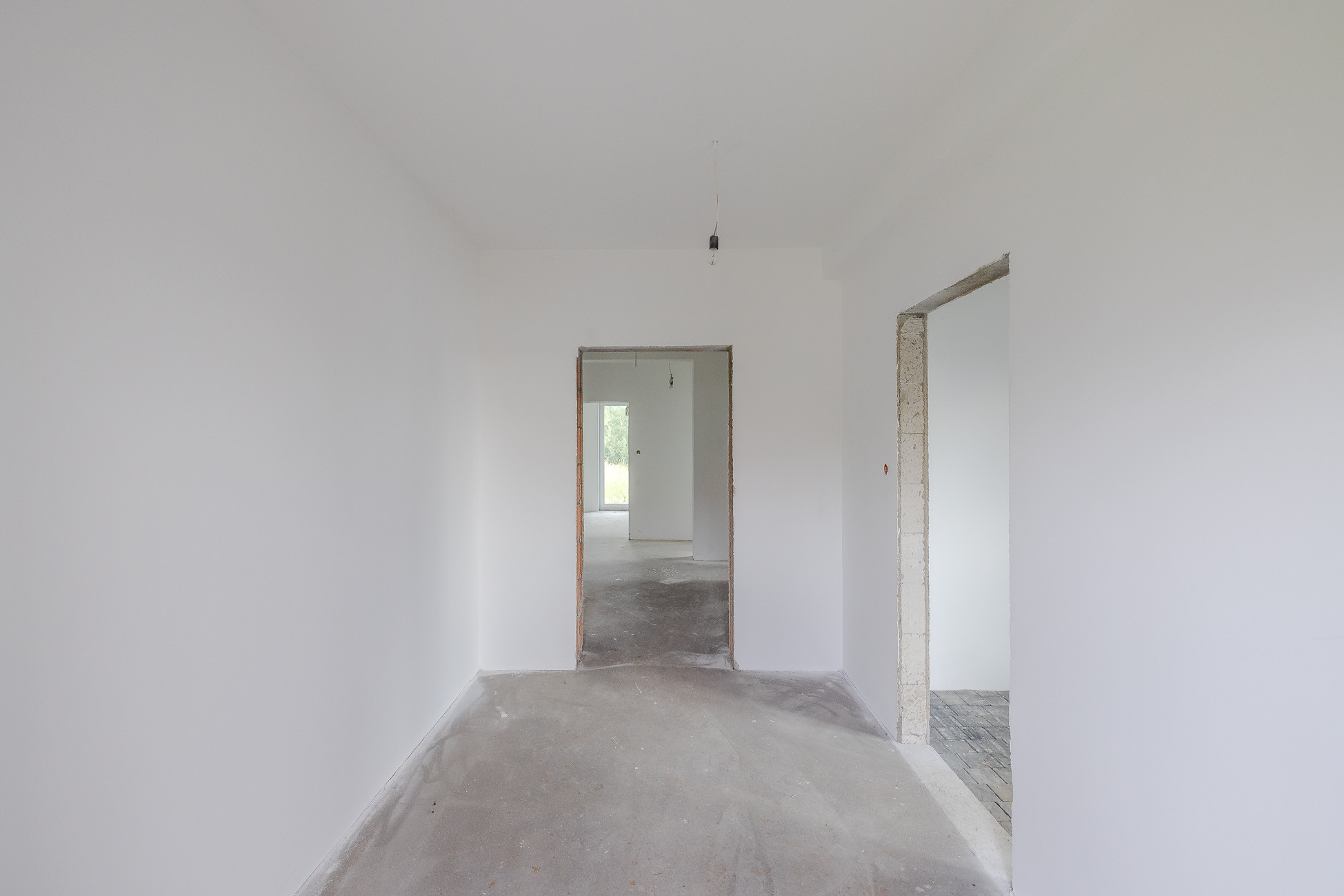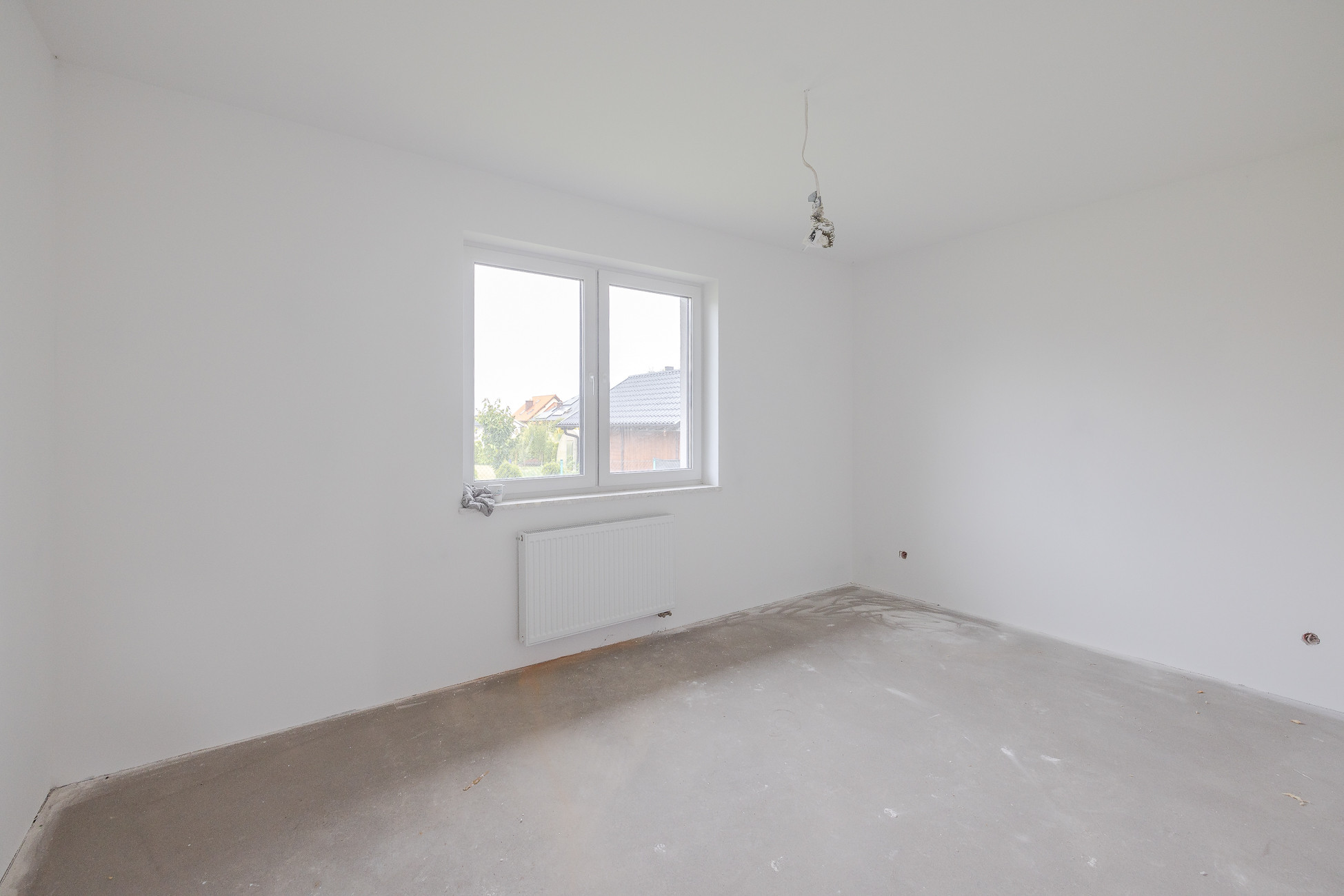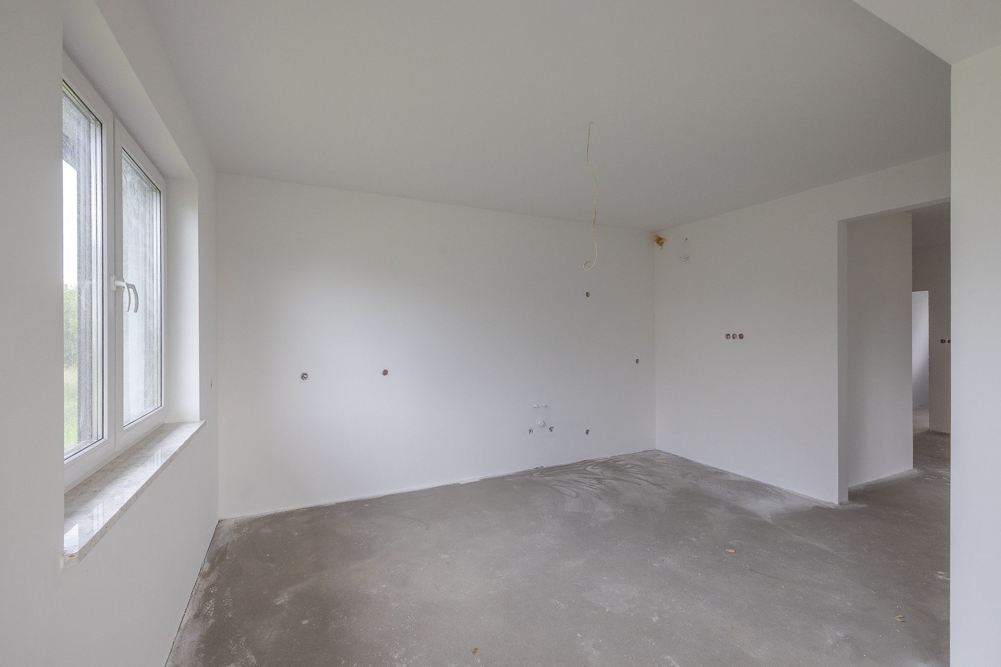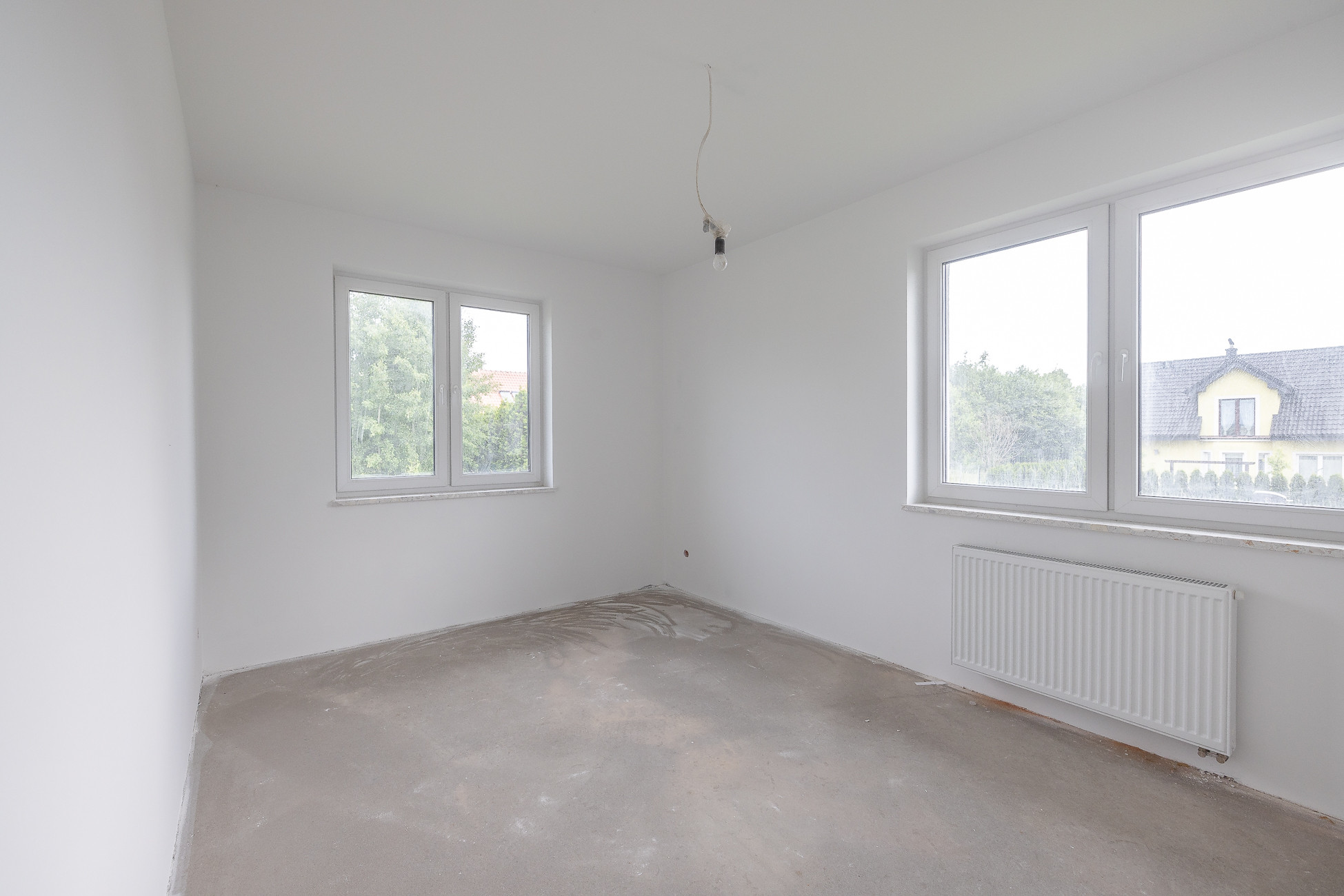 Dom wolnostojący o pow. 225m2 z garażem w bryle budynku oraz dużym strychem który może służyć jako 5 pokój. Dom w stanie deweloperskim zamkniętym z wygładzonymi ścianami pomalowanymi na biało. Działka 939m2