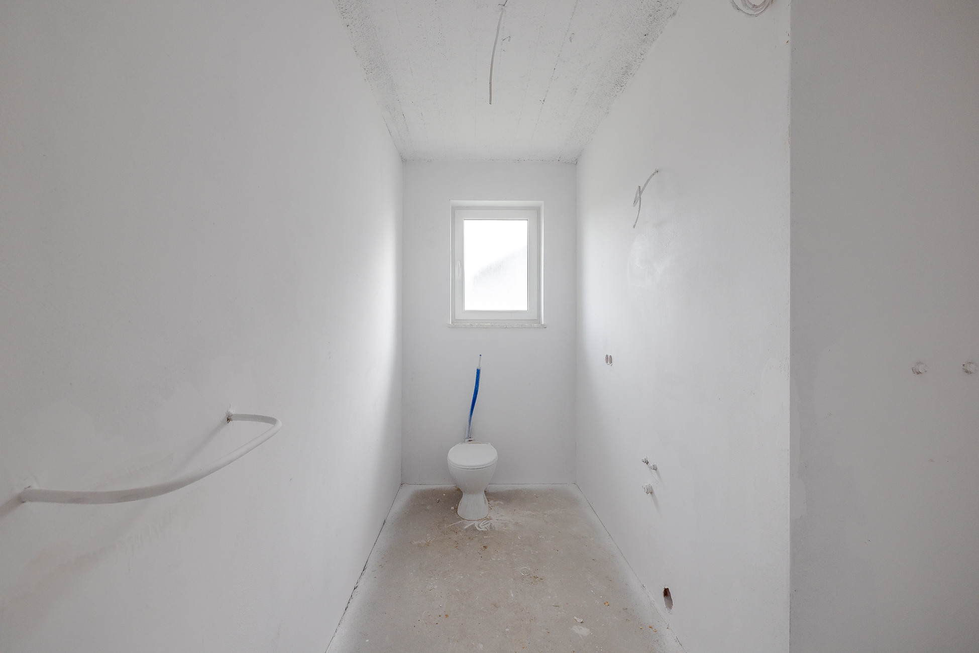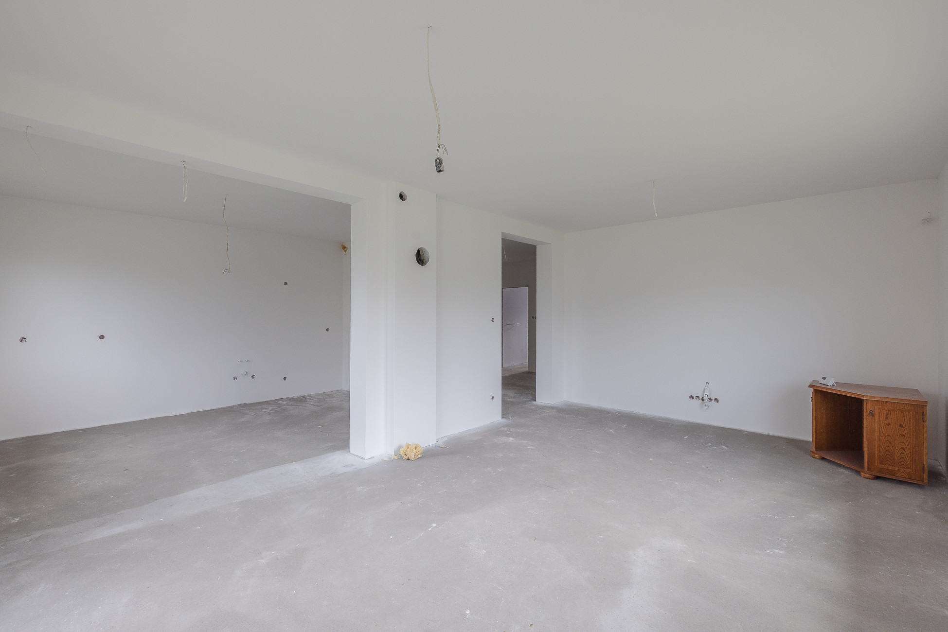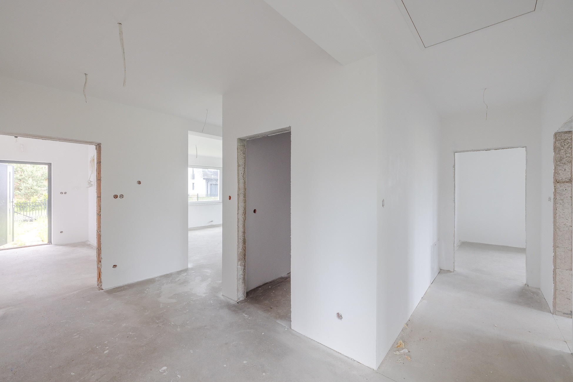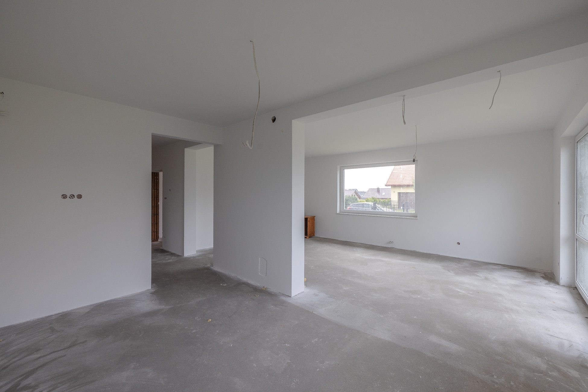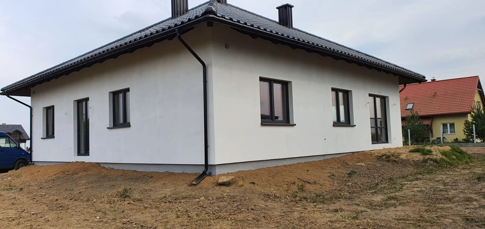 Dom wolnostojący o pow. 225m2 z garażem w bryle budynku oraz dużym strychem który może służyć jako 5 pokój. Dom w stanie deweloperskim zamkniętym z wygładzonymi ścianami pomalowanymi na biało. Działka 939m2