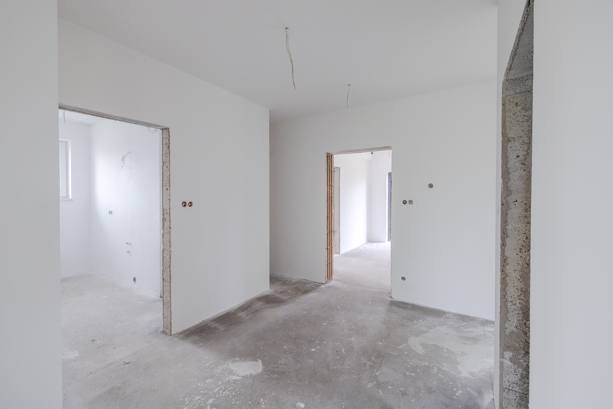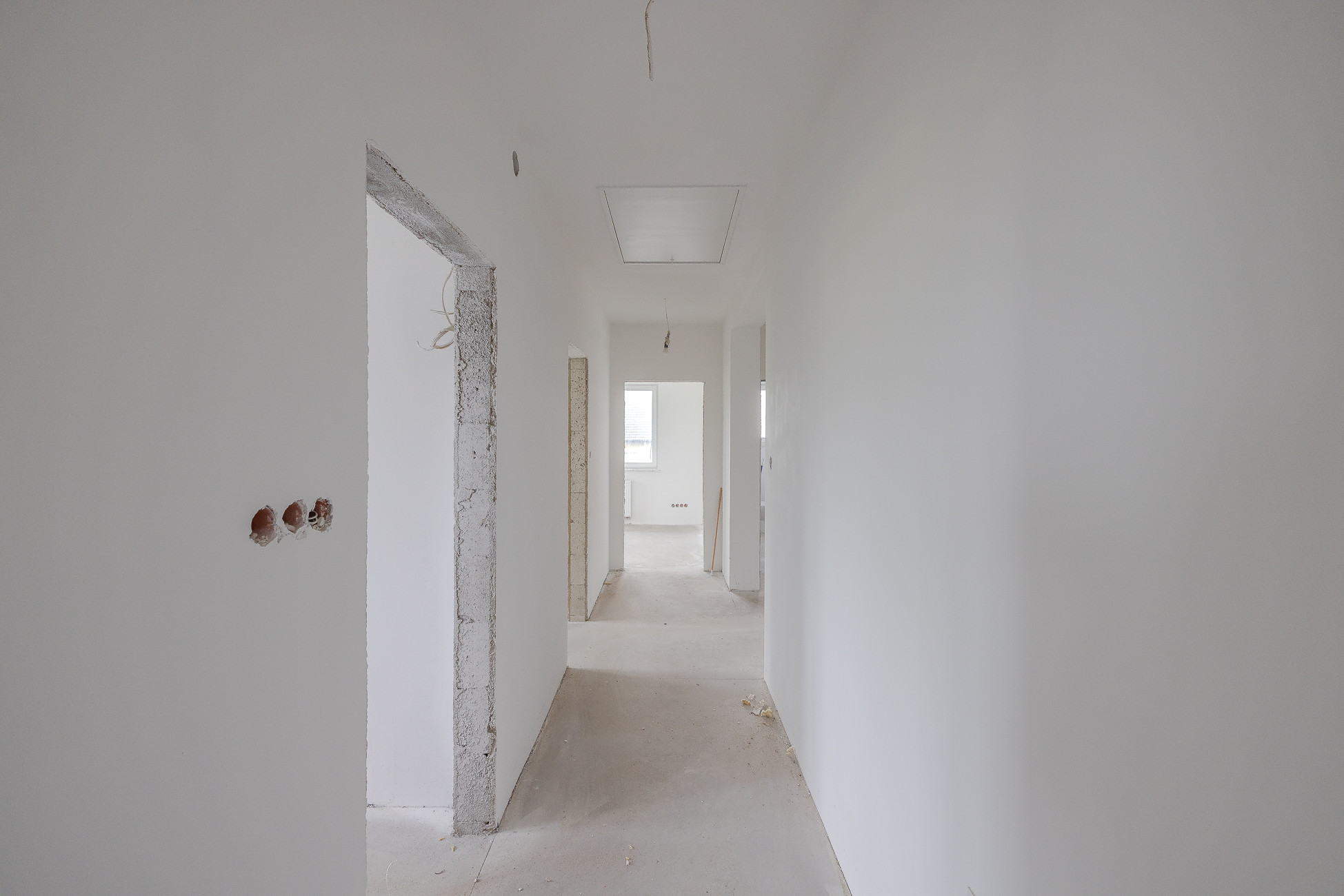 Ściany wygładzone, zagruntowane gotowe do malowania.