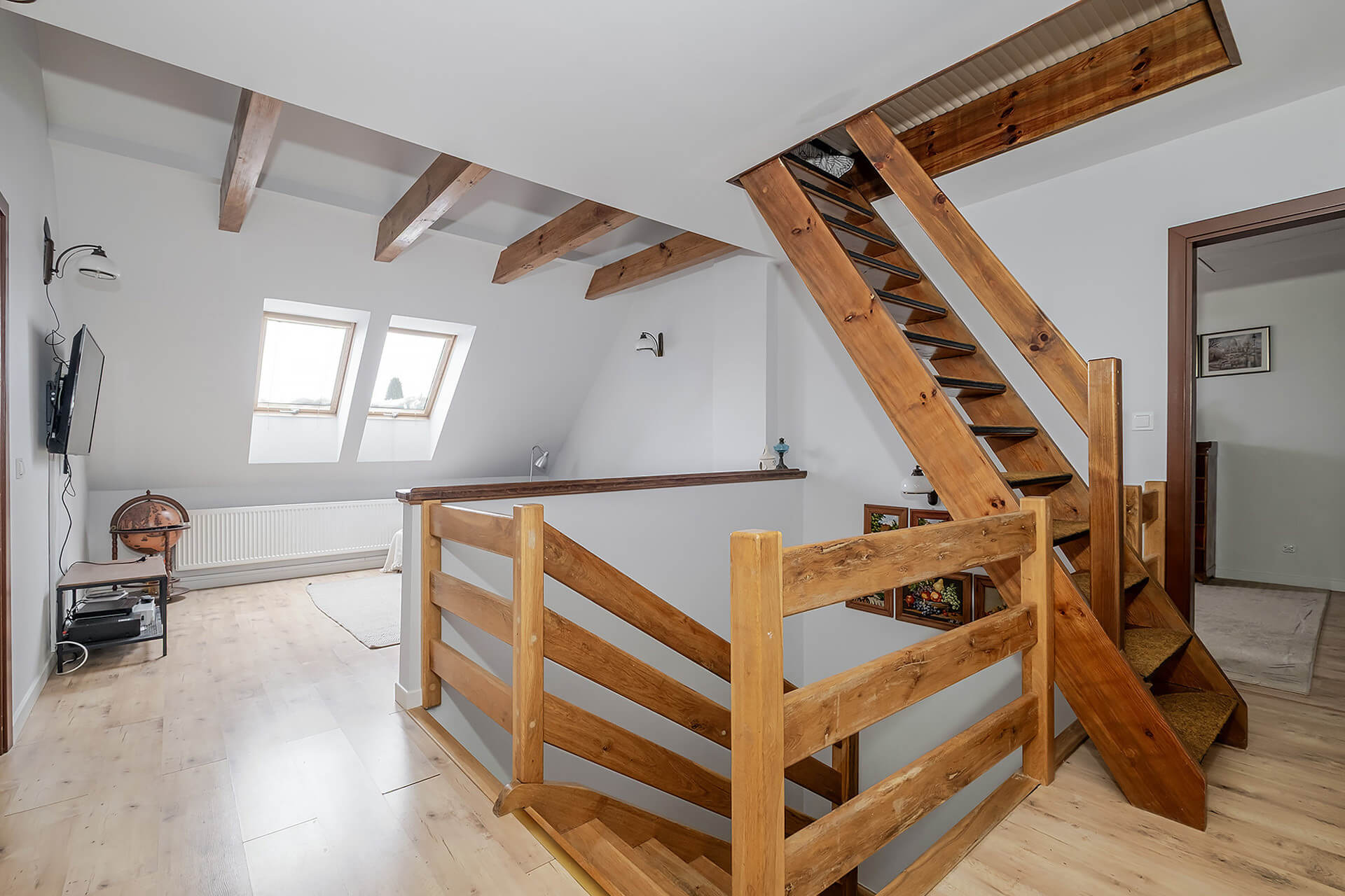 Wolnostojący dom z poddaszem użytkowym o powierzchni użytkowej ok. 150 m² (pow. całkowita ok. 220 m²), wybudowany w 2005 roku dla siebie.