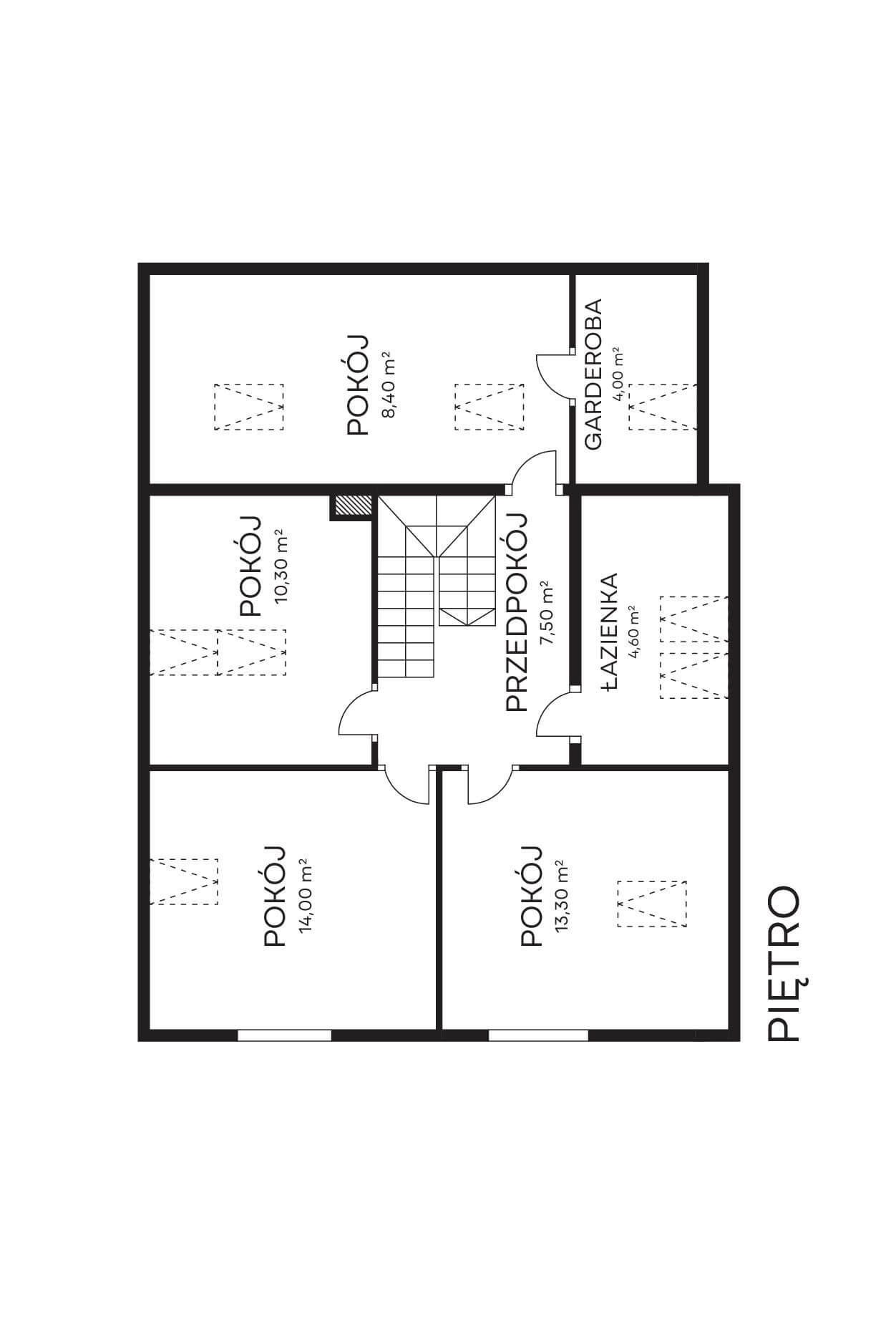 Dom został zaprojektowany z wyraźnym podziałem na strefę dzienną i nocną, zapewniając wygodę i prywatność domowników.