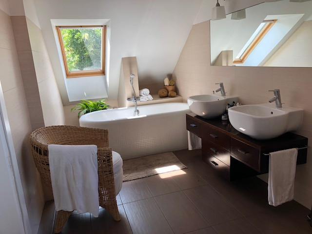 – łazienka z prysznicem, wanną, WC
