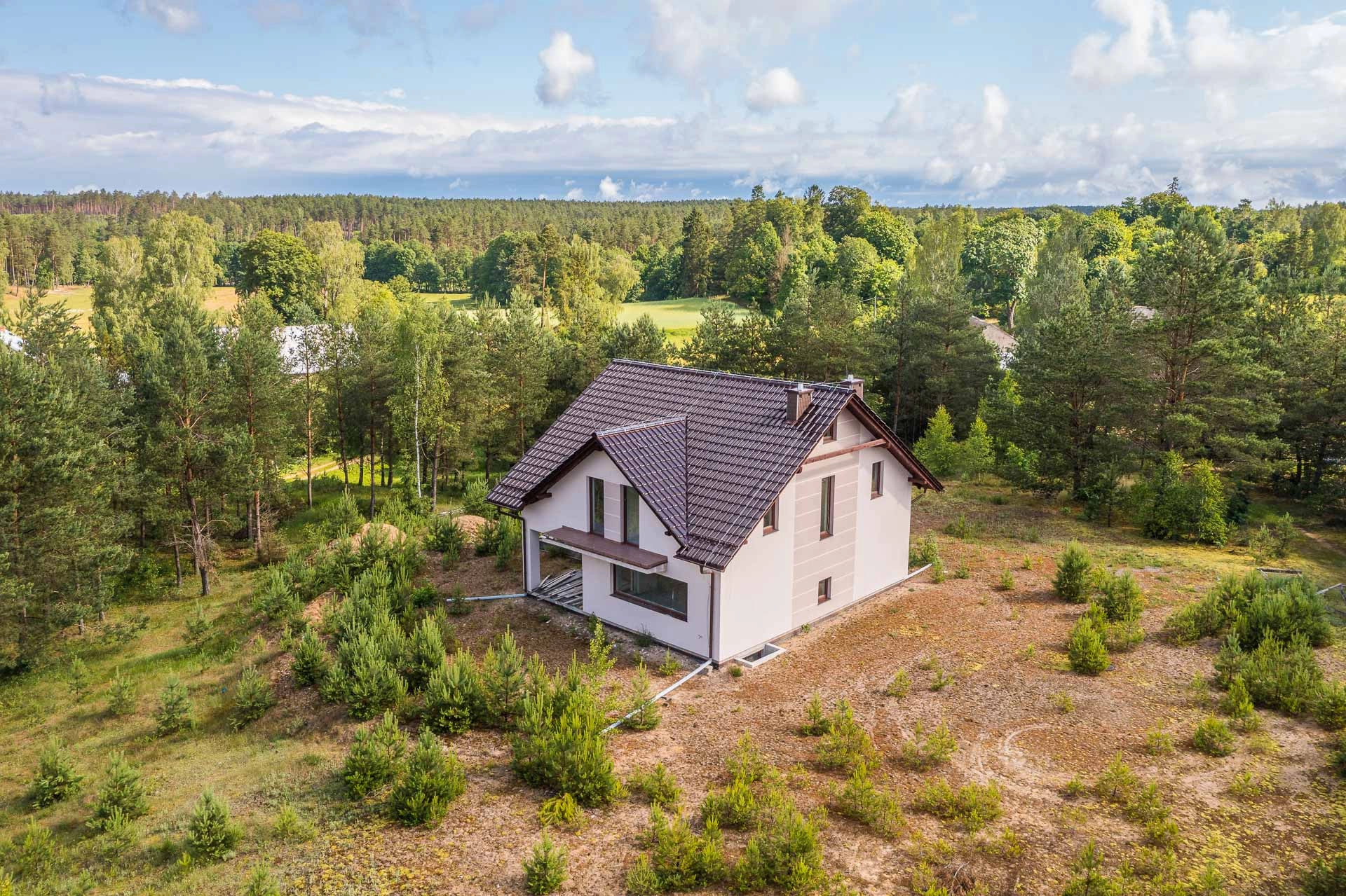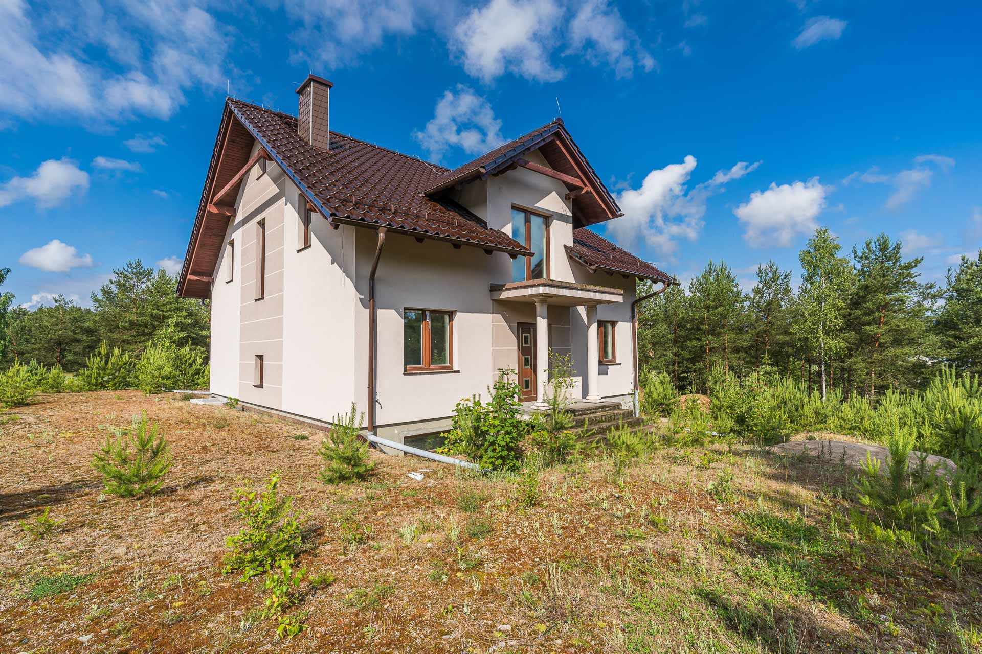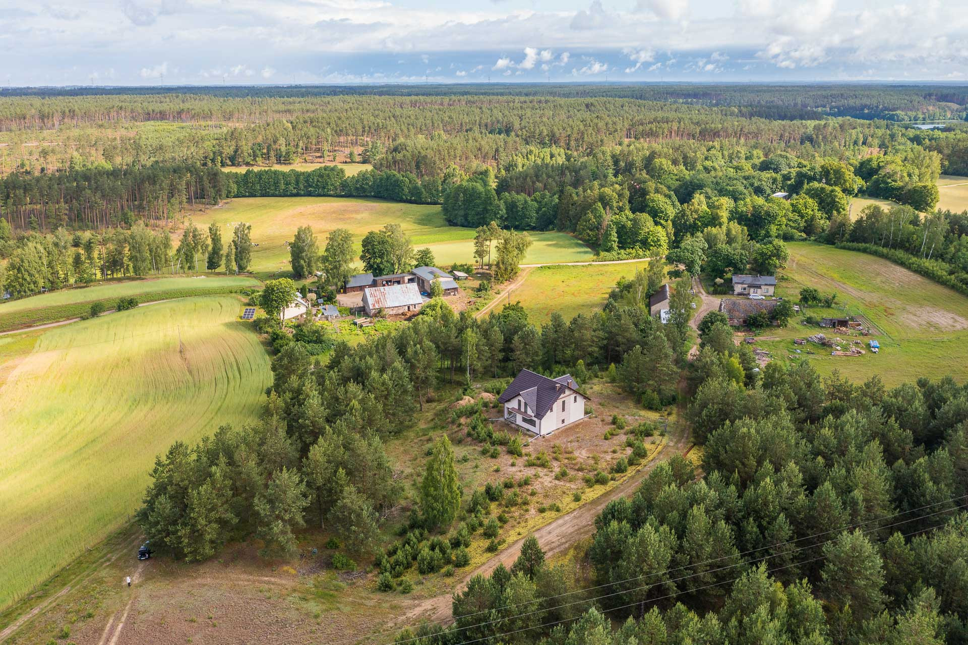 Wybudowany na przełomie 2016/17 roku, dach pokryty dachówką ceramiczną, okna PCV. Nieruchomość otynkowana z zewnątrz, wyposażona we wszystkie instalacje, tj. instalacja elektryczną oraz hydrauliczną. Instalacja elektryczna założona jest z wyjściem na fotowoltaikę na dachu, system alarmowy i monitoringu oraz bramę wjazdową na krańcu działki. Wewnątrz wszystkie ściany są otynkowane, salon oraz łazienka posiadają ogrzewanie podłogowe, pozostałe pomieszczenia mają zamontowane grzejniki. Ciepło dostarczane jest poprzez nowoczesny piec marki Heitztechnik z ogromnym zasypem na pellet oraz zbiornik na ciepłą wodę z dodatkową grzałka elektryczną o pojemności 300 litrów. Na terenie działki znajduje się studnia do wyłącznego wykorzystania (56 m) oraz stacja oczyszczania wody. Dom nie posiada kanalizacji, w projekcie jest szambo. Działka nieogrodzona, posiada dostęp do drogi publicznej (służebność przejazdu i przechodu).