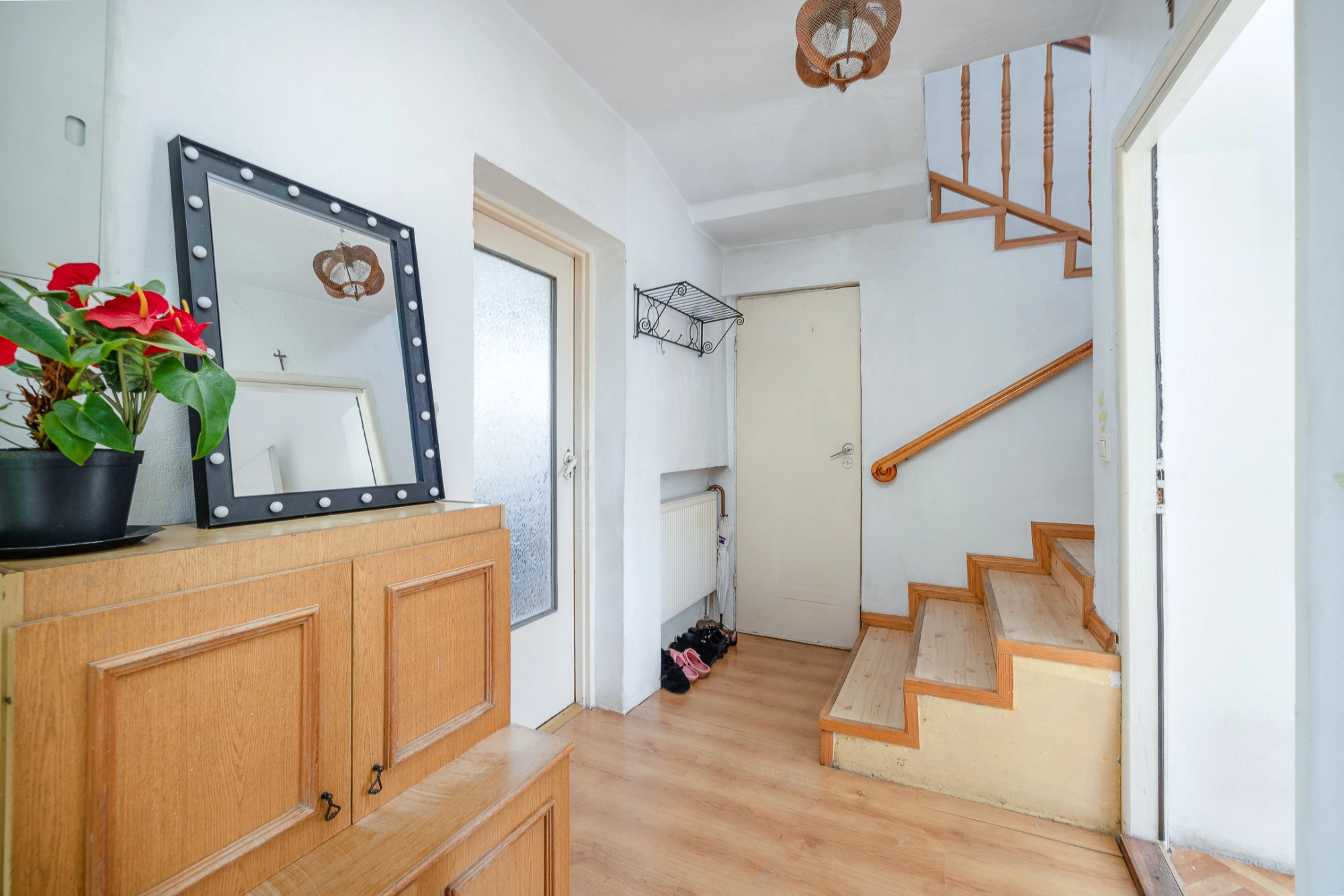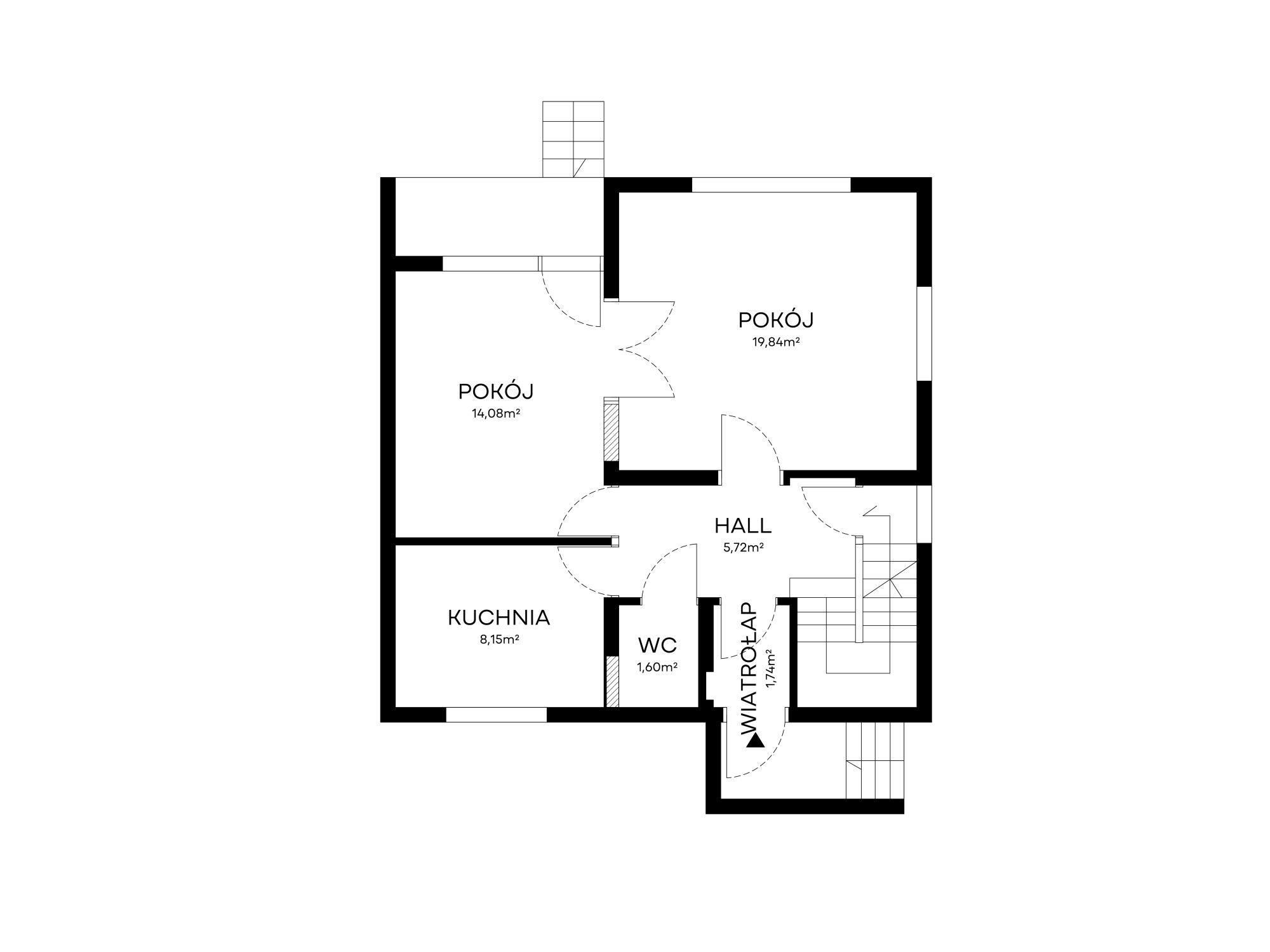 Na wysokim parterze znajduje się pokój dzienny, sypialnia, kuchnia oraz toaleta. Na piętro prowadzą wygodne schody i tam znajdują się 2 pokoje, kuchnia i łazienka. Średnio na kondygnację przypada ok. 55 m2.