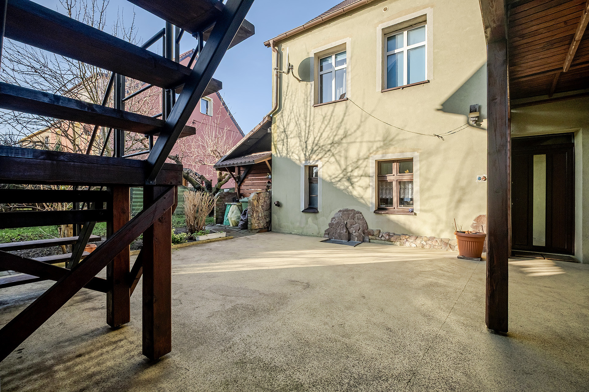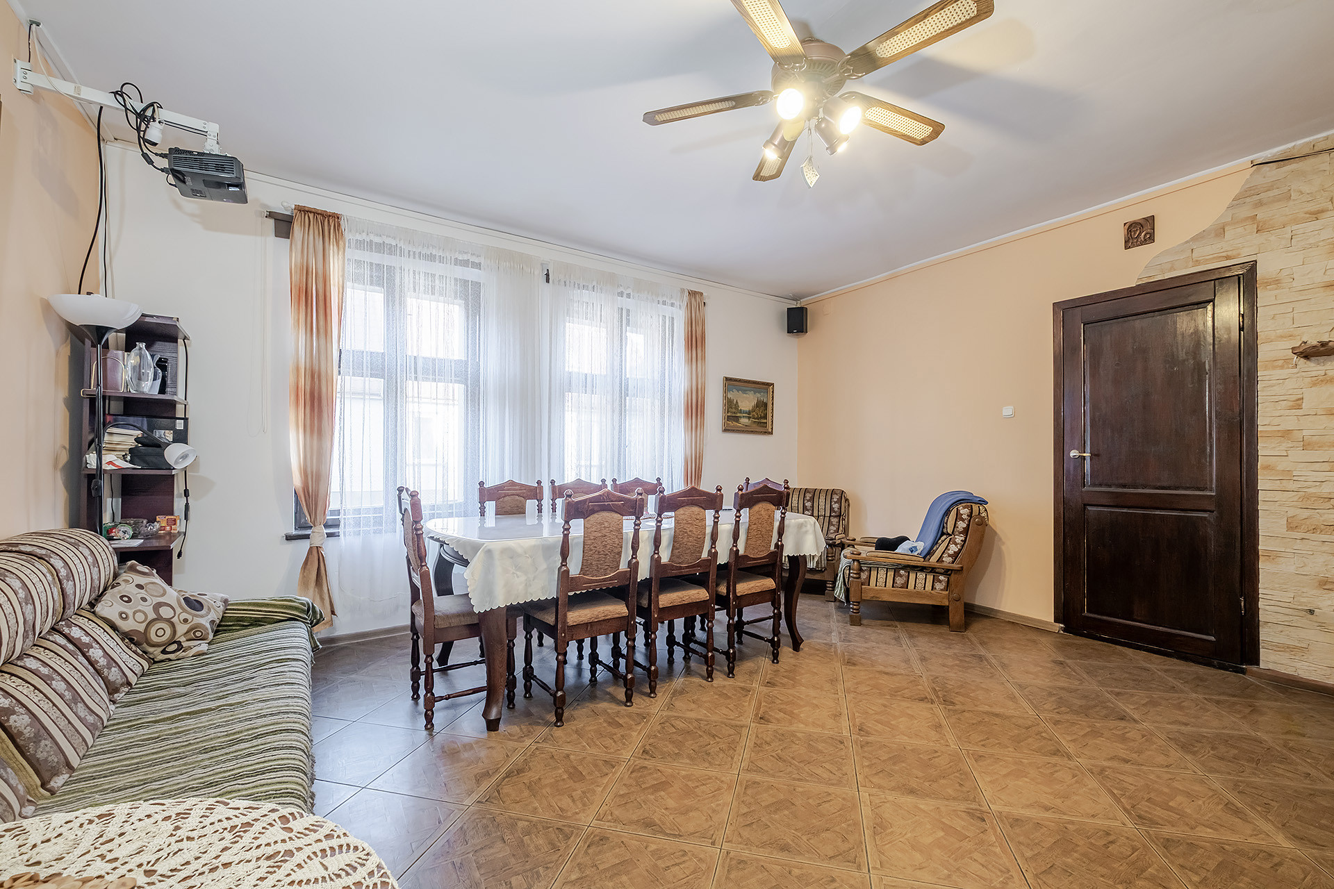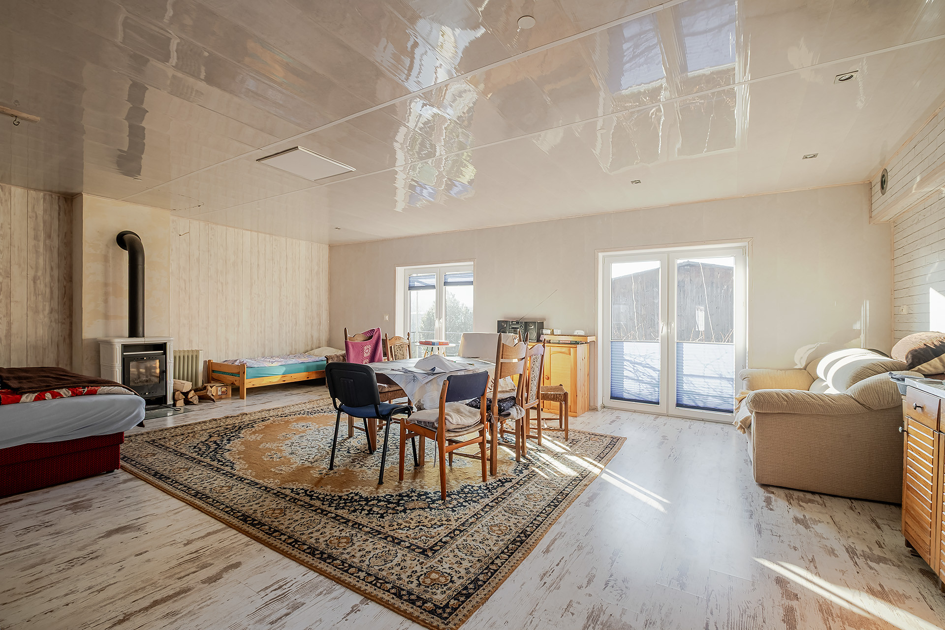 Nieruchomość o powierzchni ok. 300 m² usytuowana jest na działce o powierzchni ok. 500 m². Część mieszkalna obejmuje strefę dzienną oraz 6+ pokoi i wymaga jedynie odświeżenia, co daje możliwość aranżacji według własnych potrzeb.
