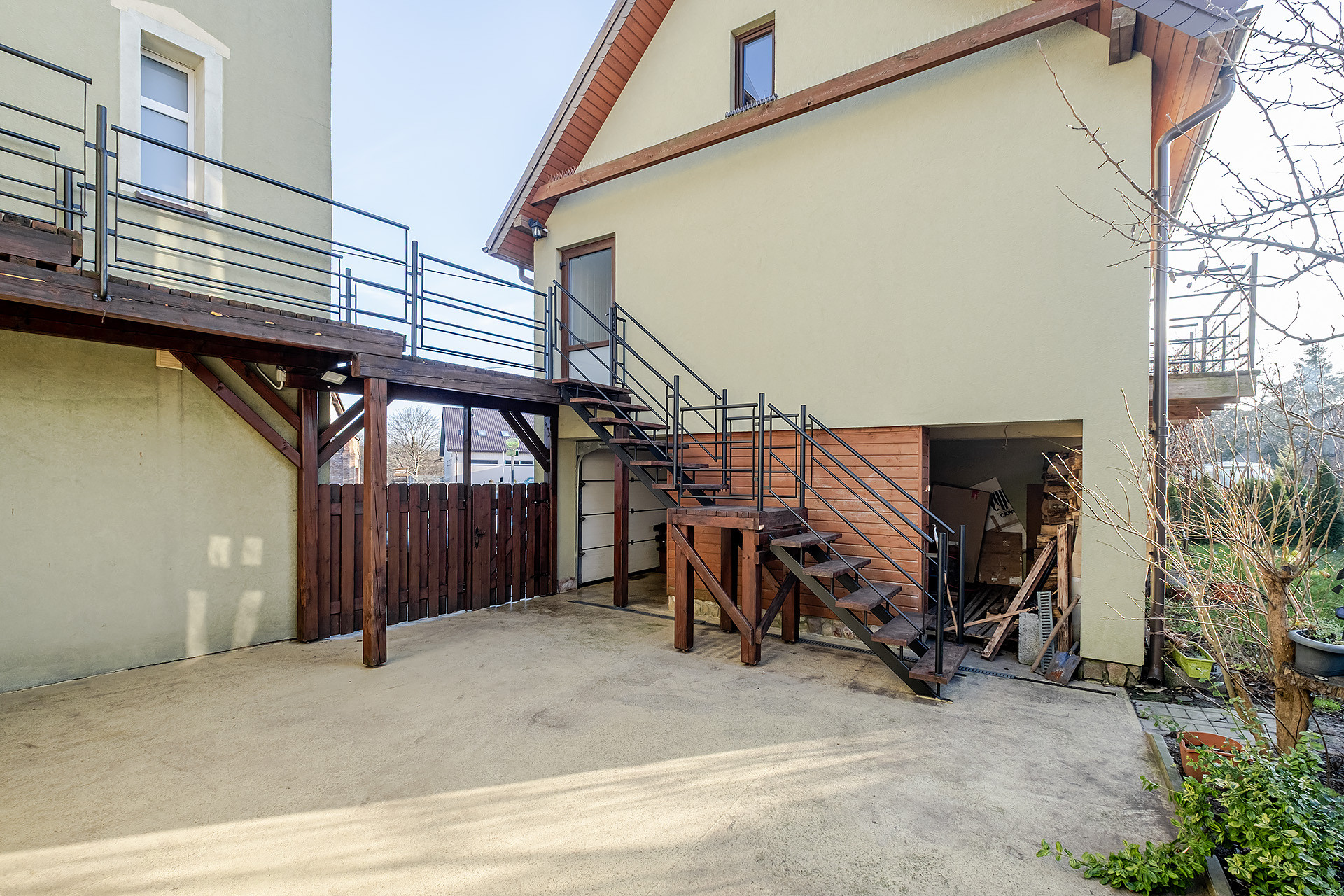 Budynek oferuje funkcjonalny układ pomieszczeń, możliwość adaptacji na cele mieszkalne, usługowe lub biurowe. Do dyspozycji są miejsca parkingowe przy budynku oraz garaże. Dodatkowym atutem jest przestronny taras oraz zewnętrzna klatka schodowa.