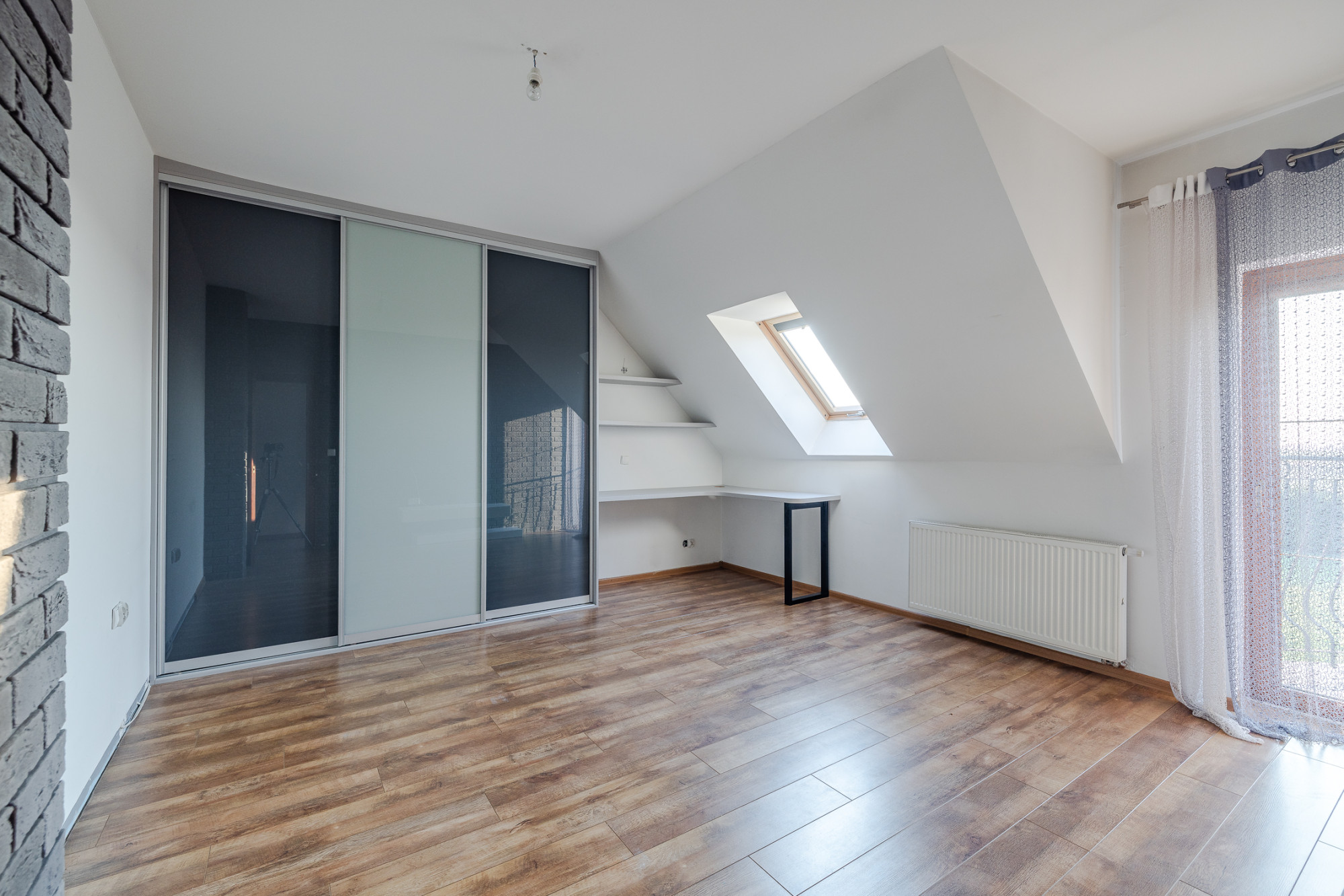 Na podłogach panele i płytki. Zainstalowany jest 2-funkcyjny piec gazowy odpowiedzialny za ogrzewanie, jak również dostarczanie ciepłej wody. Dodatkowo ogrzewanie podłogowe w miejscach, gdzie są płytki. Okna domu są plastikowe i drewniane (połaciowe), a ich wystawa wschodnio-południowa, południowo-zachodnia oraz zachodnio-północna.