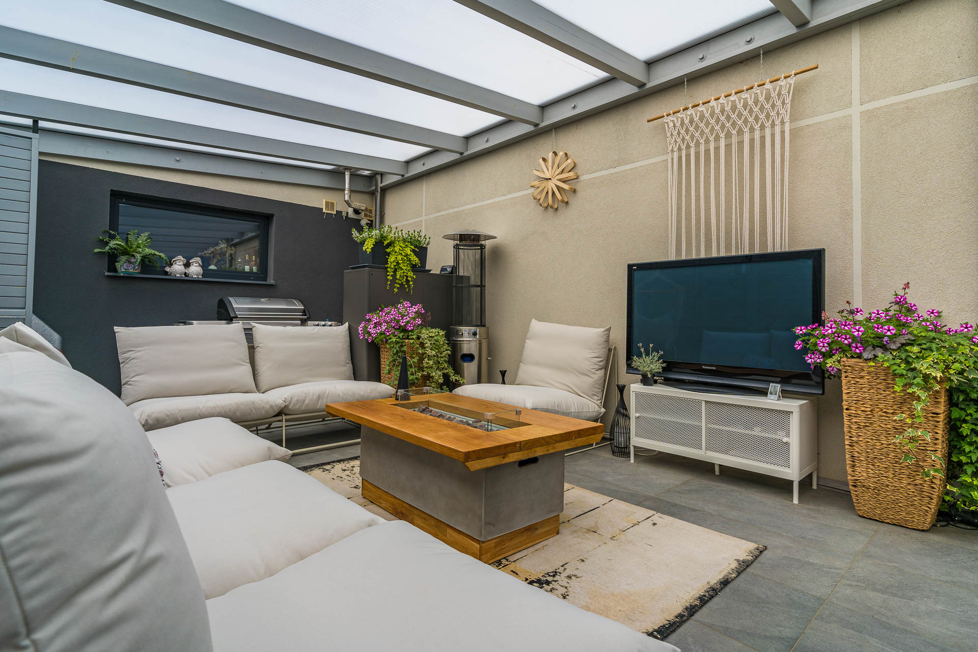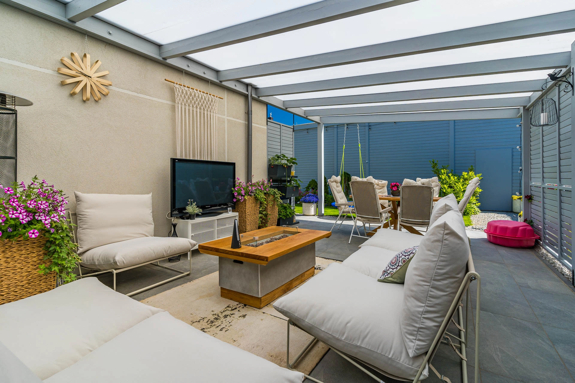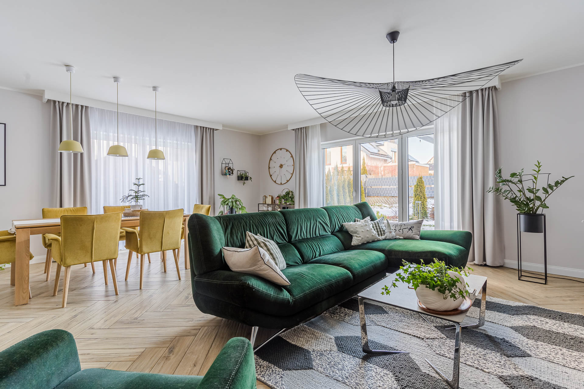 – salon (39,19 m2) z wyjściem na zadaszony taras i ogród,