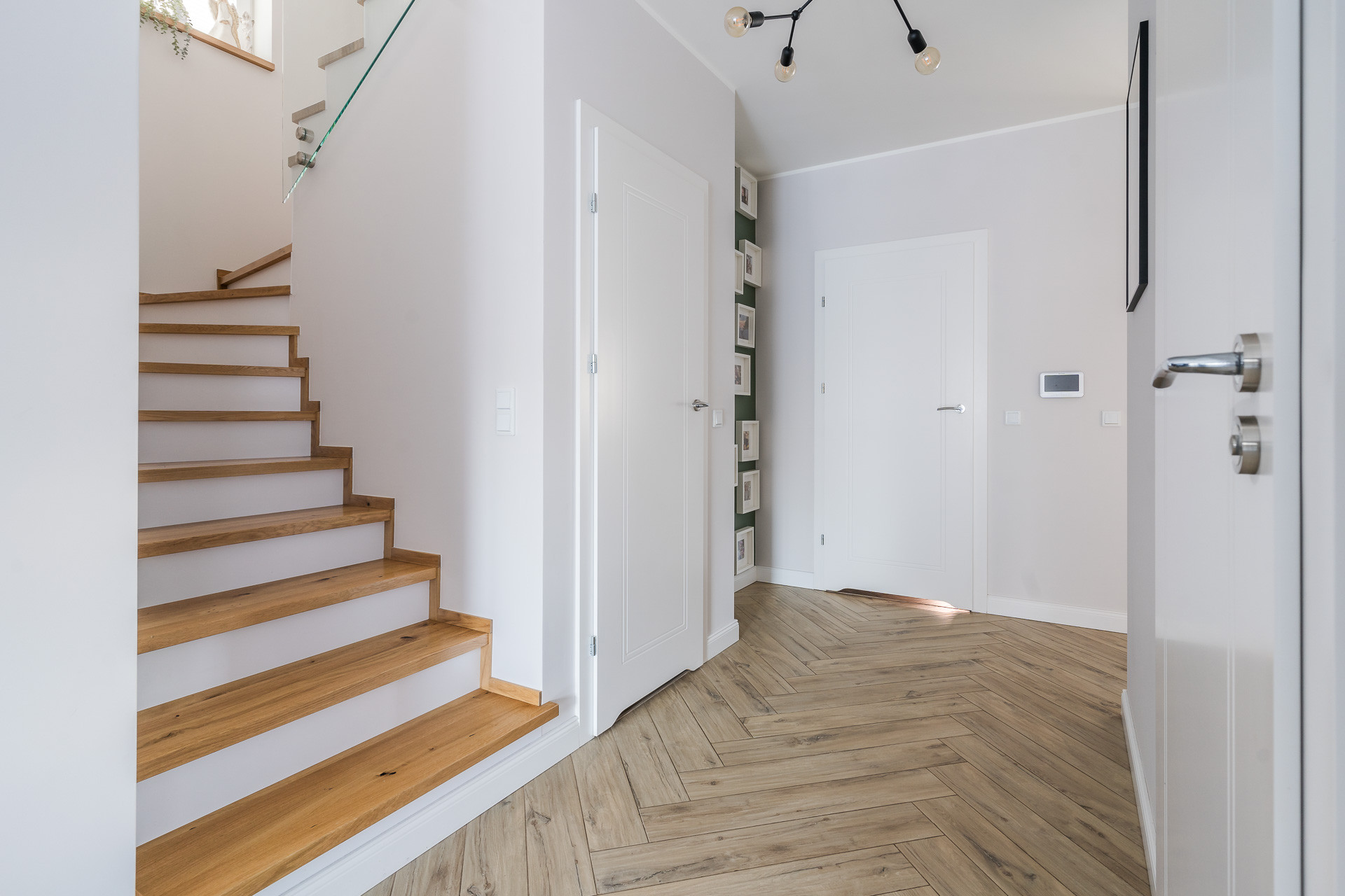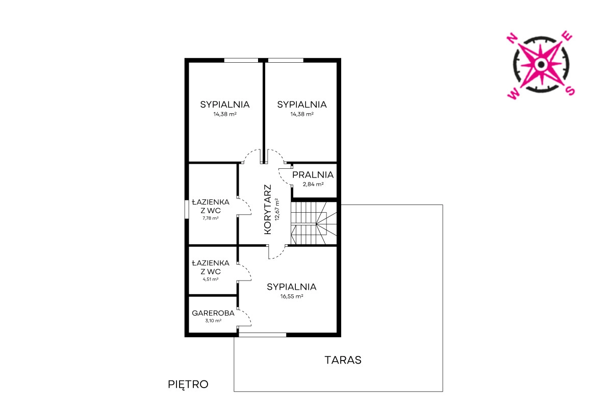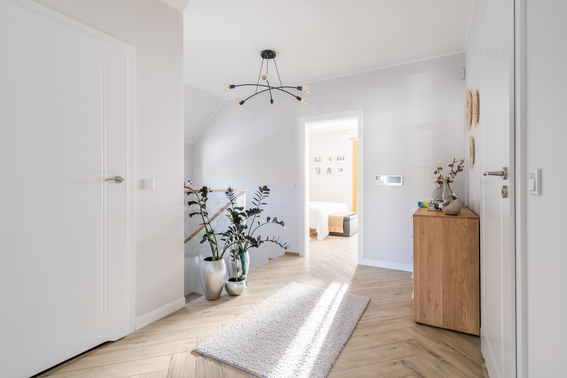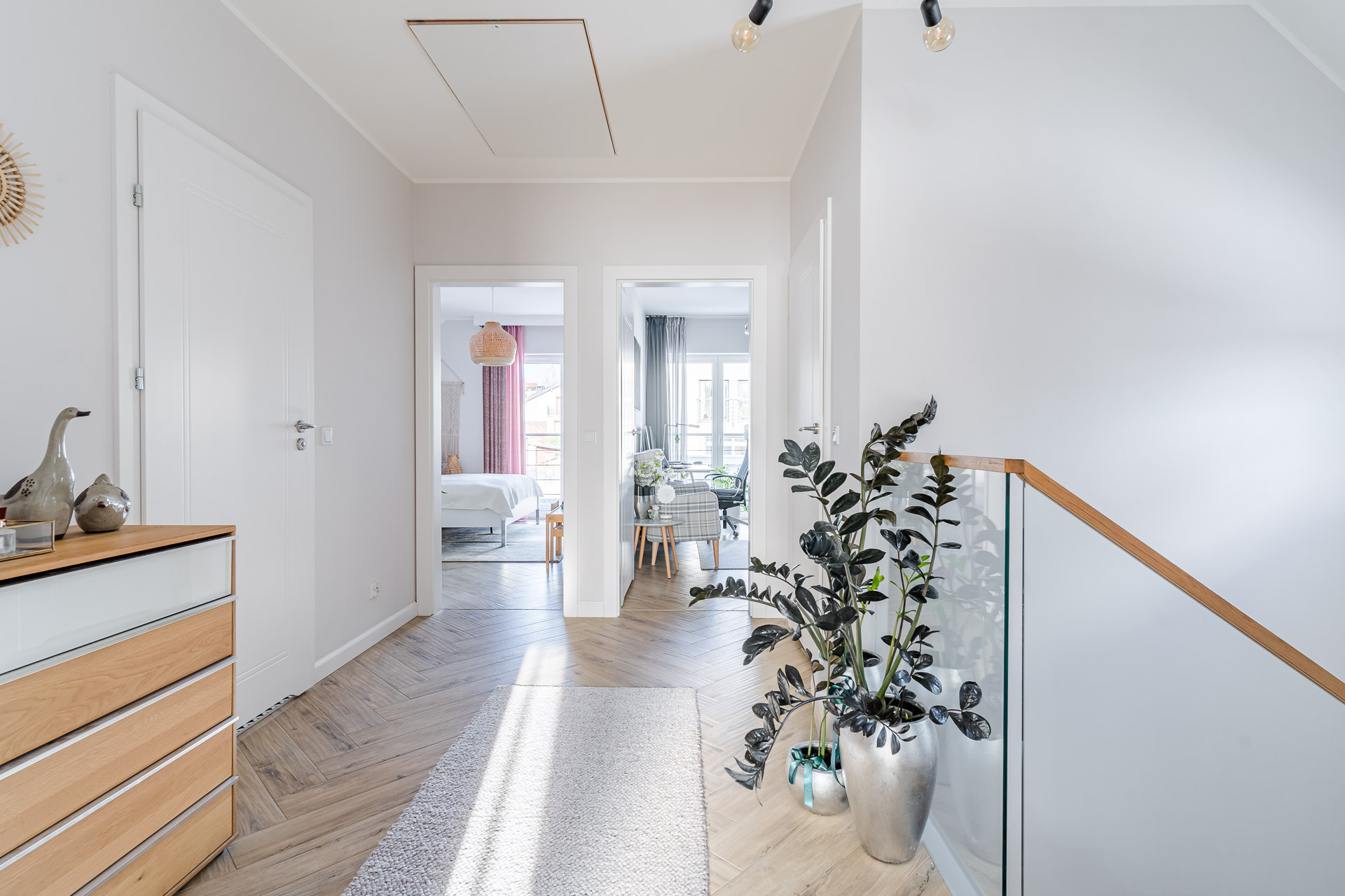 – korytarz (12,67 m2), z którego dostaniemy się także na strych (ok. 50,00 m2).