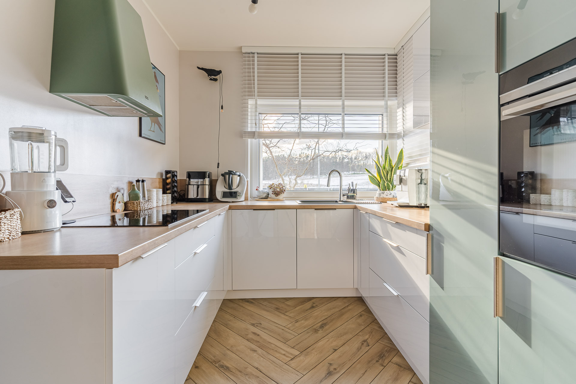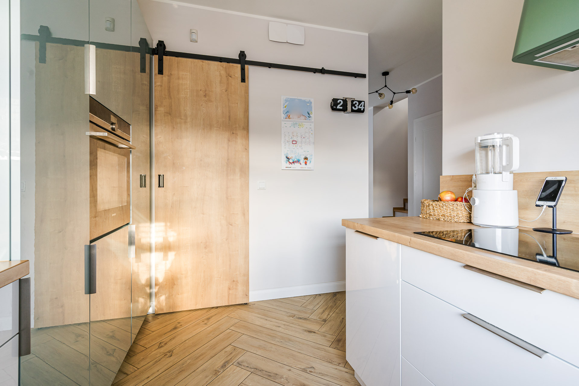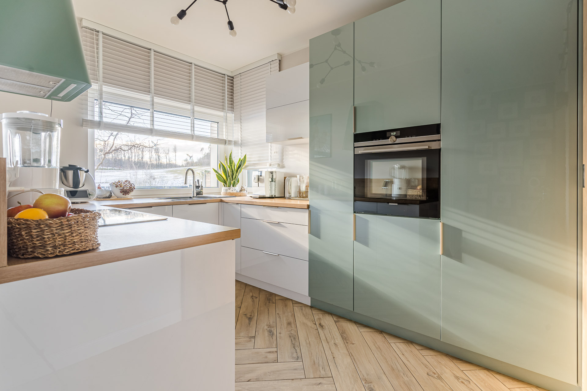 – kuchnia (9,28 m2) z meblami w zabudowie, wyposażeniem w sprzęt AGD i oknem,