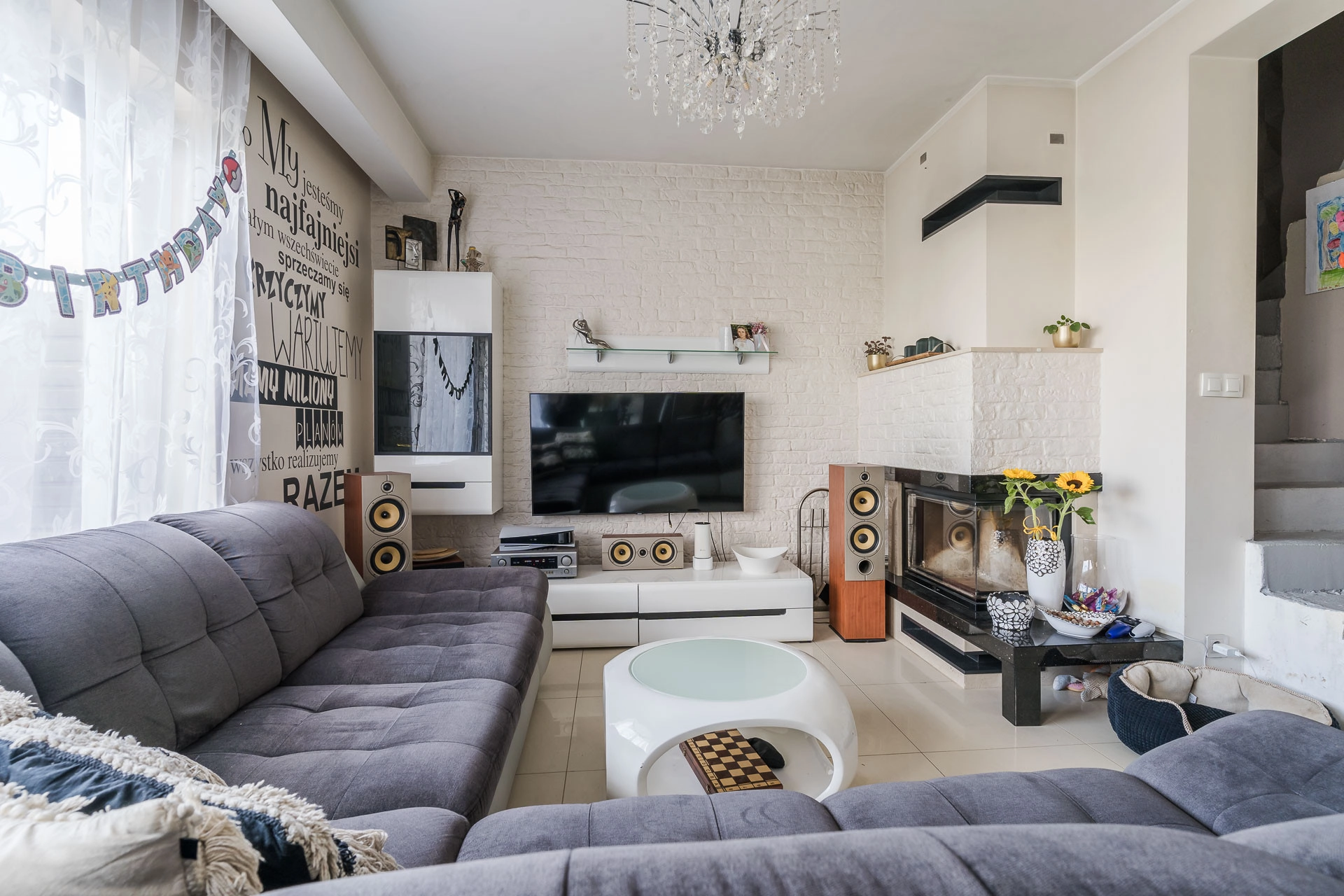 – przestronny salon z klimatycznym kominkiem oraz wyjściem na taras i do ogrodu,
