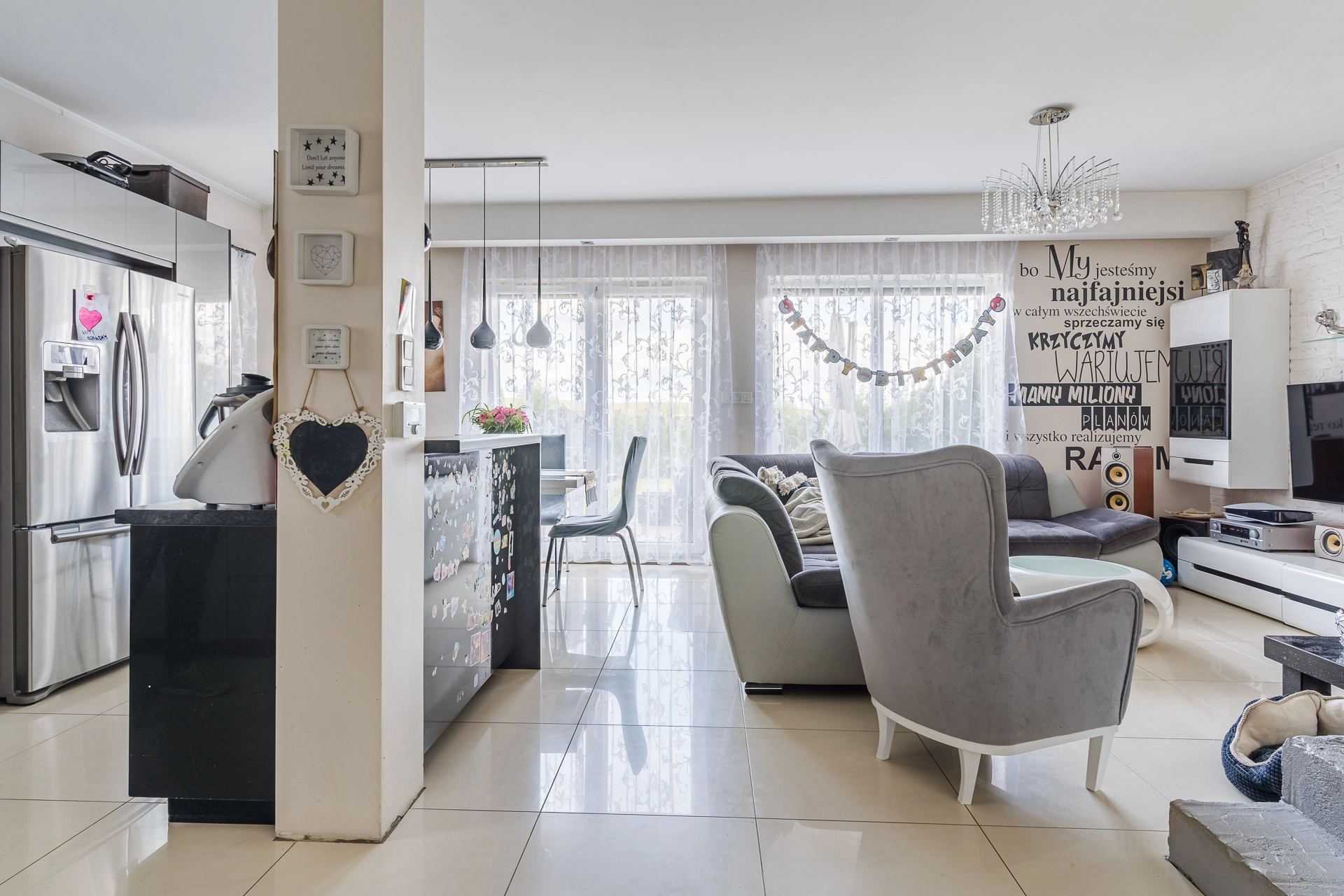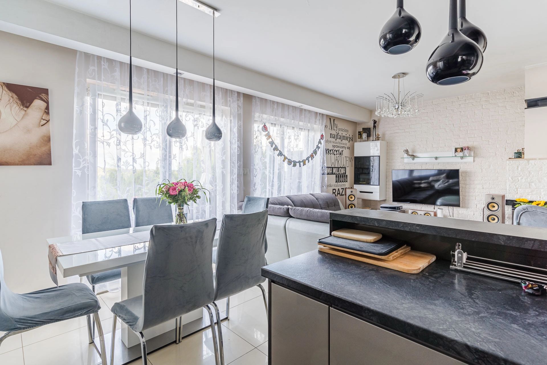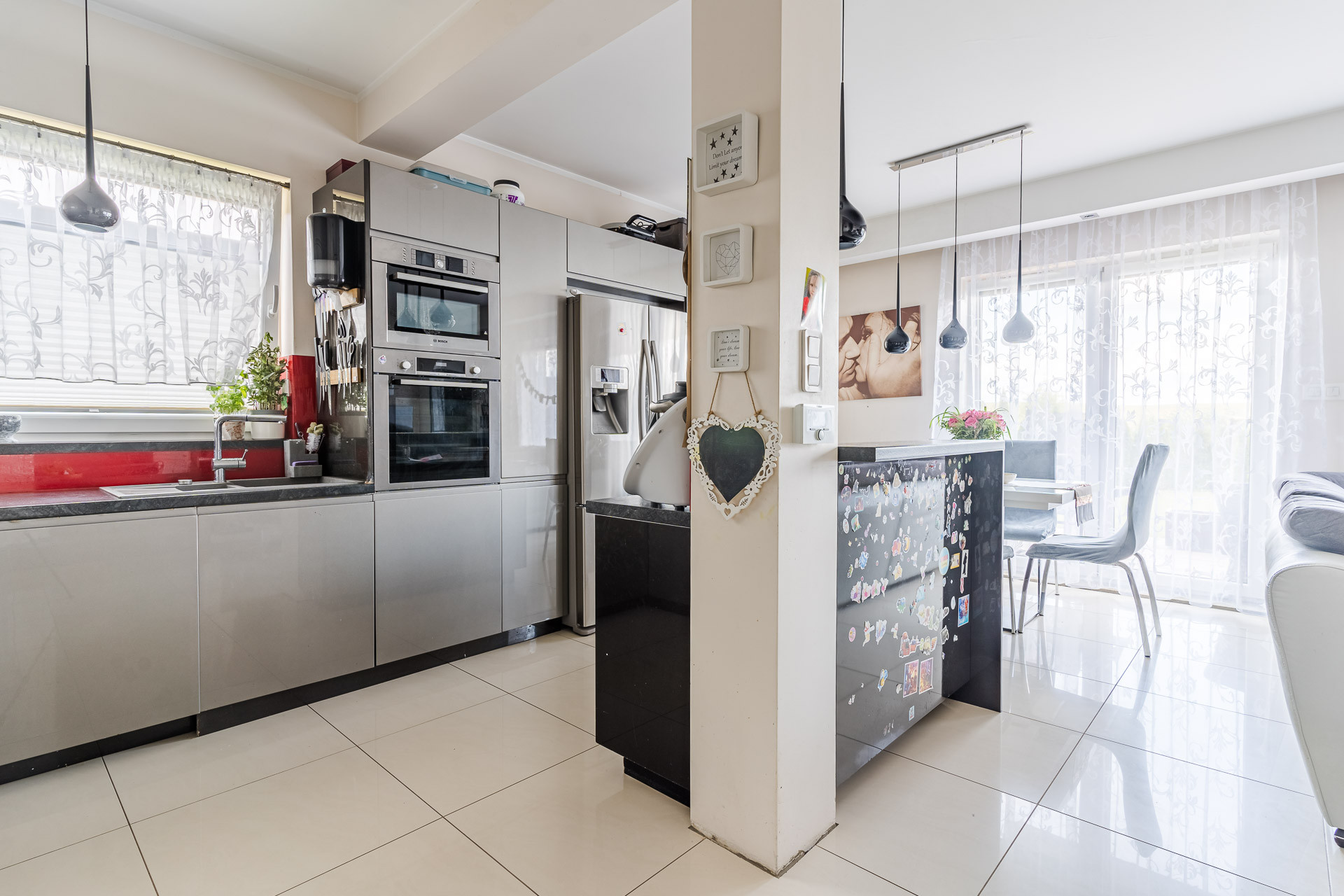 – spora otwarta kuchnia z meblami w zabudowie na wymiar oraz sprzętem AGD