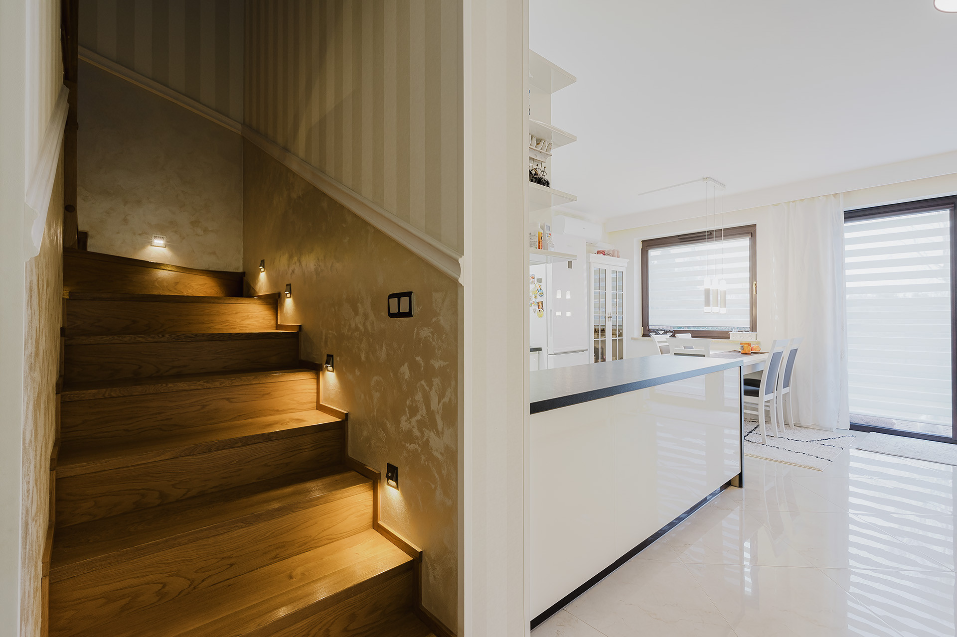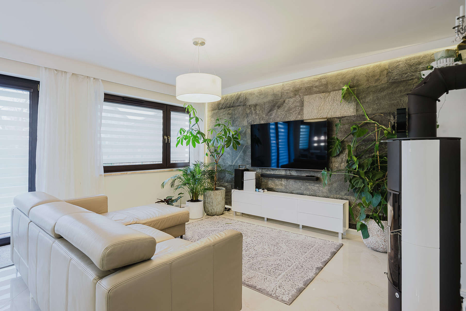 * ogrzewanie: kominek, klimatyzacja z funkcją grzania, piec dwufunkcyjny zasilany gazem, ogrzewanie podłogowe na parterze, na piętrze kaloryfery