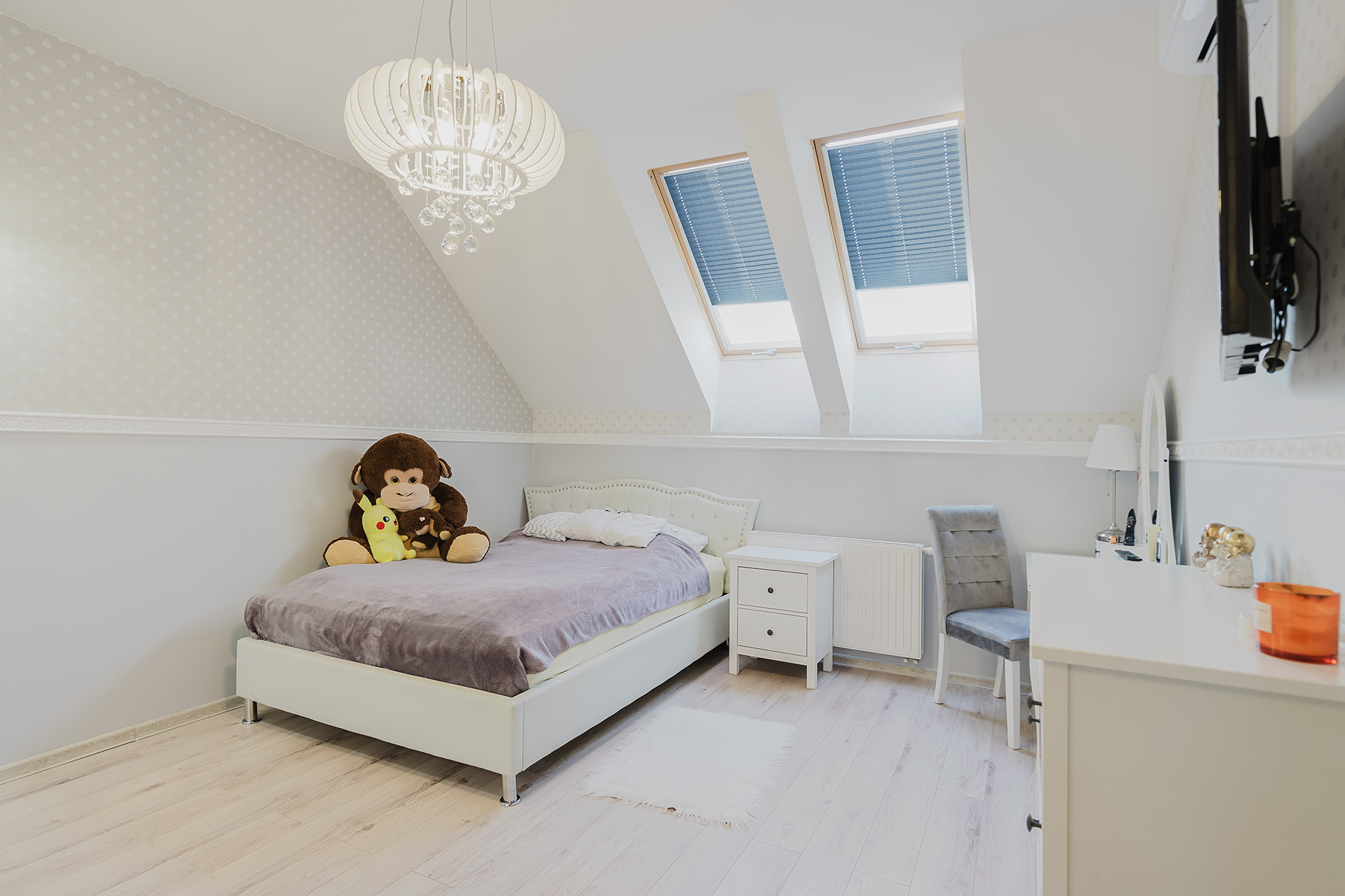 – możliwość adaptacji poddasza i aranżacji dodatkowo dwóch sypialni i łazienki lub dużej sypialni z prywatną łazienką i garderobą