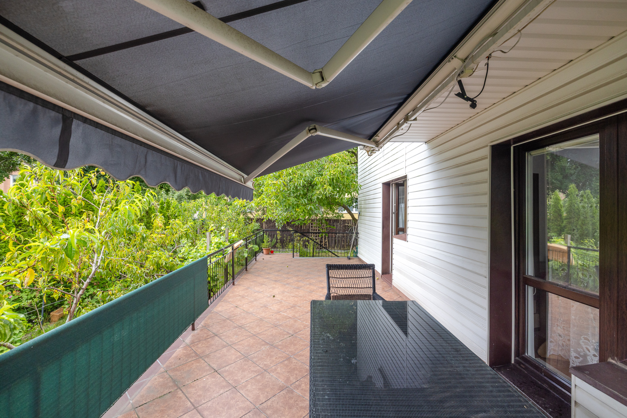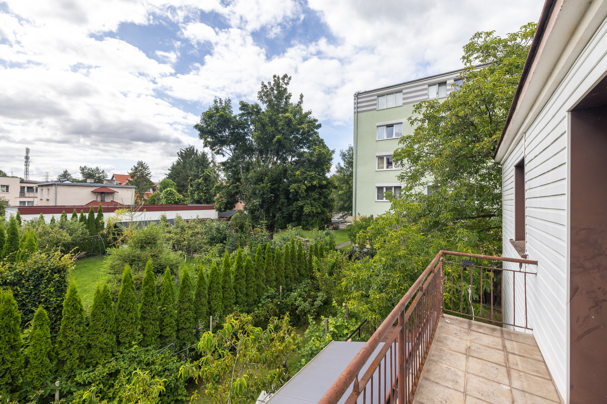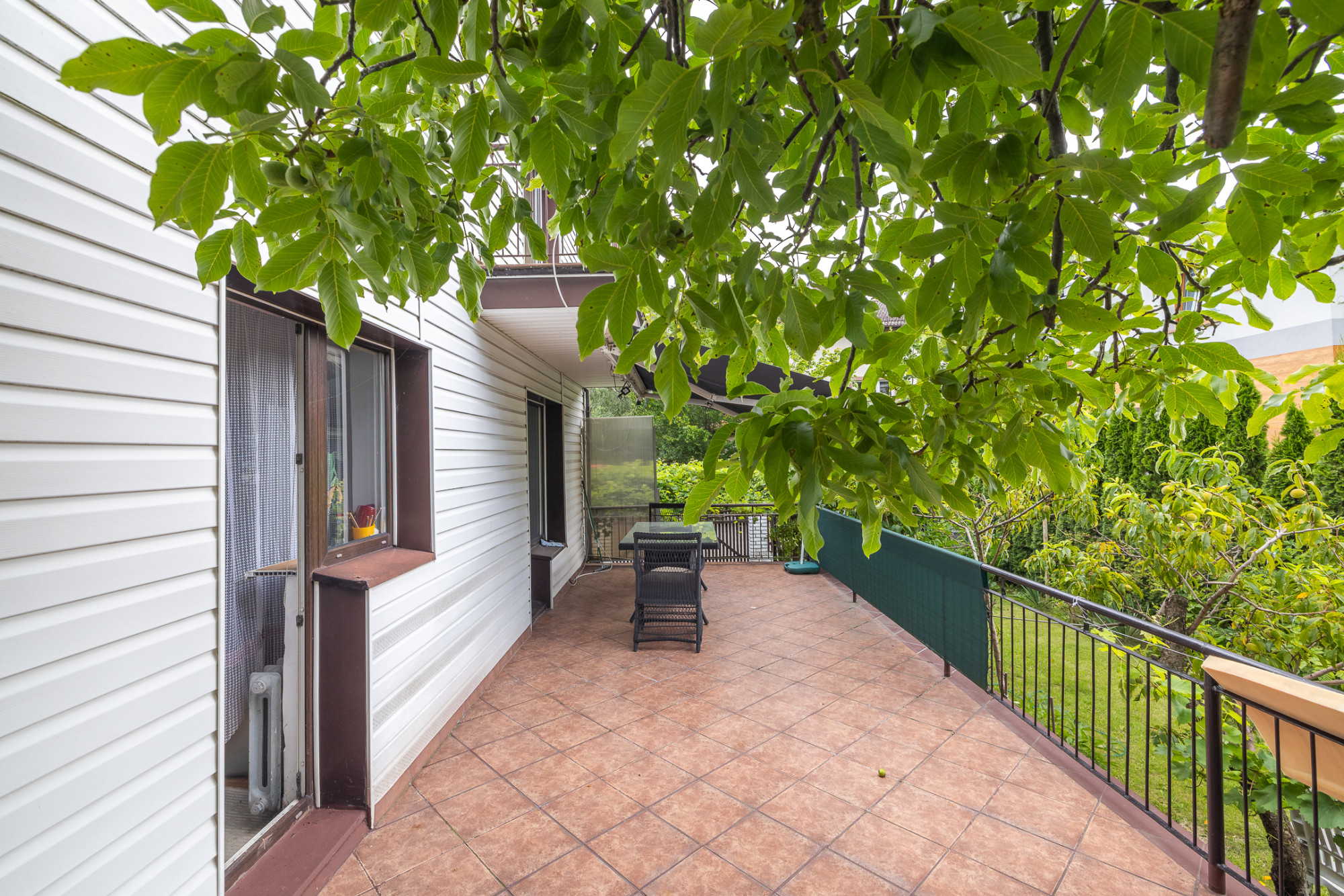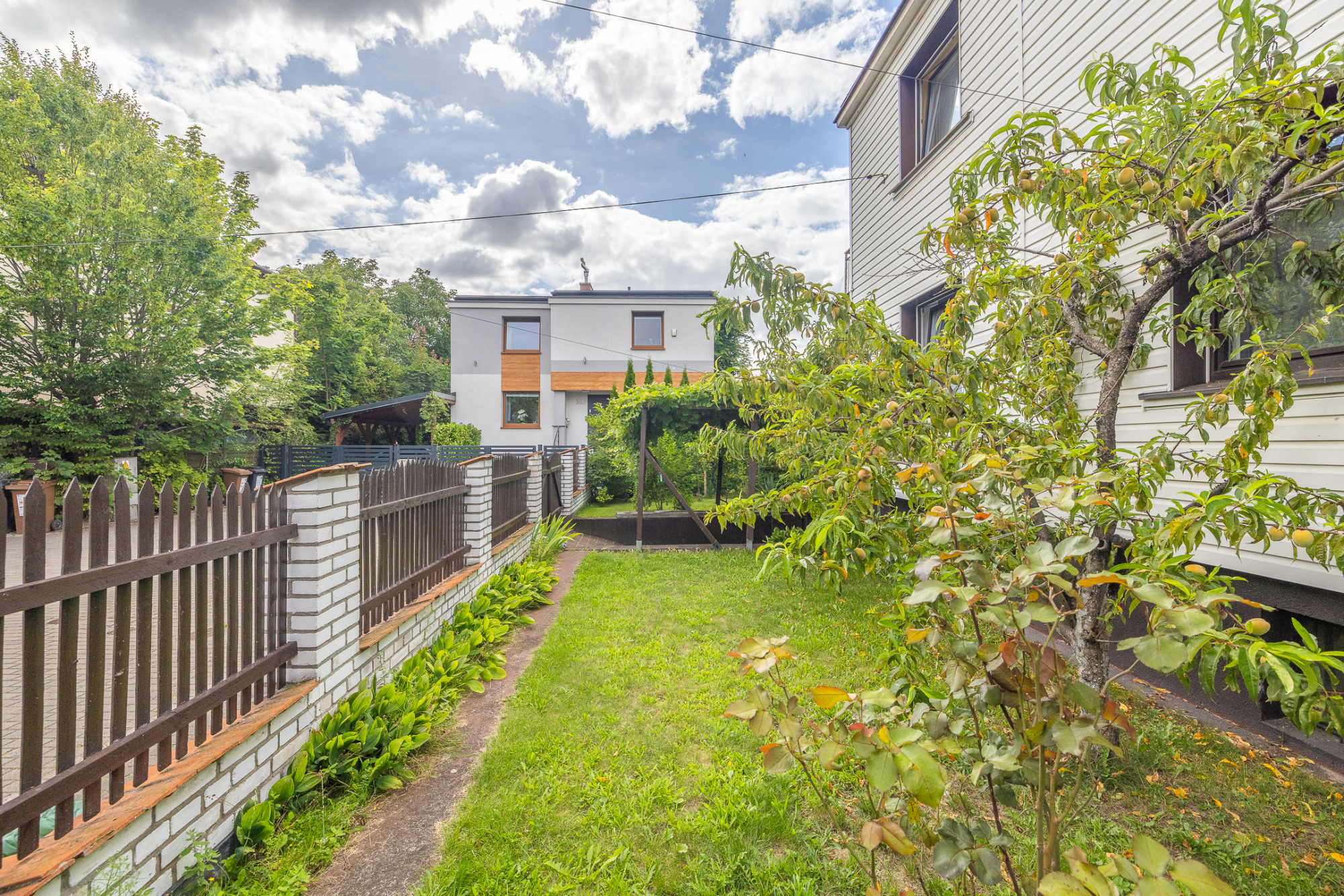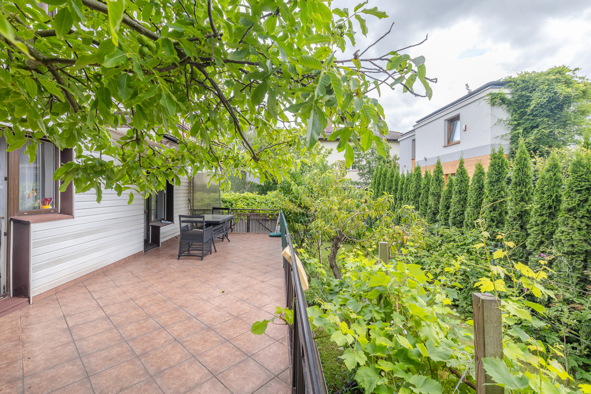 Niebywałym atutem nieruchomości jest jej ogród okalający cały dom. Poza trawnikiem znajdziemy tu nasadzenia w postaci drzew (brzoskwinia, czereśnia, orzech włoski), krzewów (malina, porzeczka, winorośl) i kwiatów. Na tyłach także zadaszone pomieszczenie gospodarcze.