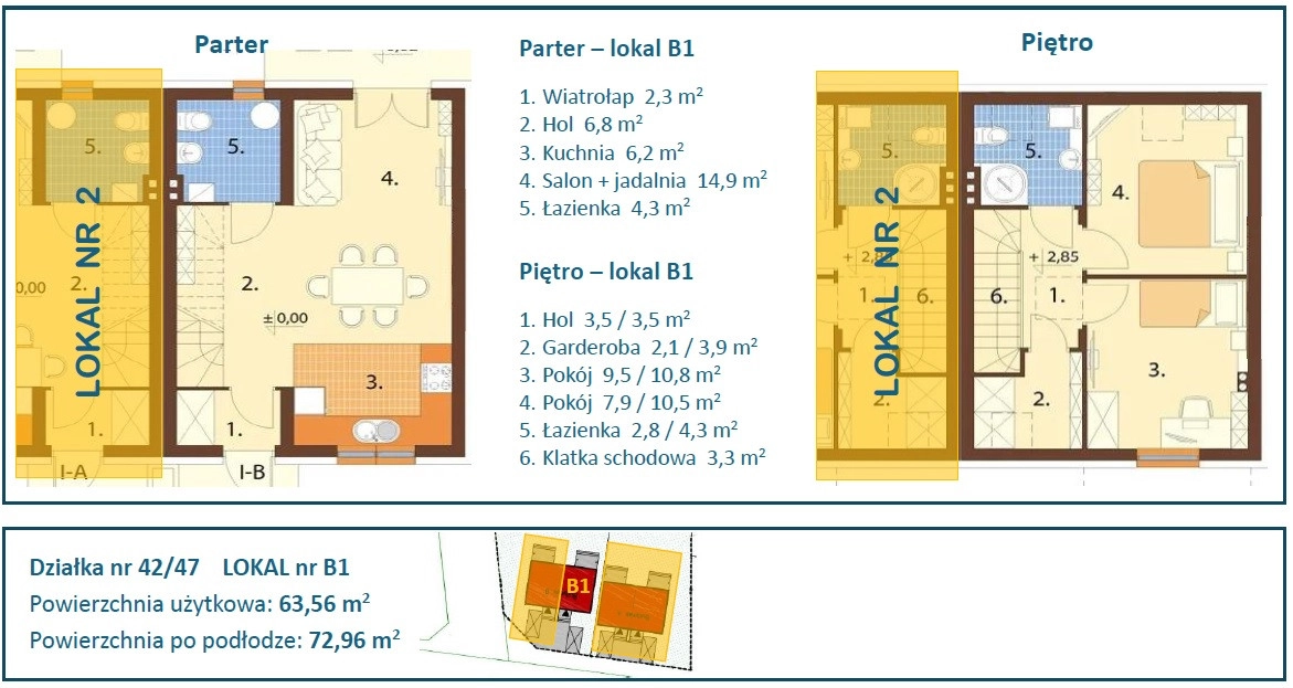 Pow. całkowita po podłodze 72,96m2. Działka 225m2, ogród 60m2