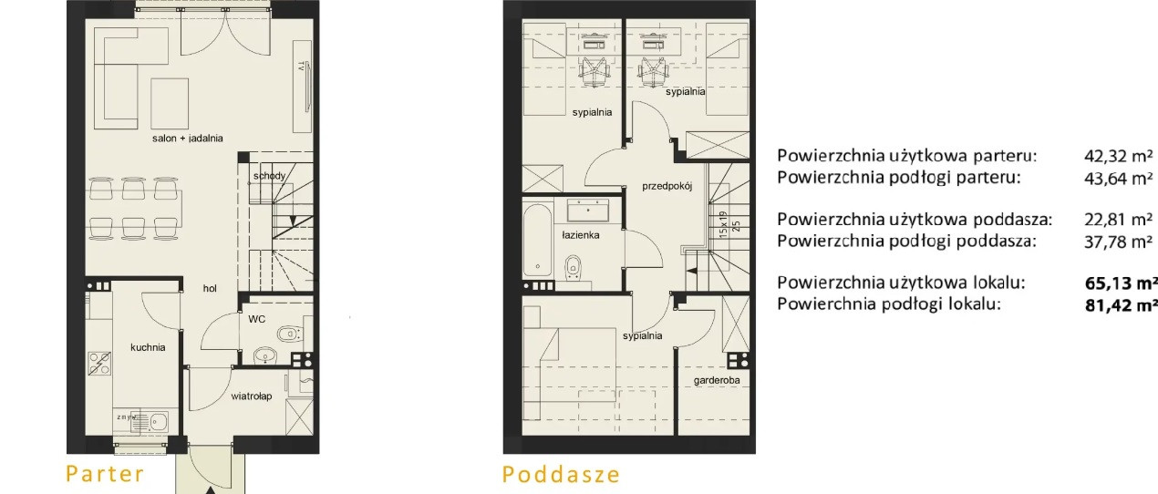 Mieszkanie 4 pokojowe bezczynszowe o powierzchni całkowitej 81,42 m2 i powierzchni użytkowej 65,13 m2 wraz z ogródkiem około 200m2
