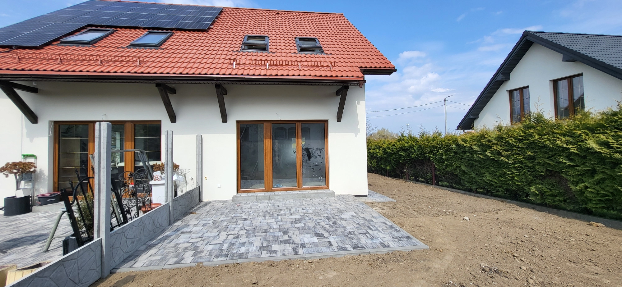– stolarka okienna z zewnątrz w kolorze złoty dąb, wewnątrz w kolorze białym,