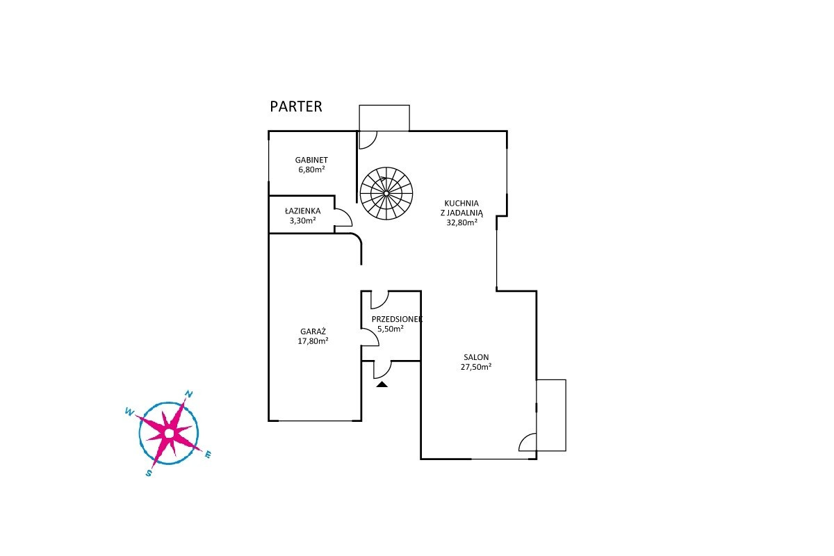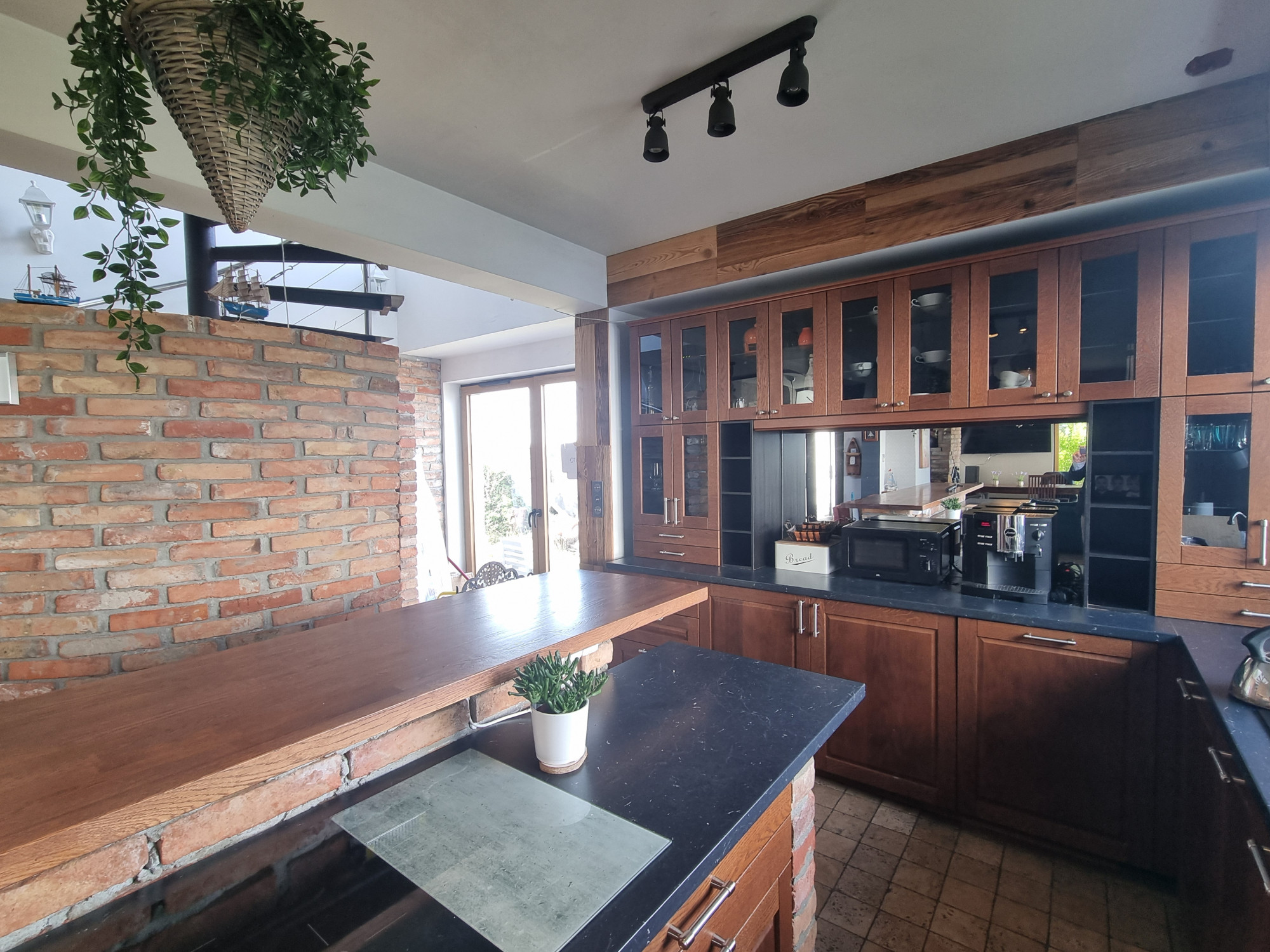 – salon wraz z kuchnią i jadalnią 60 m2, w salonie kominek i wyjście na taras