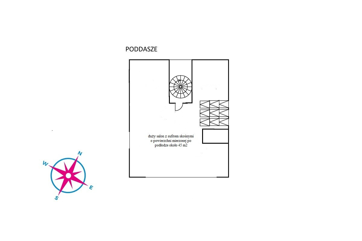 – duży salon ze skośnym sufitem o powierzchni mierzonej po podłodze około 45 m2