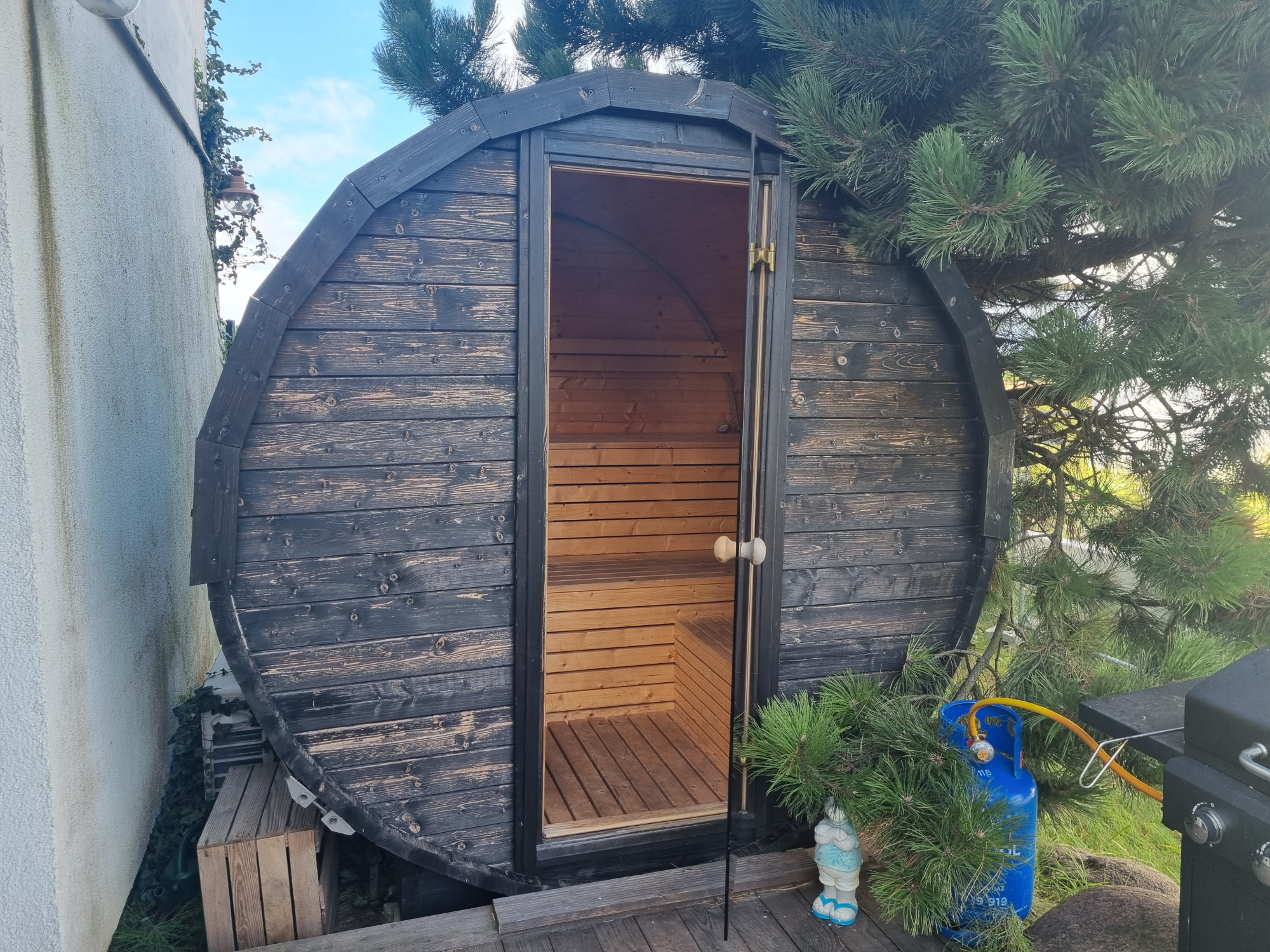 Dodatkowo, obok domu znajduje się sauna sucha, zapewniająca relaks i odprężenie dla maksymalnie 6 osób oraz bania ogrzewana drewnem.