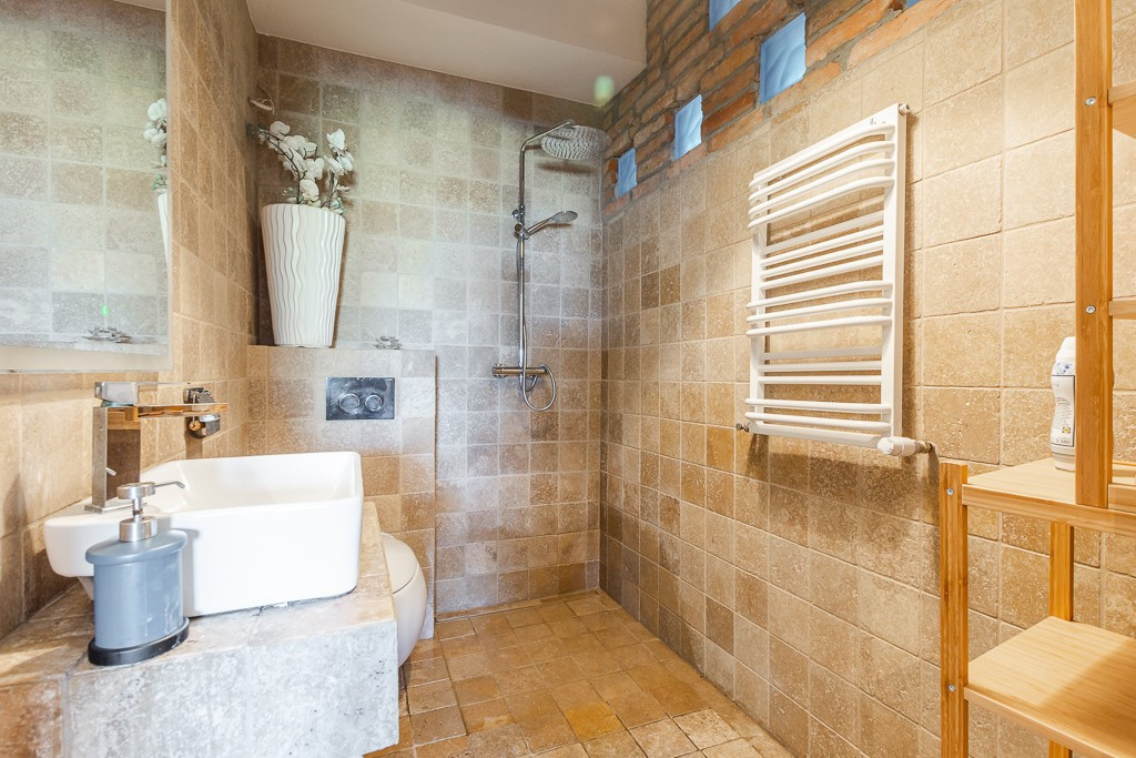 – kotłownia (zasobnik na ciepłą wodę 400l) pompa ciepła, instalacja solarna o mocy 9.9 kw.