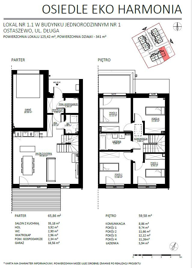 1.1 – działka 341 m² – dom 125,42 m² – SPRZEDANY
