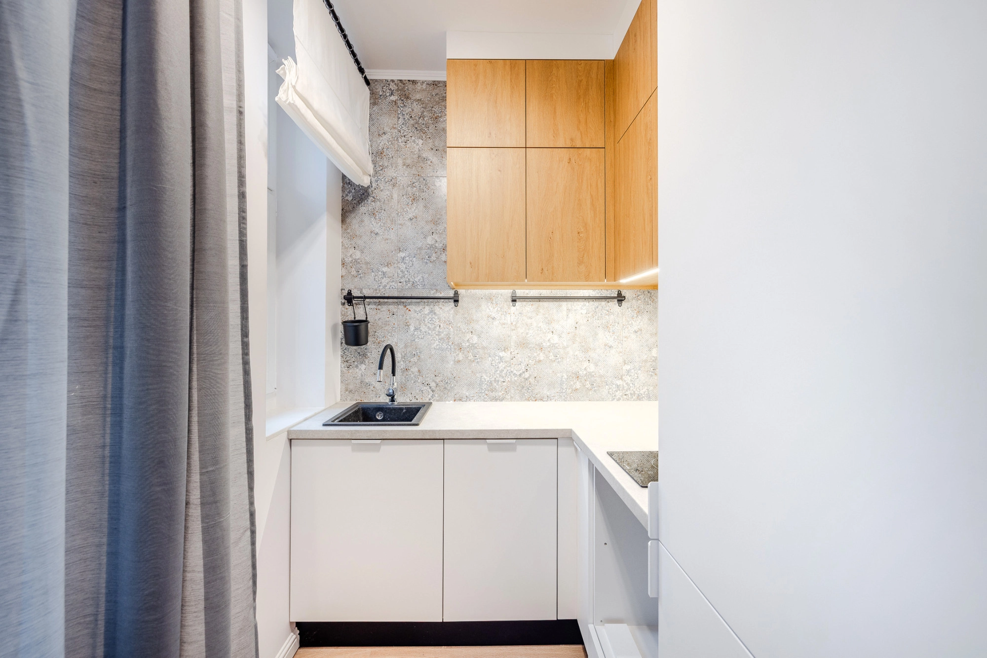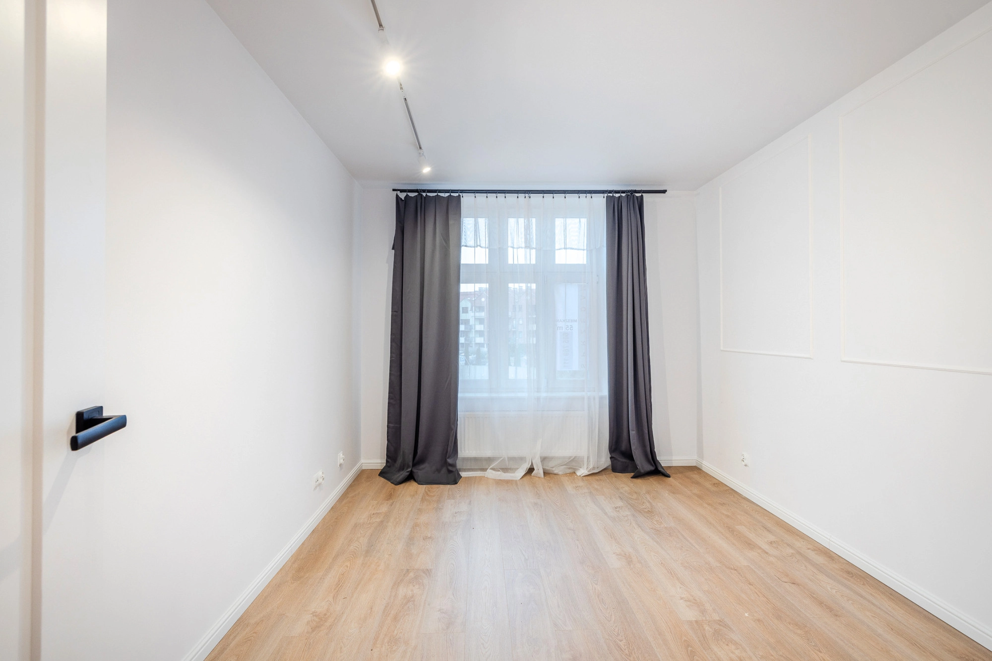 To pięknie urządzone przez projektanta mieszkanie. Duży salon z aneksem kuchennym nadają wyjątkowy charakter nieruchomości. Na ścianach znajdują się sztukaterie. W kuchni meble na wymiar. Przestronna sypialnia oferuje miejsce na duże łóżko oraz garderobę za przesuwanymi lustrzanymi drzwiami.