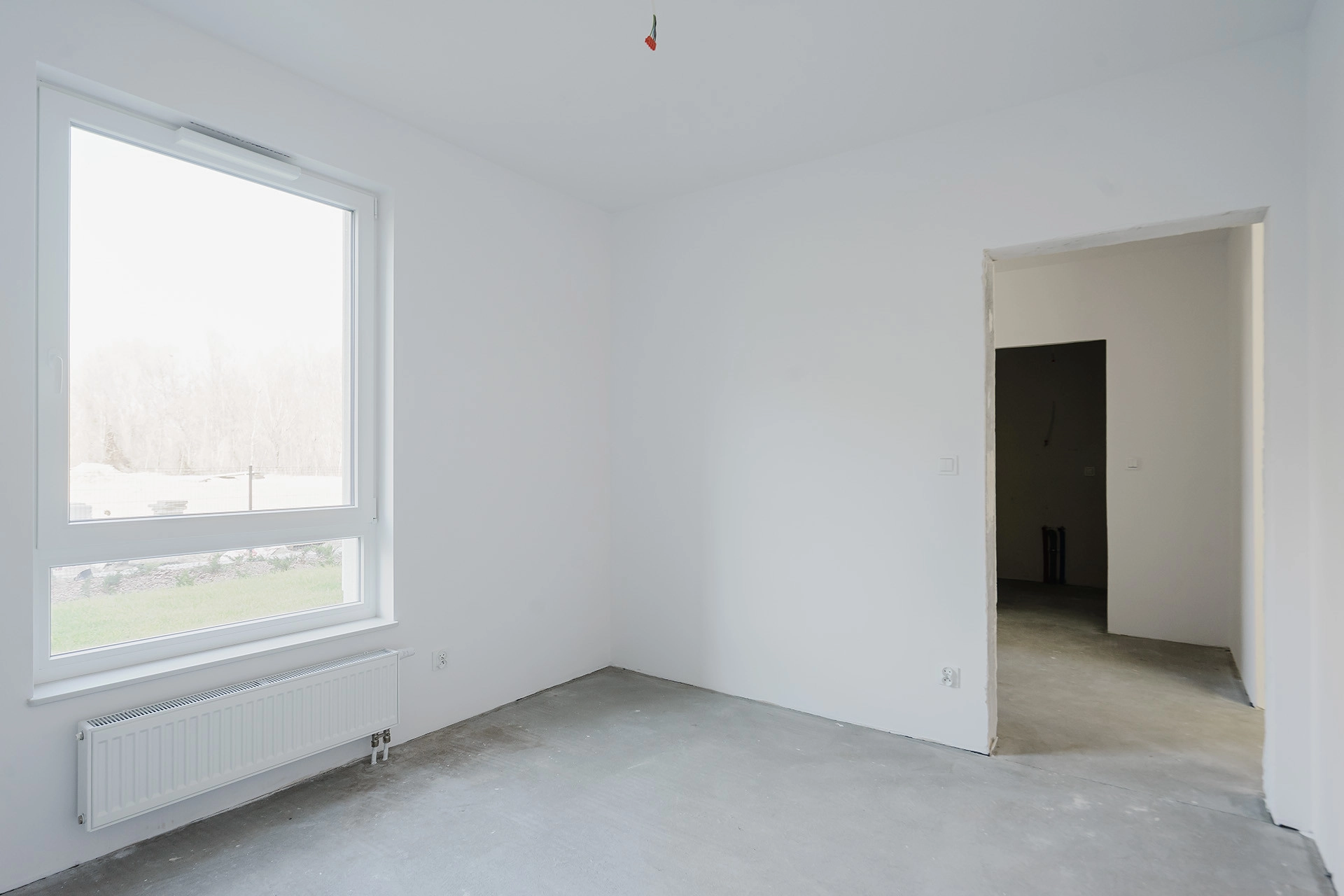 – okna i drzwi balkonowe – stolarka PCV biała, na parterze – okucia z dodatkowym ryglowaniem antywłamaniowym, parapety podokienne z konglomeratu.