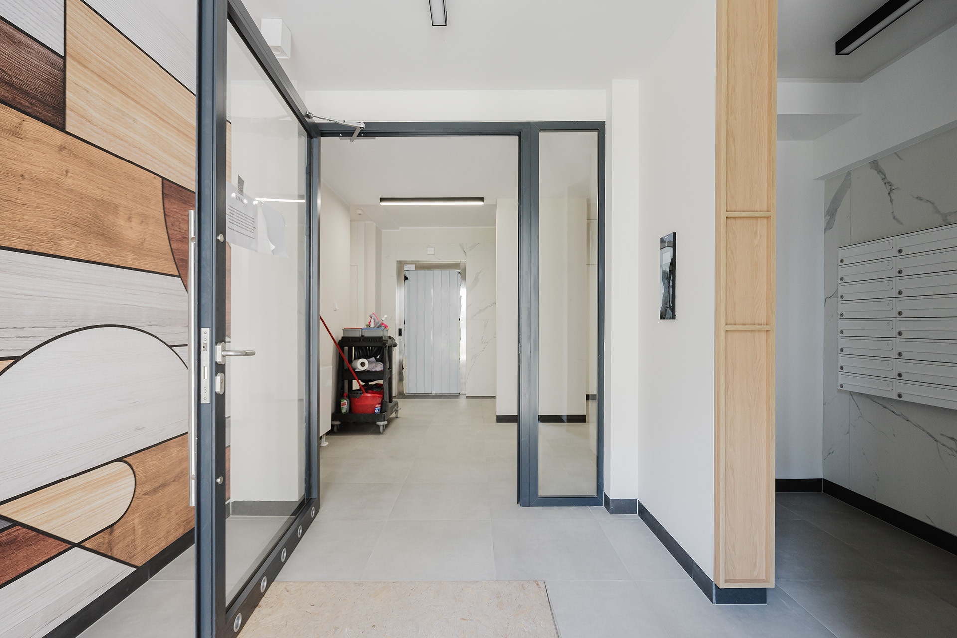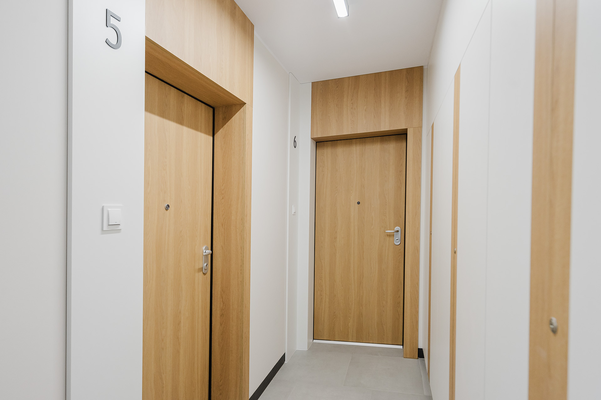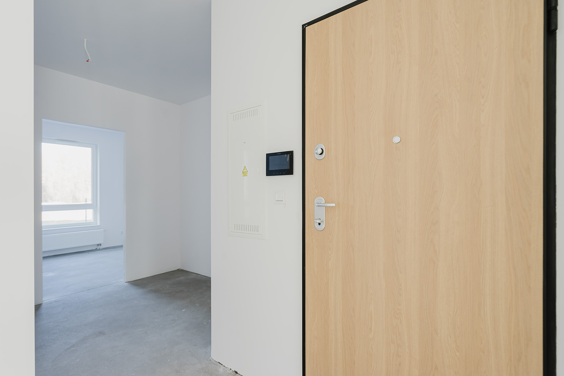 – drzwi wejściowe do mieszkania – pełne, antywłamaniowe, o odporności ogniowej, wyposażone w samozamykacze