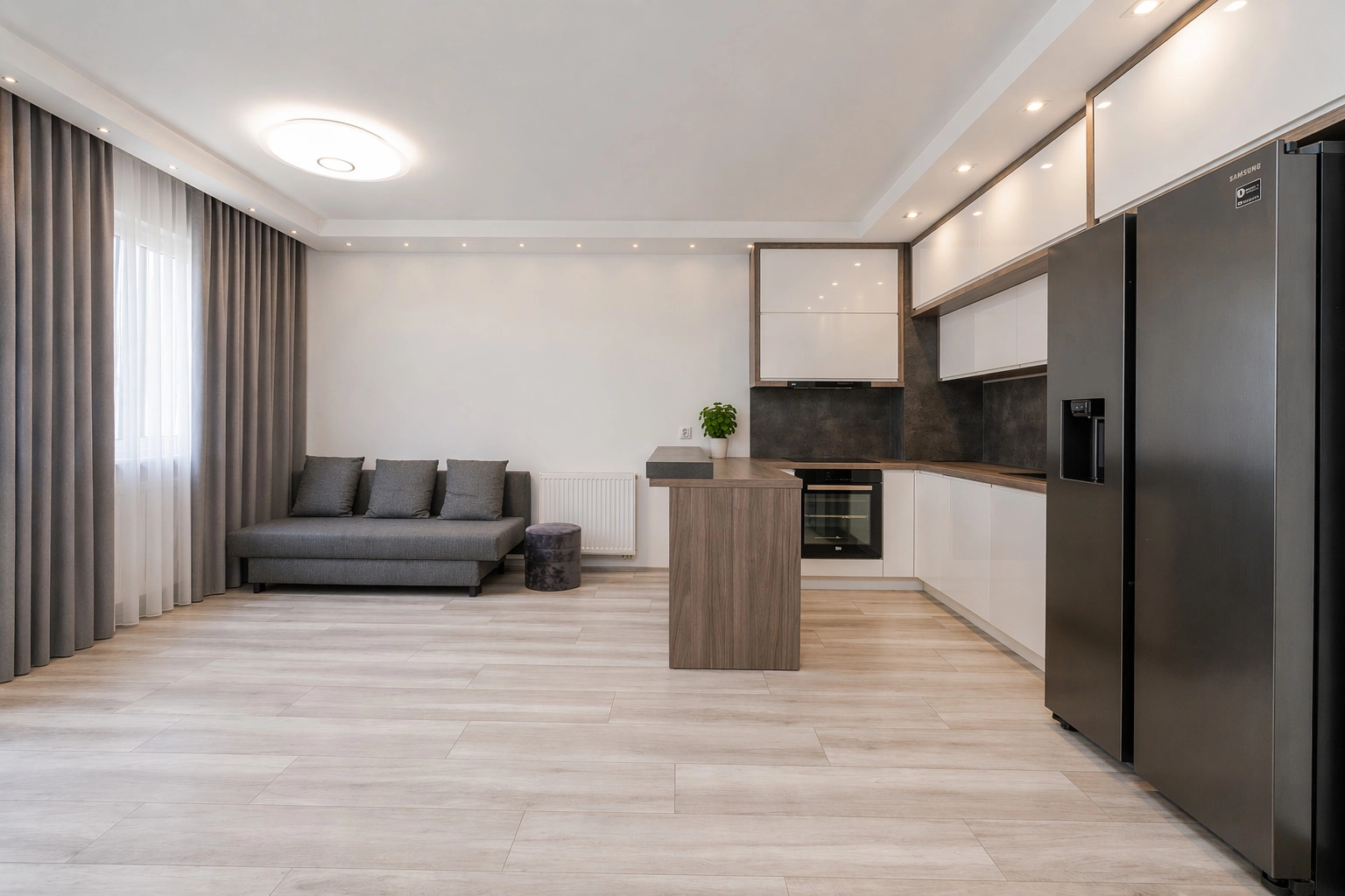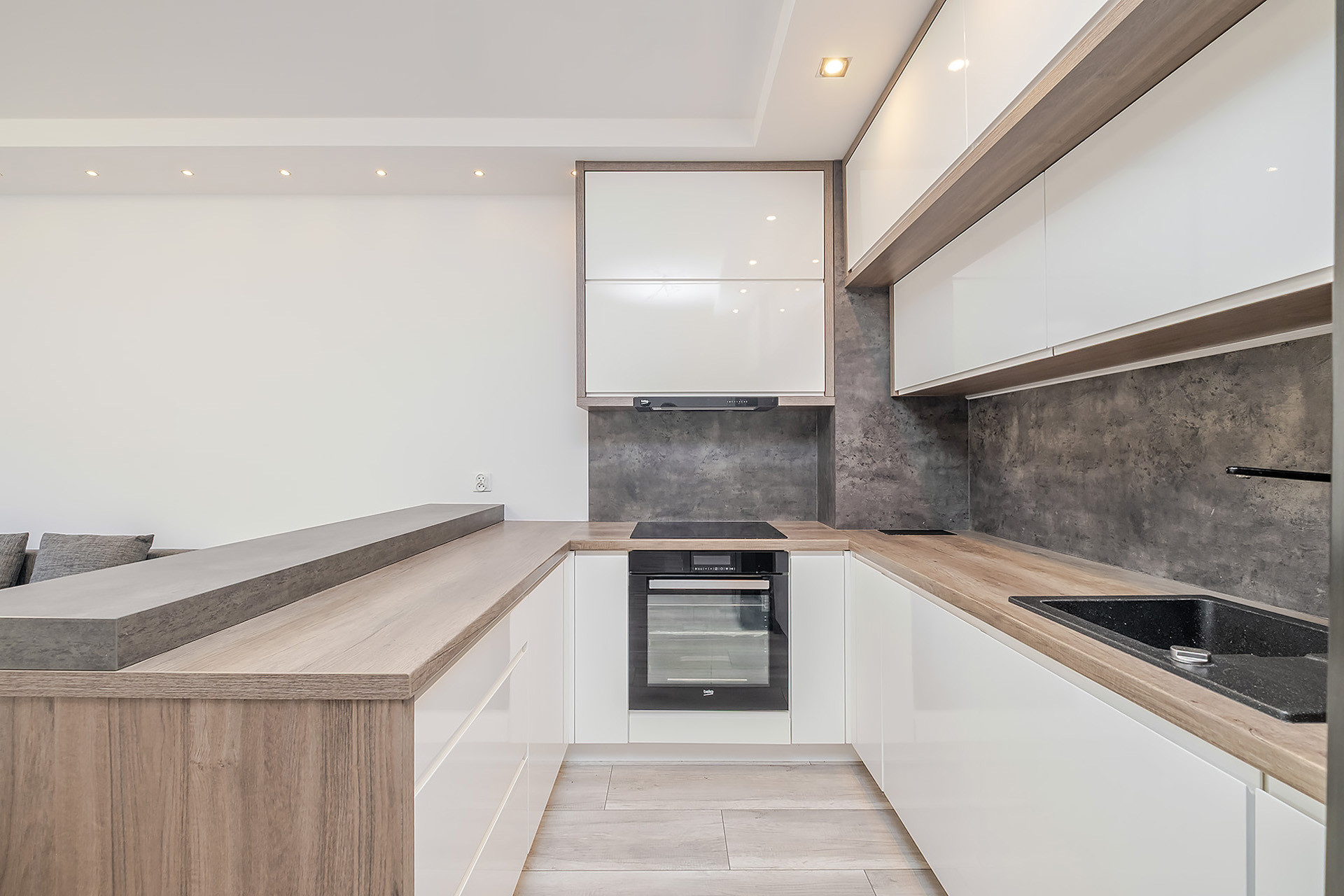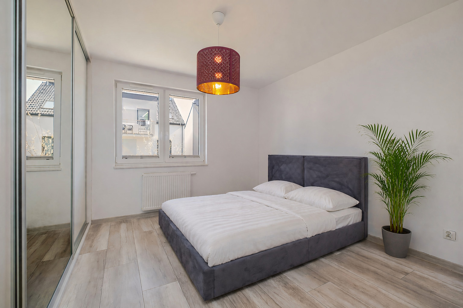 Mieszkanie zostało wykończone w wysokim standardzie, z wyjątkową dbałością o każdy detal. Zabudowa kuchenna, łazienkowa oraz wszystkie szafy zostały wykonane na zamówienie przez stolarza, co gwarantuje najwyższą jakość oraz pełne wykorzystanie przestrzeni.