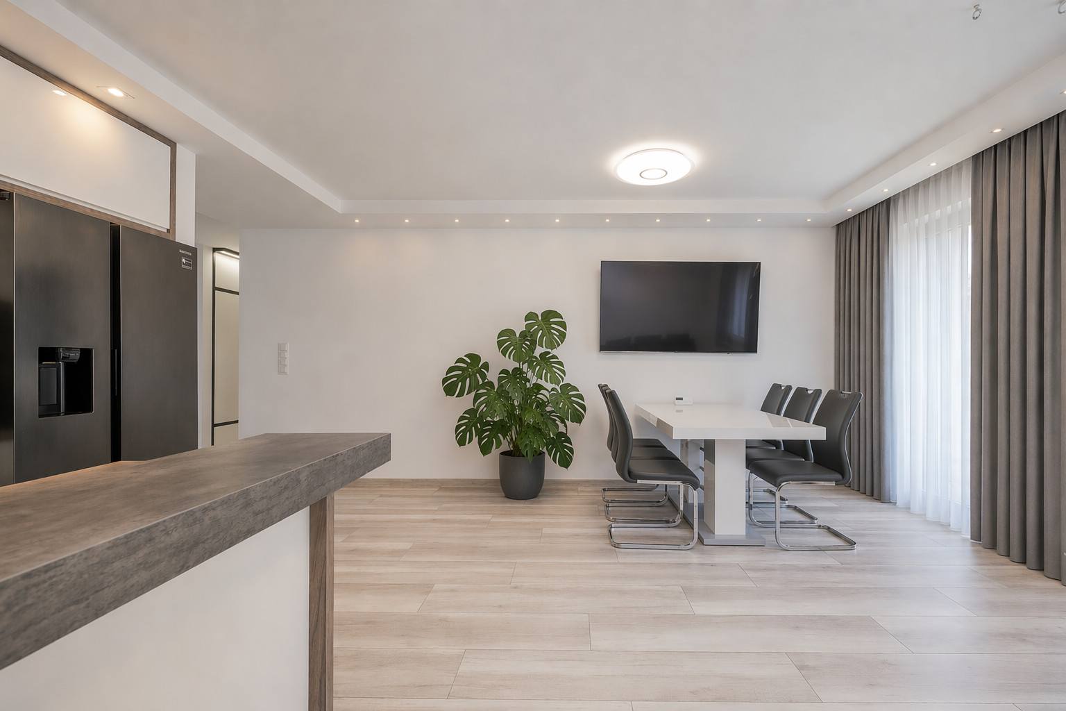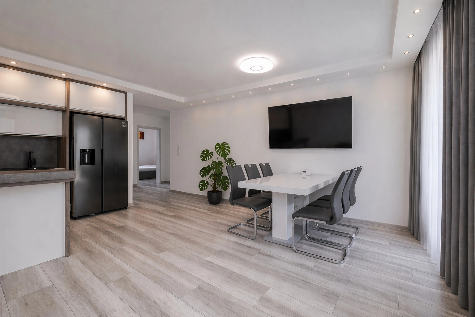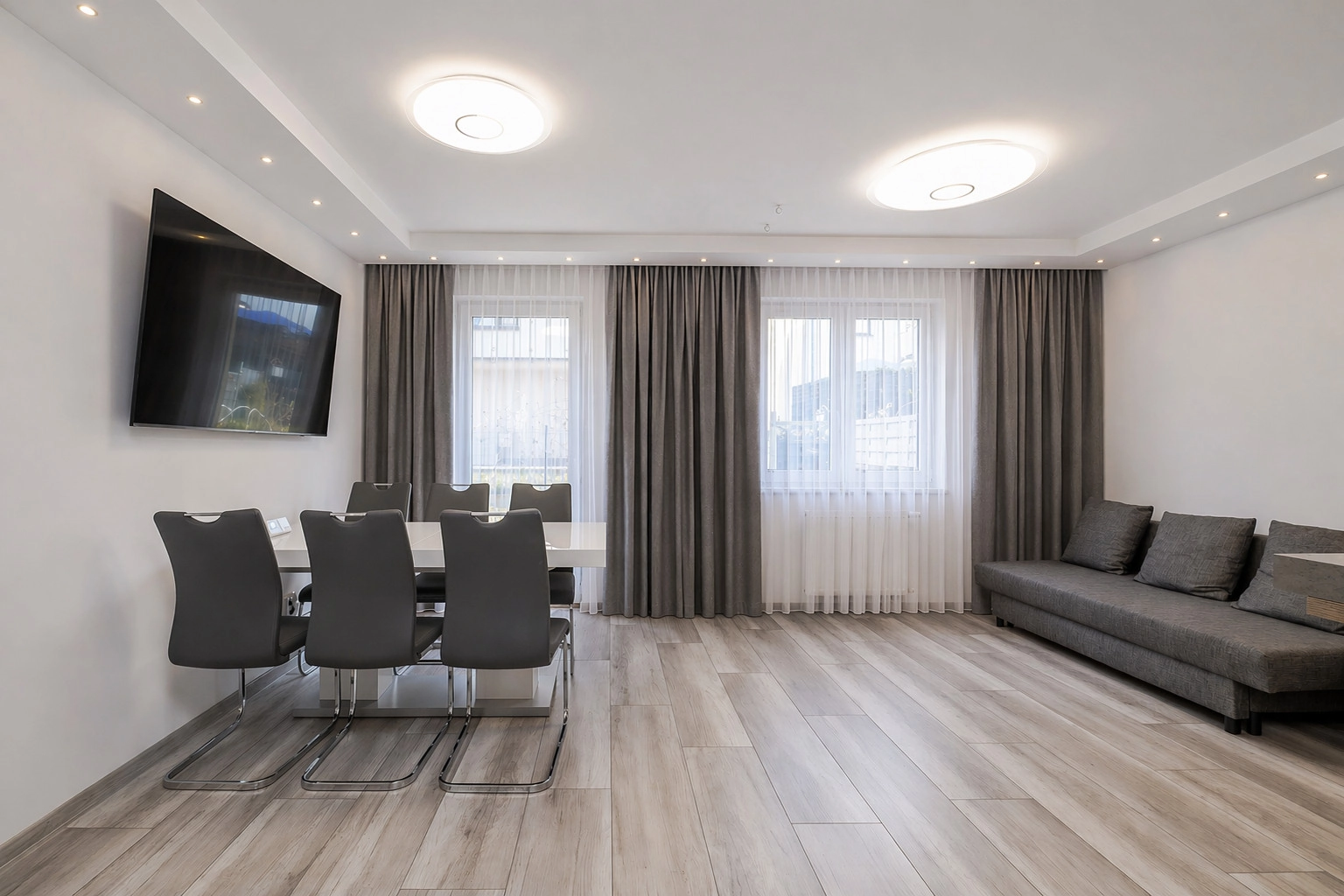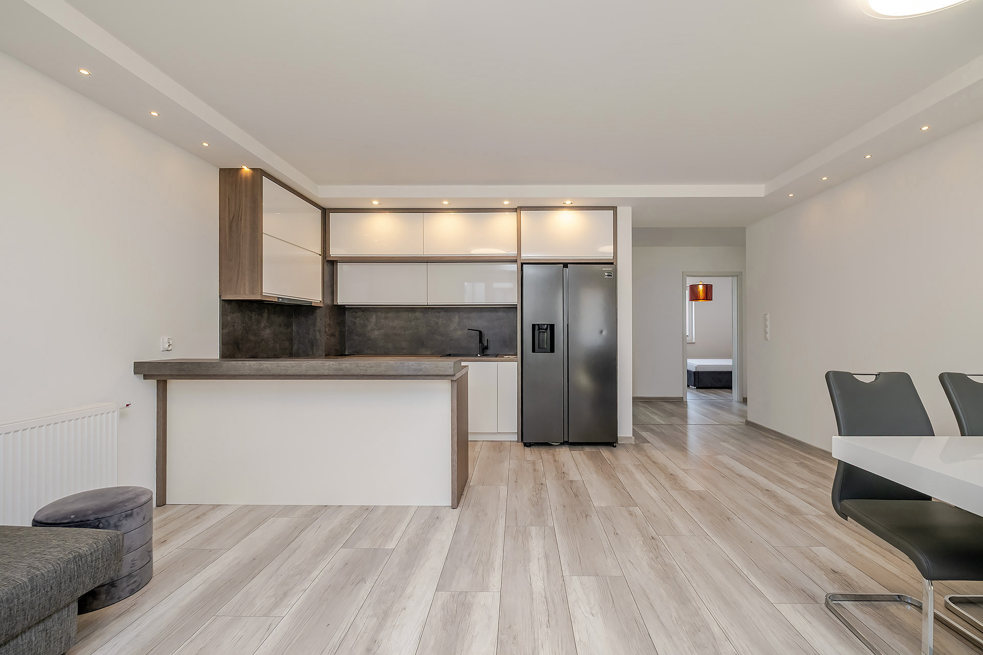 Mieszkanie zostało wykończone w wysokim standardzie, z wyjątkową dbałością o każdy detal. Zabudowa kuchenna, łazienkowa oraz wszystkie szafy zostały wykonane na zamówienie przez stolarza, co gwarantuje najwyższą jakość oraz pełne wykorzystanie przestrzeni.