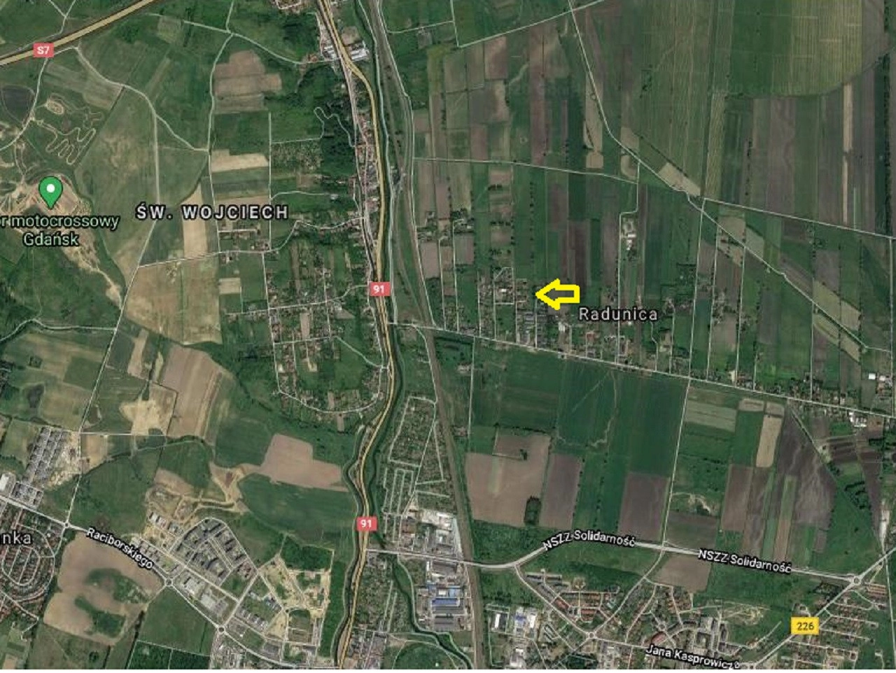 Nieruchomość położona jest w niedużej wsi bezpośrednio graniczącej z Pruszczem Gdańskim – Radunicy. Jest to idealna propozycja dla każdego, kto marzy o podmiejskim domu, bez rezygnacji z aktywnego życia zawodowego i atrakcji metropolii. Szkoła podstawowa, przedszkole, pływalnia i boiska – 3,5 km, a najbliższa szkoła podstawowa nr 42 (Św. Wojciech) oddalona jest 15 minut piechotą. W najbliższej okolicy sklep spożywczy (500m), a „za miedzą” zarówno w Pruszczu Gdańskim, jak i Gdańsku znajduje się pełna infrastruktura handlowo-usługowa (Biedronka 2,5km, Lidl 3,5km).