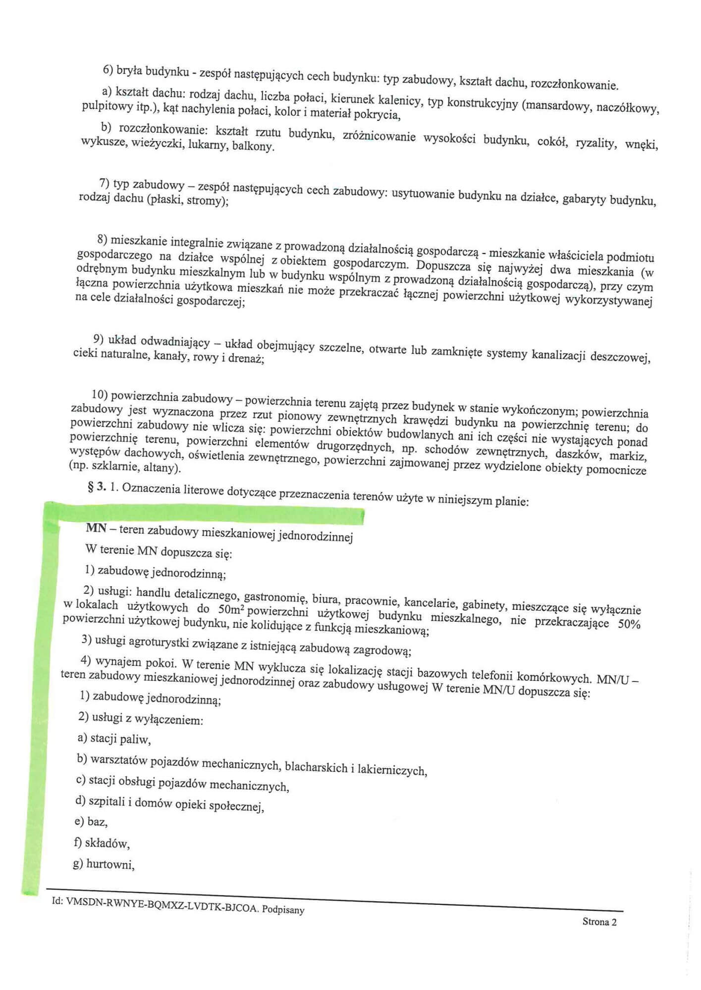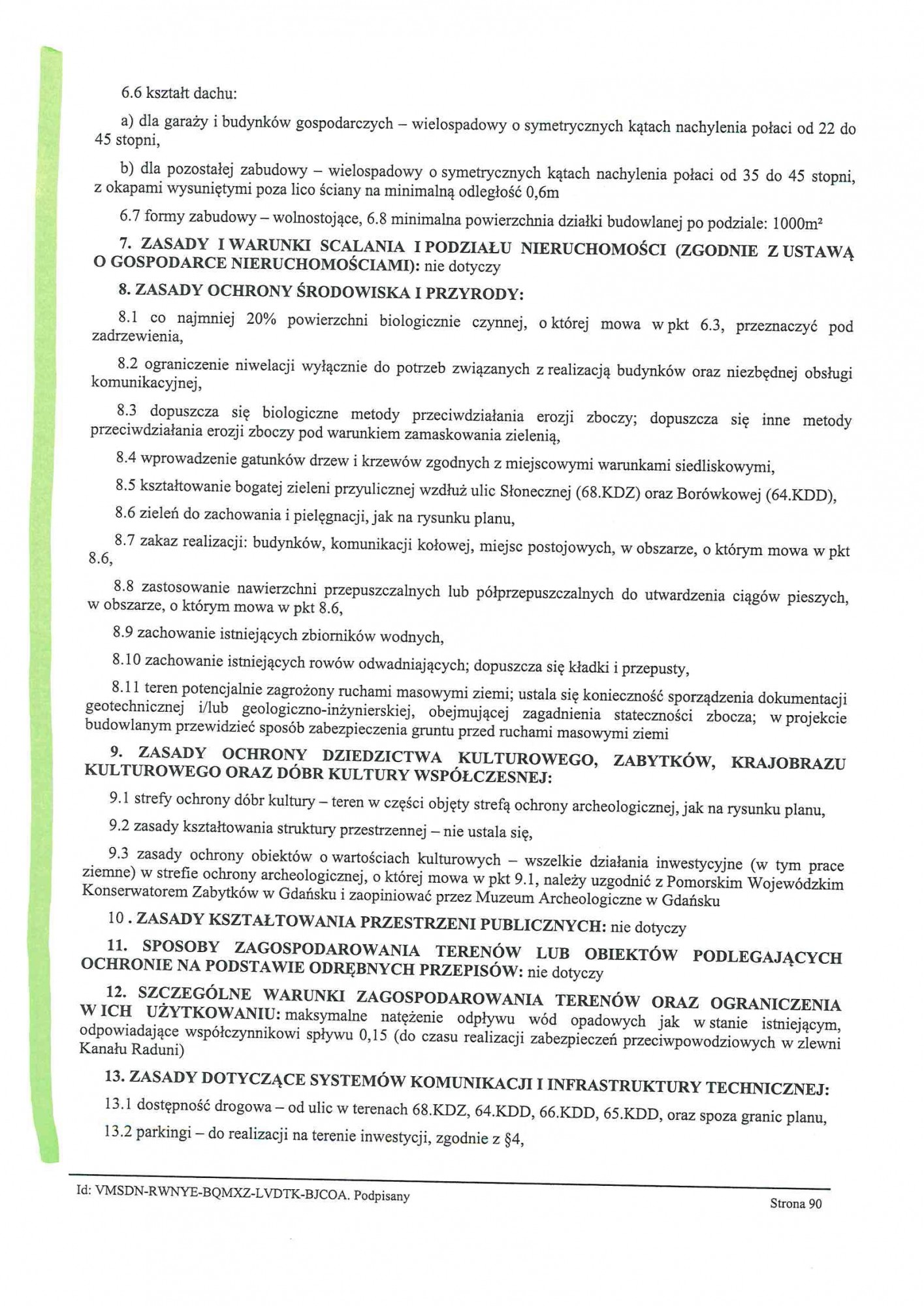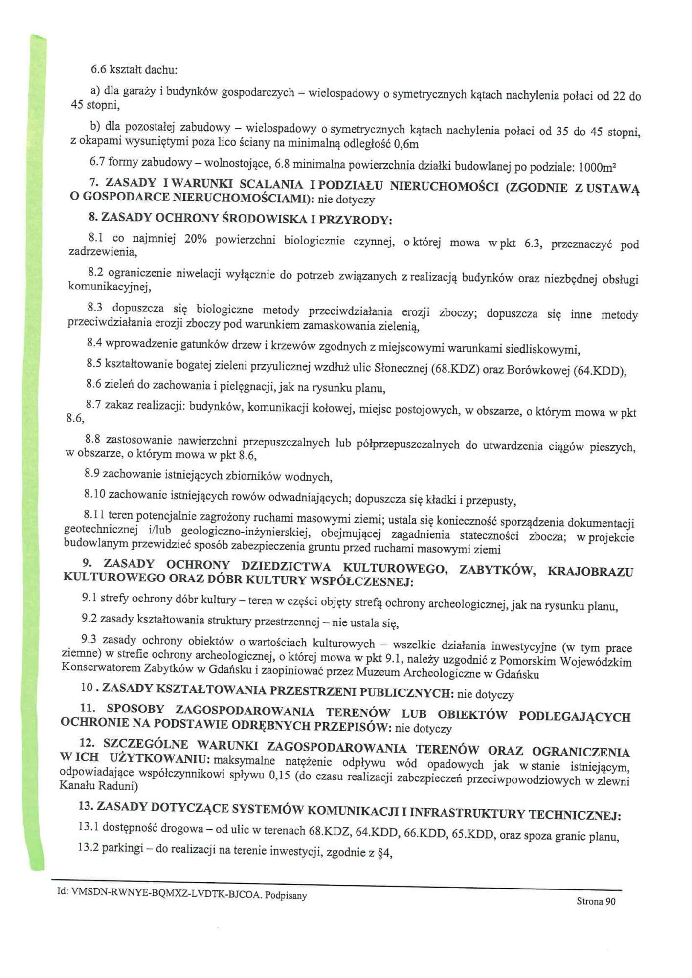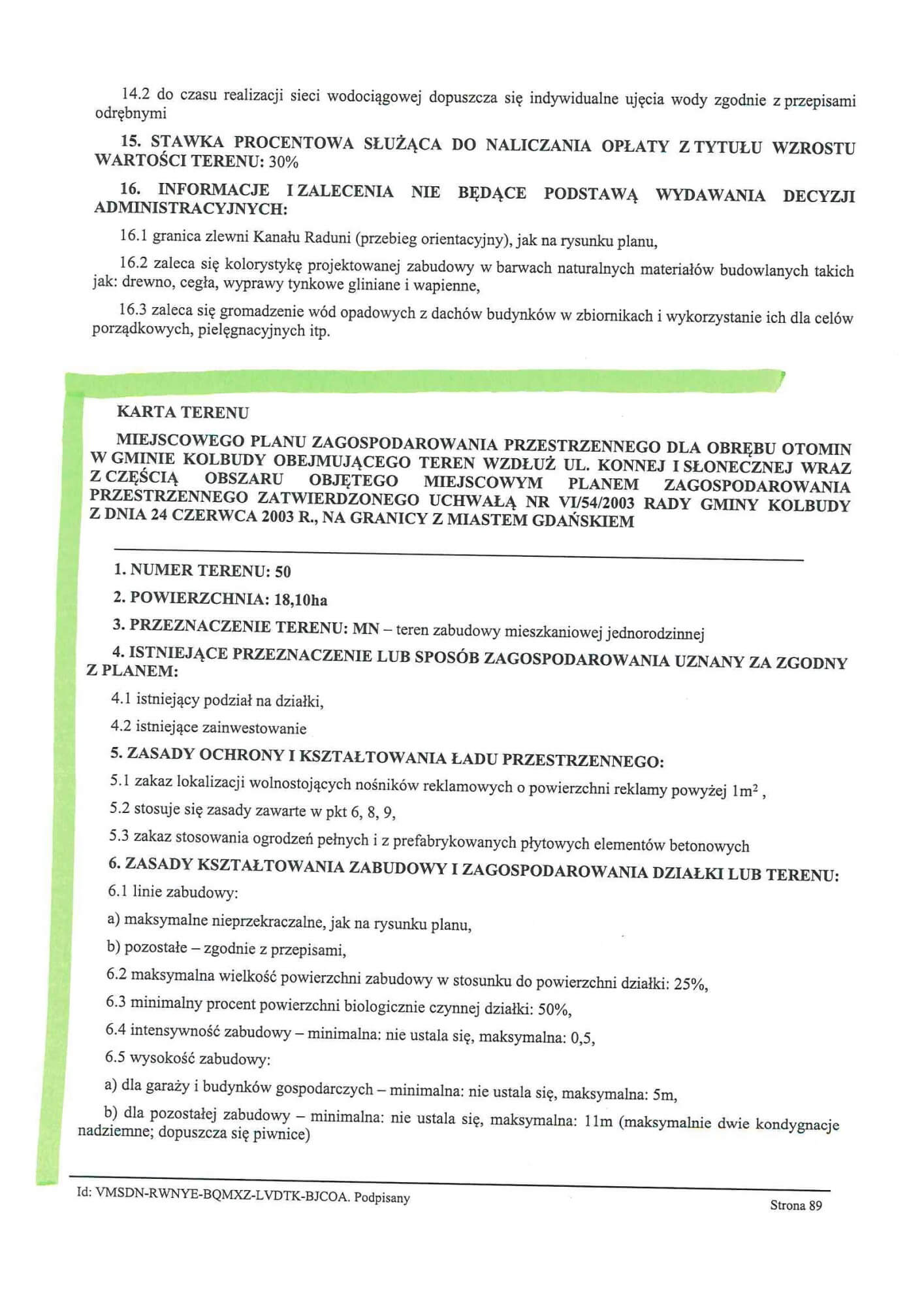 Nieruchomość objęta jest obowiązującym planem miejscowym zagospodarowania przestrzennego (Uchwała nr XXXVII/293/2010 Rady Gminy Kolbudy z dnia 27 kwietnia 2010 r.). KARTA TERENU OZNACZONEGO SYMBOLEM 50.MN.