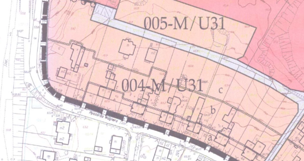 DZIAŁKA OBJETA MPZP- OZNACZONA JAKO- M/U31 teren zabudowy usługowo-mieszkaniowej zawierający tereny mieszkaniowe M22 i usługowe U33